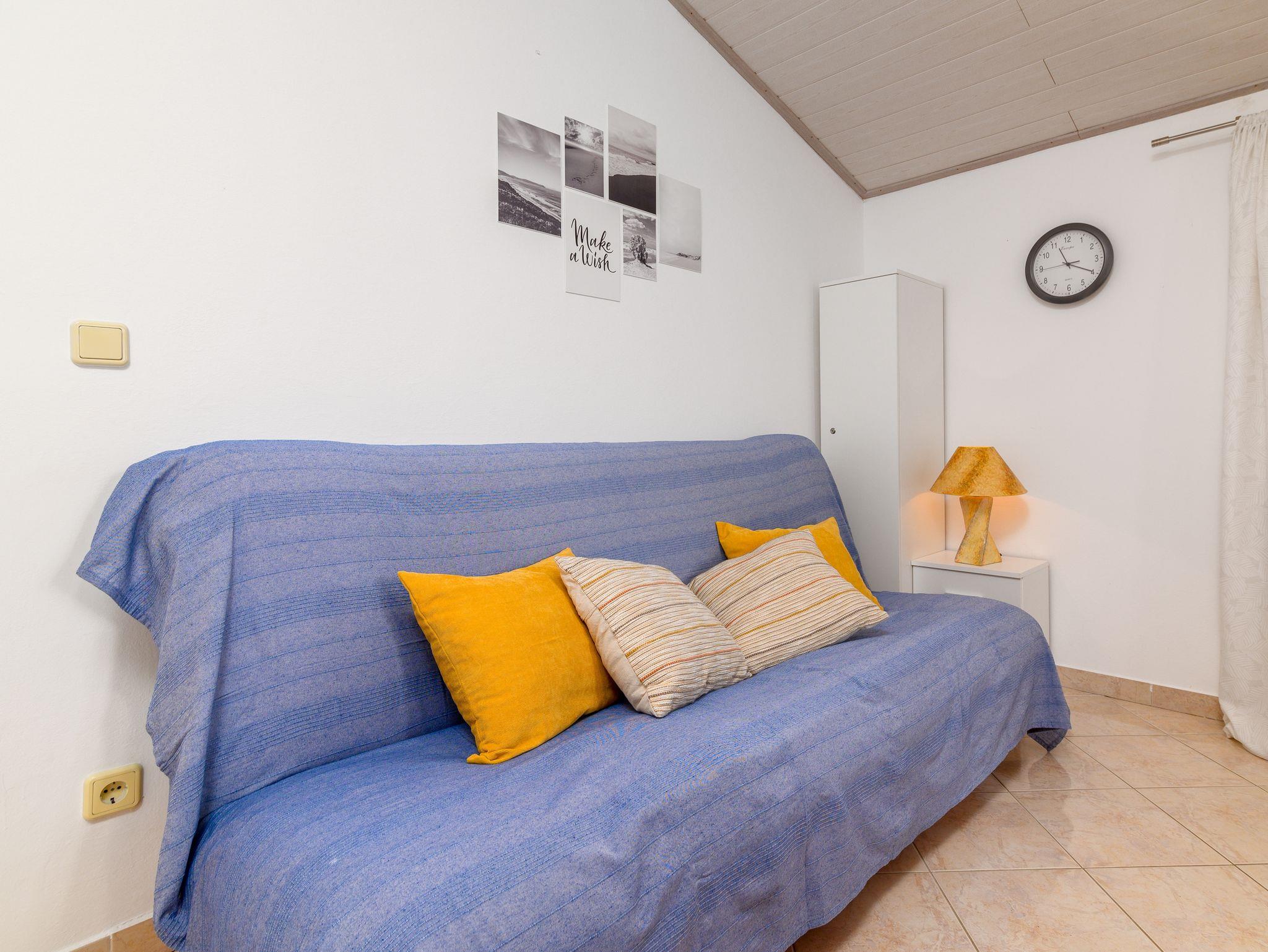 Ferienwohnung bietet Platz für 4 Gäste. Die Betten sind in Schlafzimmern, die es 1 gibt, und in Wohnzimmer, innerhalb einer Gesamtfläche von 32m2, angeordnet. Die Gäste haben eine eigene Terrasse zur Verfügung, auf der sie in warmen Sommernächten genießen können. Das Apartment bietet Meerblick. Es ist erlaubt, Speisen auf dem Gemeinschafts-Grill vorzubereiten. IM PREIS INBEGRIFFEN: Kurtaxe, Endreinigung, Klimatisierung, Zentralheizung, Parkplatz, Internet. VERBINDLICHE ZUSÄTZLICHE KOSTEN: Aufzahlung für Kurzaufenthalte (prozentualer Zuschlag pro Nächtigungsanzahl: 30% - 1, 20% - 2, 10% - 3). Die Verfügbarkeit zusätzlicher Dienstleistungen in Ihrem reservierten Termin und die Preise derselben (falls nicht aufgeführt) müssen im Voraus überprüft werden. Zusätzliche Dienstleistungen die in der Zahlungsaufforderung nicht aufgeführt sind werden direkt beim Vermieter bezahlt, angenommen der Gast nutzt auch diese.
