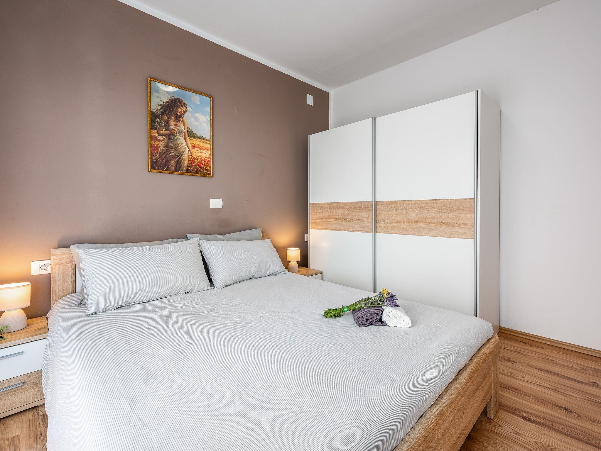 Ferienwohnung bietet Platz für 3 Gäste. Die Betten sind in Schlafzimmern, die es 1 gibt, und in Wohnzimmer, innerhalb einer Gesamtfläche von 32m2, angeordnet. Die Gäste haben einen eigenen Balkon zur Verfügung, auf der sie in warmen Sommernächten genießen können. Das Apartment bietet Meerblick. Es ist erlaubt, Speisen auf dem Gemeinschafts-Grill vorzubereiten. Während ihres Aufenthalts können Gäste das gemeinsam zur Nutzung stehende Schwimmbad benutzen. In der Unterkunftseinheit besteht die Möglichkeit des Mitbringens von Haustieren gegen Aufpreis. IM PREIS INBEGRIFFEN: Kurtaxe, Endreinigung, Klimatisierung, Pool, Parkplatz, Internet, Wäschewaschen, Kinderbett, Bügeleisen, Bügelbrett, Föhn. UNVERBINDLICHE ZUSÄTZLICHE KOSTEN: Haustiere (10,00 € pro Nacht), Fahrrad (20,00 € täglich (pro Stück)). Die Verfügbarkeit zusätzlicher Dienstleistungen in Ihrem reservierten Termin und die Preise derselben (falls nicht aufgeführt) müssen im Voraus überprüft werden. Zusätzliche Dienstleistungen die in der Zahlungsaufforderung nicht aufgeführt sind werden direkt beim Vermieter bezahlt, angenommen der Gast nutzt auch diese.