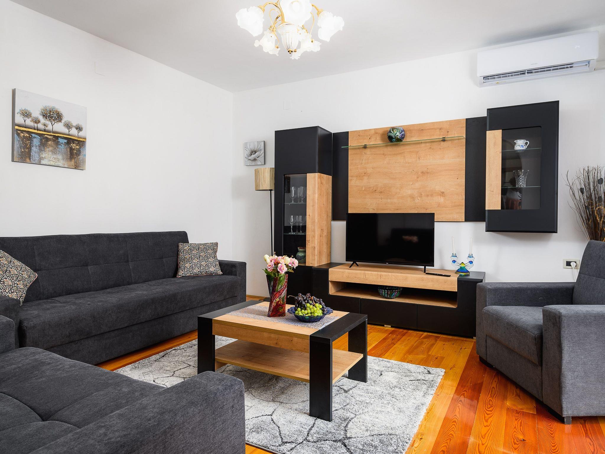 Ferienwohnung bietet Platz für 7 Gäste. Die Betten sind in Schlafzimmern, die es 3 gibt, und in Wohnzimmer, innerhalb einer Gesamtfläche von 135m2, angeordnet. Die Gäste haben einen eigenen Balkon zur Verfügung, auf der sie in warmen Sommernächten genießen können. Es ist erlaubt, Speisen auf dem Gemeinschafts-Grill vorzubereiten. Während ihres Aufenthalts können Gäste das gemeinsam zur Nutzung stehende Schwimmbad benutzen. In der Unterkunftseinheit besteht die Möglichkeit des Mitbringens von Haustieren gegen Aufpreis. Räume der gebuchten Unterkunftseinheit werden nicht in eine Ganze verbunden. IM PREIS INBEGRIFFEN: Kurtaxe, Endreinigung, Klimatisierung, Pool, Parkplatz, Internet, Wäschewaschen, Kinderbett, Bügeleisen, Bügelbrett, Föhn. UNVERBINDLICHE ZUSÄTZLICHE KOSTEN: Haustiere (10,00 € pro Nacht), Fahrrad (20,00 € täglich (pro Stück)). Die Verfügbarkeit zusätzlicher Dienstleistungen in Ihrem reservierten Termin und die Preise derselben (falls nicht aufgeführt) müssen im Voraus überprüft werden. Zusätzliche Dienstleistungen die in der Zahlungsaufforderung nicht aufgeführt sind werden direkt beim Vermieter bezahlt, angenommen der Gast nutzt auch diese.