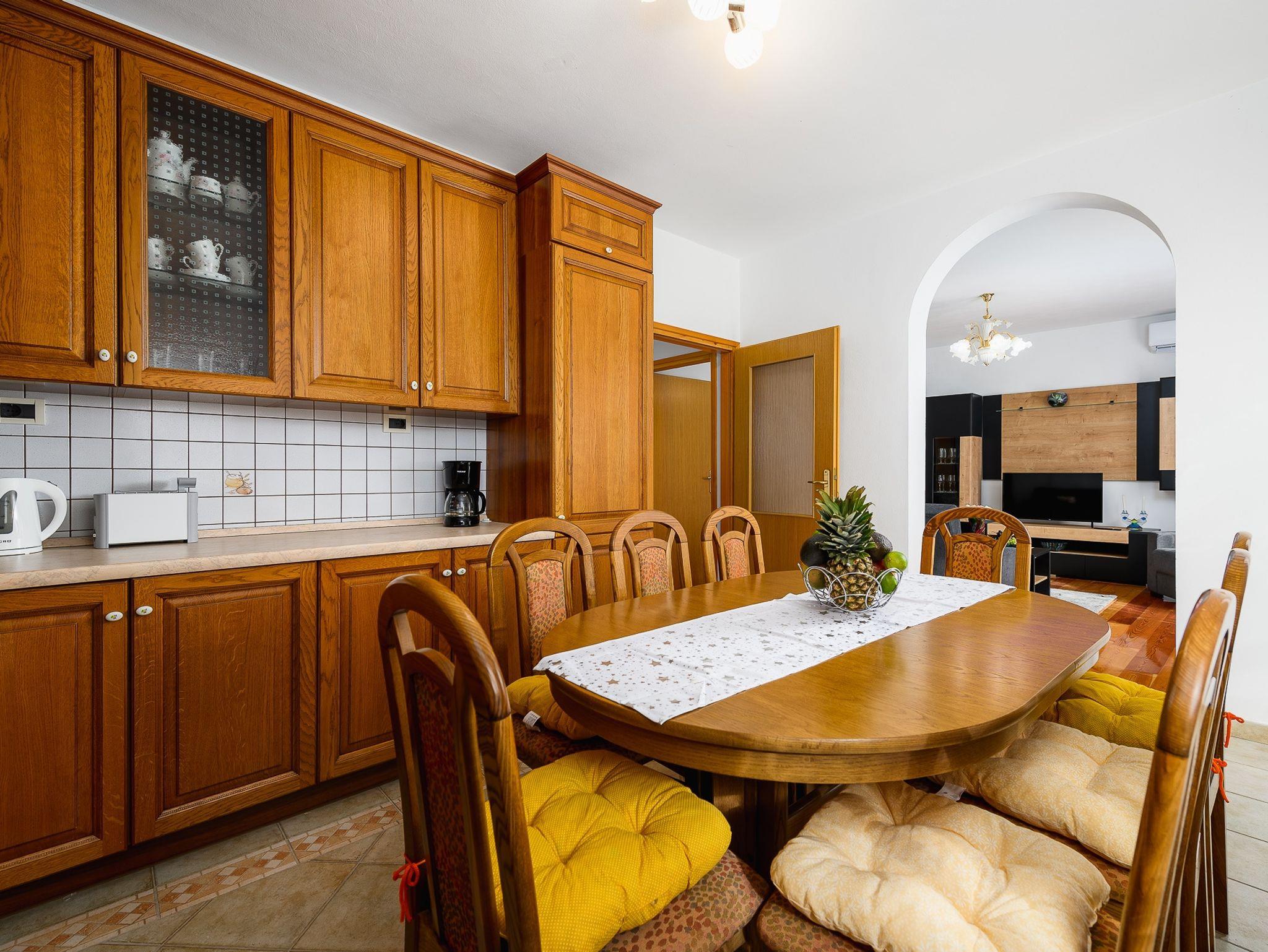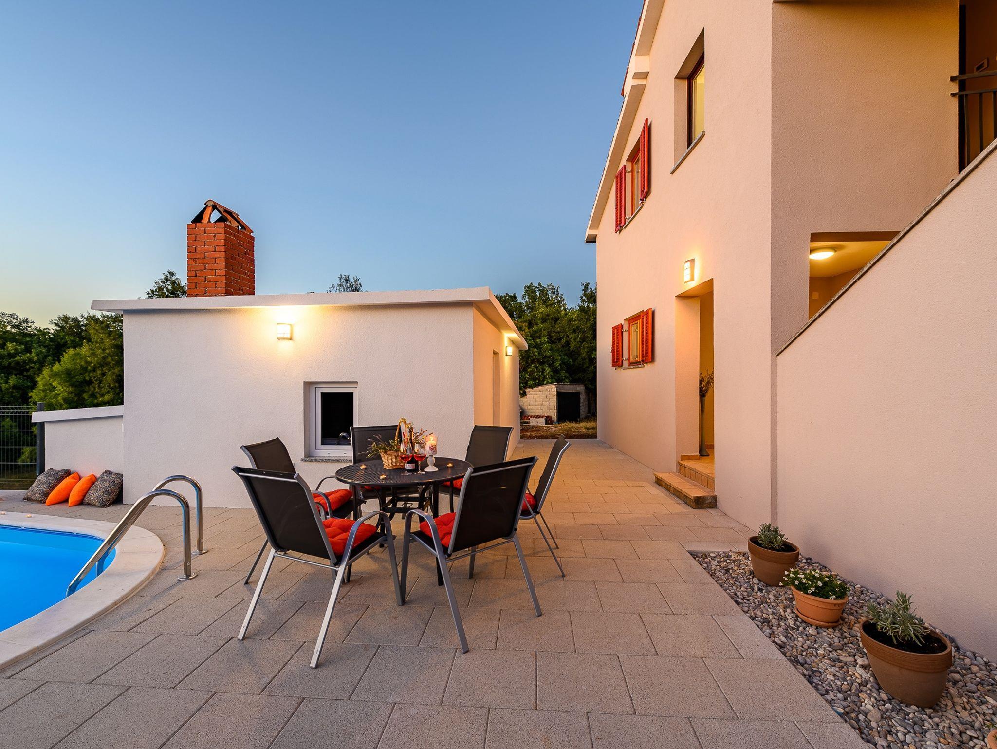 Umgebung des Objekts (Eingerichtet), Hof (700m2, Sitzbereich), Parkplatz (Anzahl der Parkplätze: 2, Entfernung vom Objekt: im Hof), Pool: gemeinsam, Dimensionen: 7m x 3m x 1.6m, Wassertyp: Süßwasser, Grill: gemeinsam, WiFi Internet, Wäschewaschen, Fahrrad (Anzahl: 13), Föhn, Bügeleisen, Bügelbrett, Kinderbett