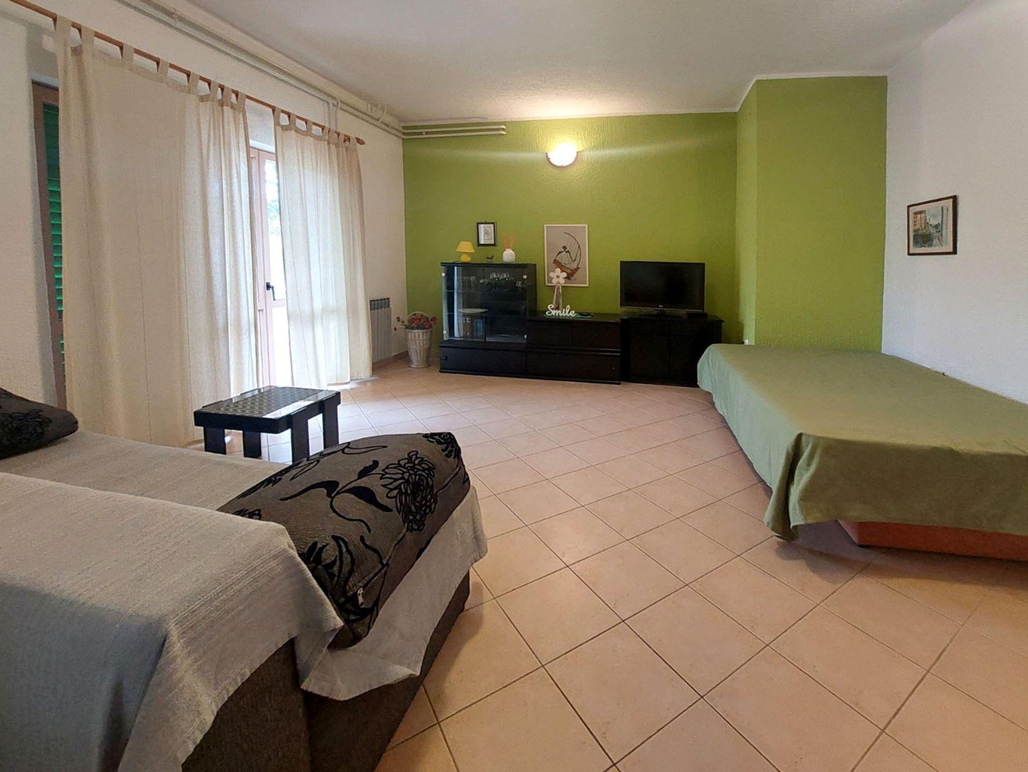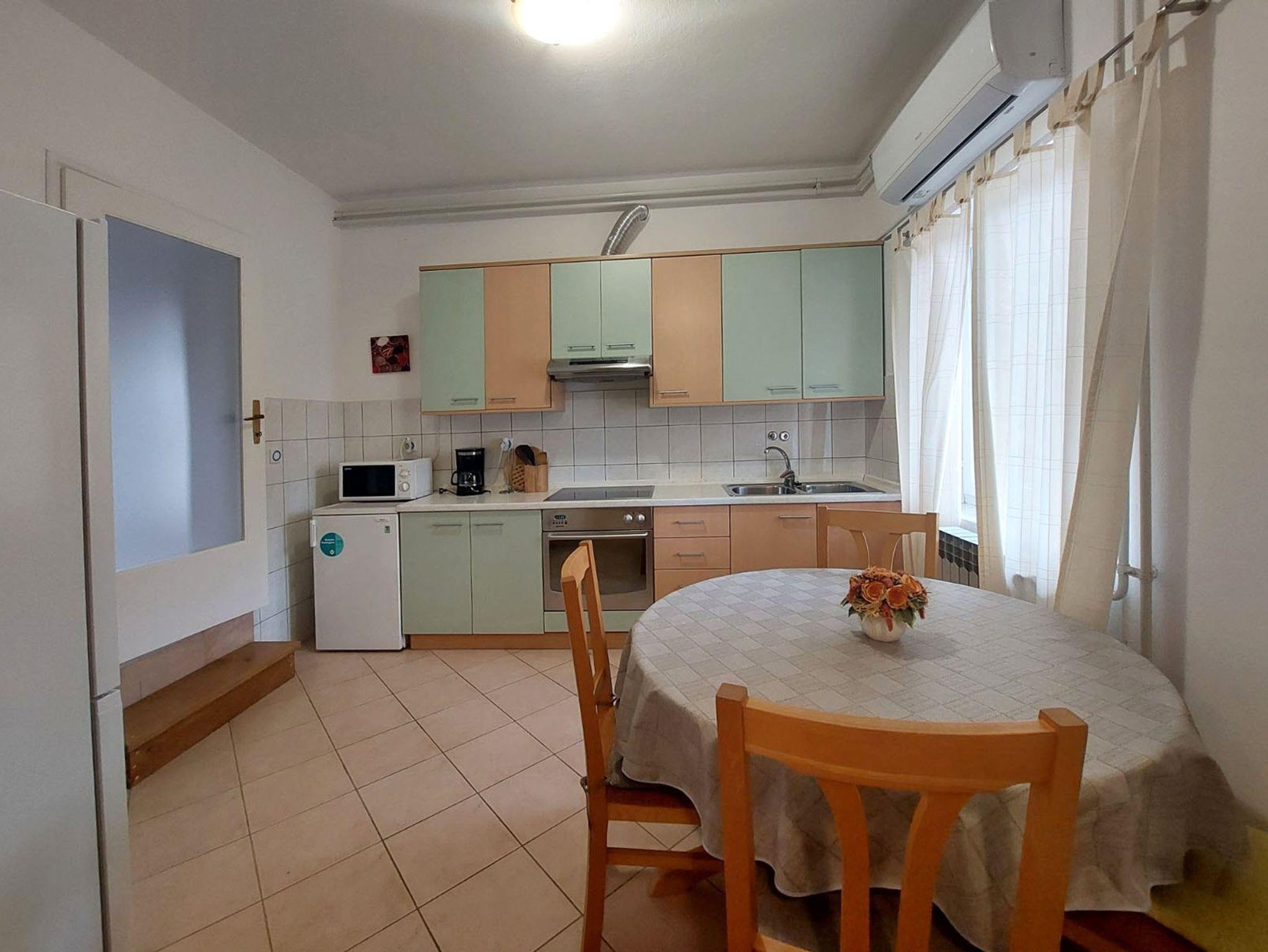 Ferienwohnung bietet Platz für 4 Gäste. Die Betten sind in Schlafzimmern, die es 1 gibt, und in Wohnzimmer, innerhalb einer Gesamtfläche von 54m2, angeordnet. Die Gäste haben eine eigene Terrasse zur Verfügung, auf der sie in warmen Sommernächten genießen können. Das Apartment bietet Meerblick. Es ist erlaubt, Speisen auf dem Gemeinschafts-Grill vorzubereiten. IM PREIS INBEGRIFFEN: Kurtaxe, Endreinigung, Klimatisierung, Parkplatz, Internet, Föhn, tragbarer Grill. VERBINDLICHE ZUSÄTZLICHE KOSTEN: Aufzahlung für Kurzaufenthalte (prozentualer Zuschlag pro Nächtigungsanzahl: 30% - 1, 20% - 2, 10% - 3). Die Verfügbarkeit zusätzlicher Dienstleistungen in Ihrem reservierten Termin und die Preise derselben (falls nicht aufgeführt) müssen im Voraus überprüft werden. Zusätzliche Dienstleistungen die in der Zahlungsaufforderung nicht aufgeführt sind werden direkt beim Vermieter bezahlt, angenommen der Gast nutzt auch diese. Ermäßigung auf den Grundpreis: Gratistag 14=13 (bei einem Aufenthalt von 14 Tagen oder mehr erhalten Sie einen Gratistag für den Aufenthalt bis 31.12.26).