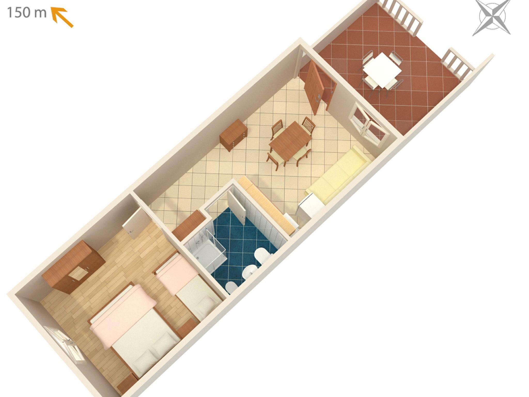 Ferienwohnung bietet Platz für 3 Gäste. Die Betten sind in Schlafzimmern, die es 1 gibt, und in Esszimmer, innerhalb einer Gesamtfläche von 37m2, angeordnet. Die Gäste haben eine eigene Terrasse zur Verfügung, auf der sie in warmen Sommernächten genießen können. Das Apartment bietet Meerblick. Es ist erlaubt, Speisen auf dem Gemeinschafts-Grill vorzubereiten. IM PREIS INBEGRIFFEN: Kurtaxe, Endreinigung, Klimatisierung, Parkplatz, Internet, Bügeleisen, Bügelbrett, Föhn. VERBINDLICHE ZUSÄTZLICHE KOSTEN: Aufzahlung für Kurzaufenthalte (prozentualer Zuschlag pro Nächtigungsanzahl: 30% - 1, 20% - 2, 10% - 3). UNVERBINDLICHE ZUSÄTZLICHE KOSTEN: Zusatzbett (5,00 € pro Nacht). Die Verfügbarkeit zusätzlicher Dienstleistungen in Ihrem reservierten Termin und die Preise derselben (falls nicht aufgeführt) müssen im Voraus überprüft werden. Zusätzliche Dienstleistungen die in der Zahlungsaufforderung nicht aufgeführt sind werden direkt beim Vermieter bezahlt, angenommen der Gast nutzt auch diese.