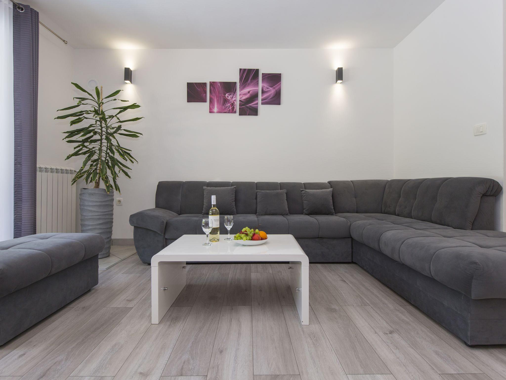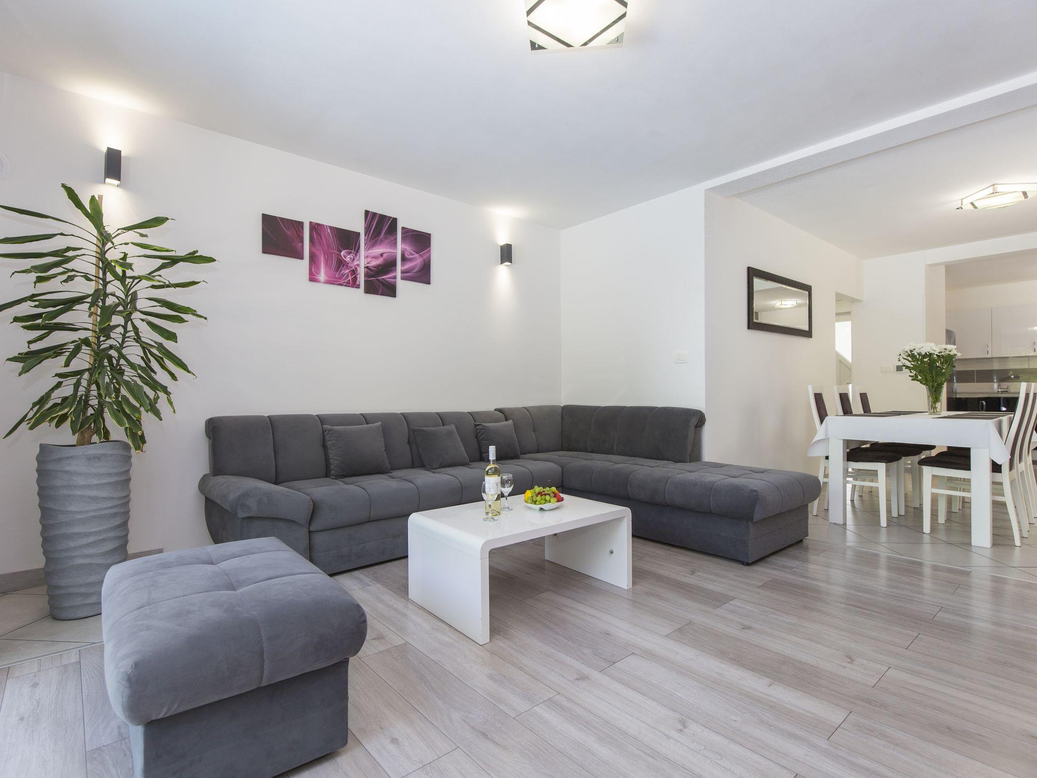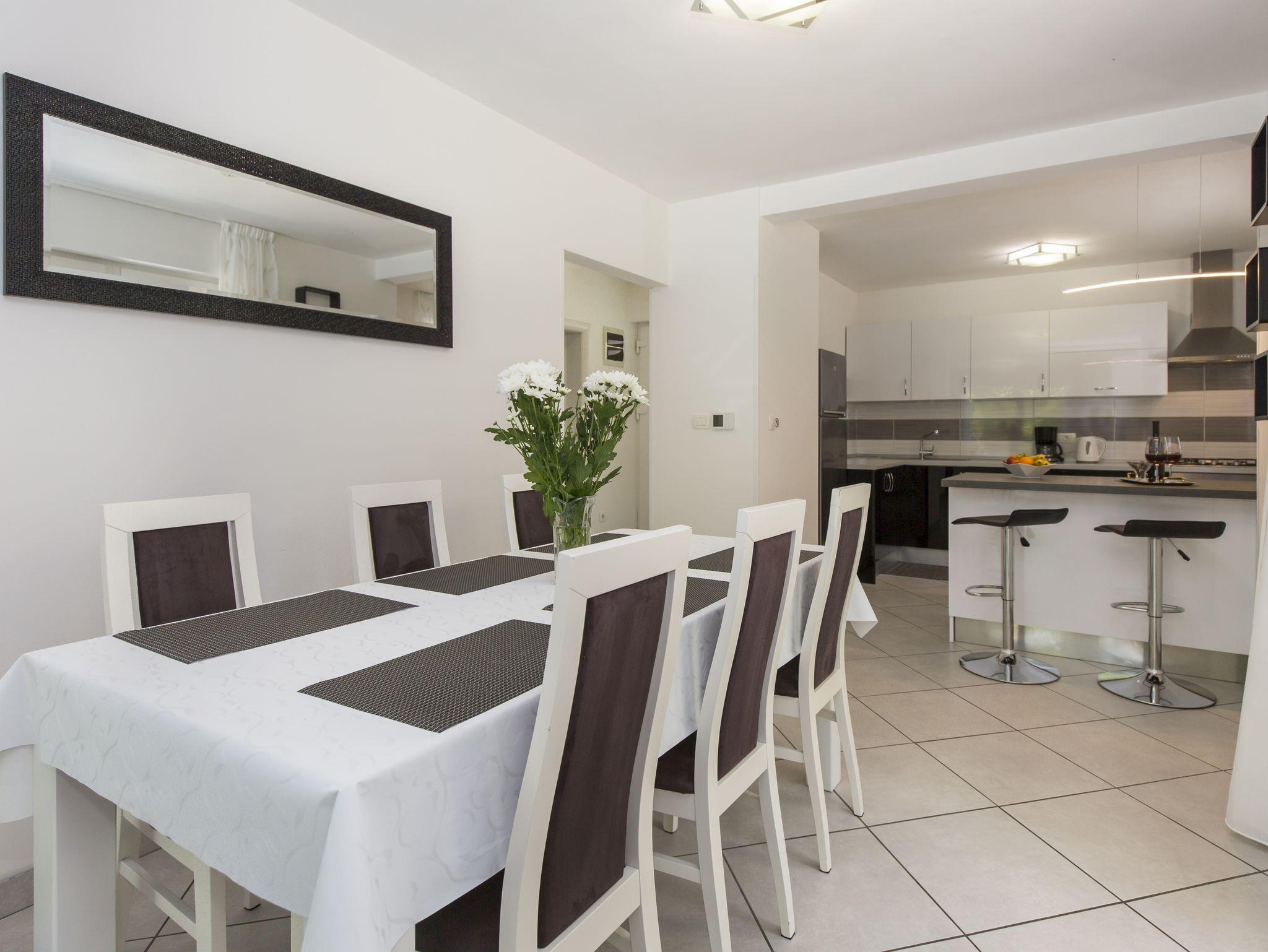 Haus bietet Platz für 6 Gäste. Die Betten sind in Schlafzimmern, die es 3 gibt, innerhalb einer Gesamtfläche von 101m2, angeordnet. Die Gäste haben eine eigene Terrasse zur Verfügung, auf der sie in warmen Sommernächten genießen können. Für vollen Genuss und Entspannung gibt es einen privaten Grill für Gäste dieser Unterkunft. Während ihres Aufenthalts können sich Gäste im privaten Schwimmbad entspannen. IM PREIS INBEGRIFFEN: Kurtaxe, Endreinigung, Klimatisierung, Pool, Parkplatz, Internet, Kinderbett, Bügeleisen, Bügelbrett, Föhn. Die Verfügbarkeit zusätzlicher Dienstleistungen in Ihrem reservierten Termin und die Preise derselben (falls nicht aufgeführt) müssen im Voraus überprüft werden. Zusätzliche Dienstleistungen die in der Zahlungsaufforderung nicht aufgeführt sind werden direkt beim Vermieter bezahlt, angenommen der Gast nutzt auch diese. Ermäßigung auf den Grundpreis: Gratistag 14=13 (bei einem Aufenthalt von 14 Tagen oder mehr erhalten Sie einen Gratistag für den Aufenthalt bis 31.12.26).