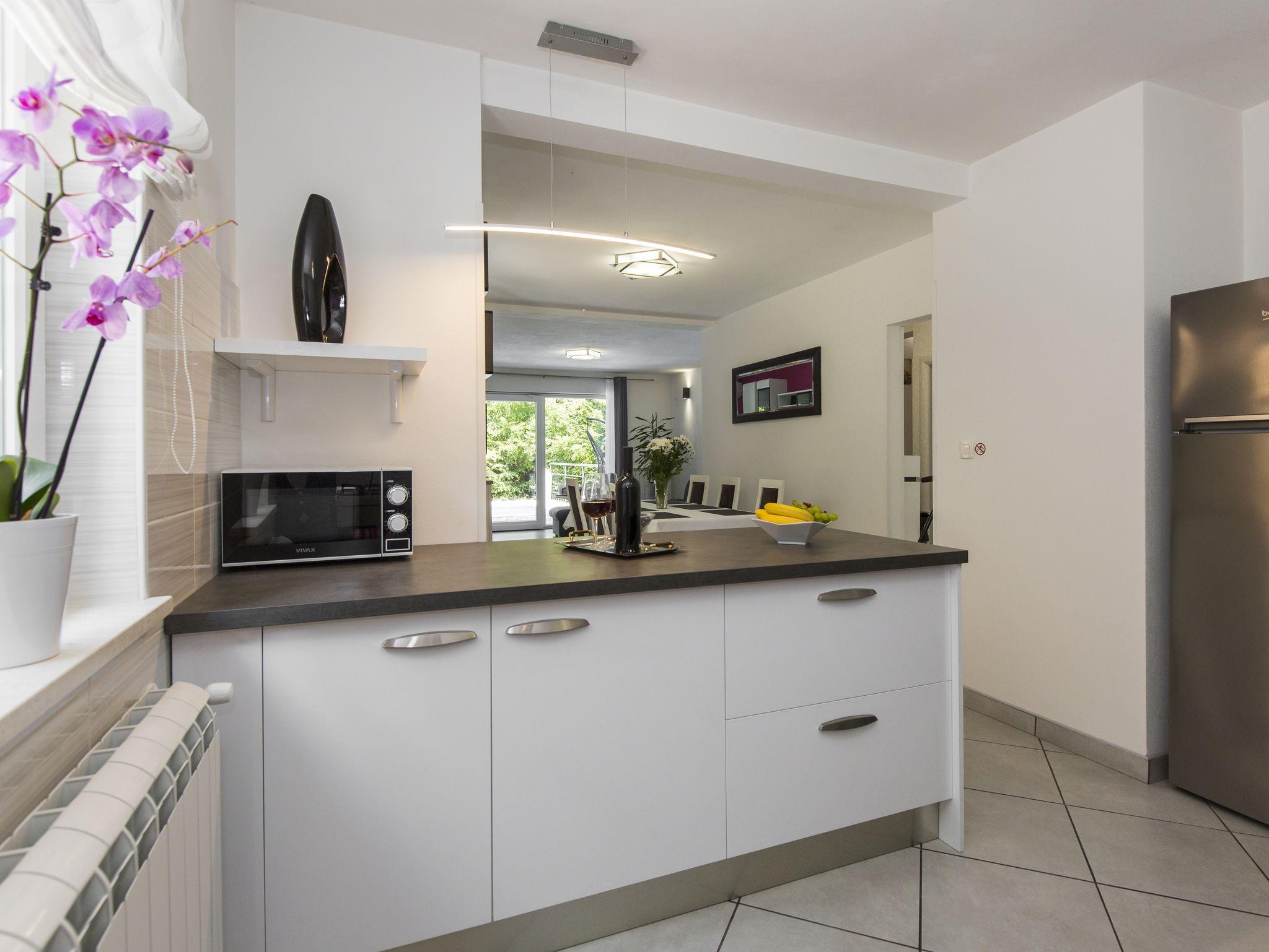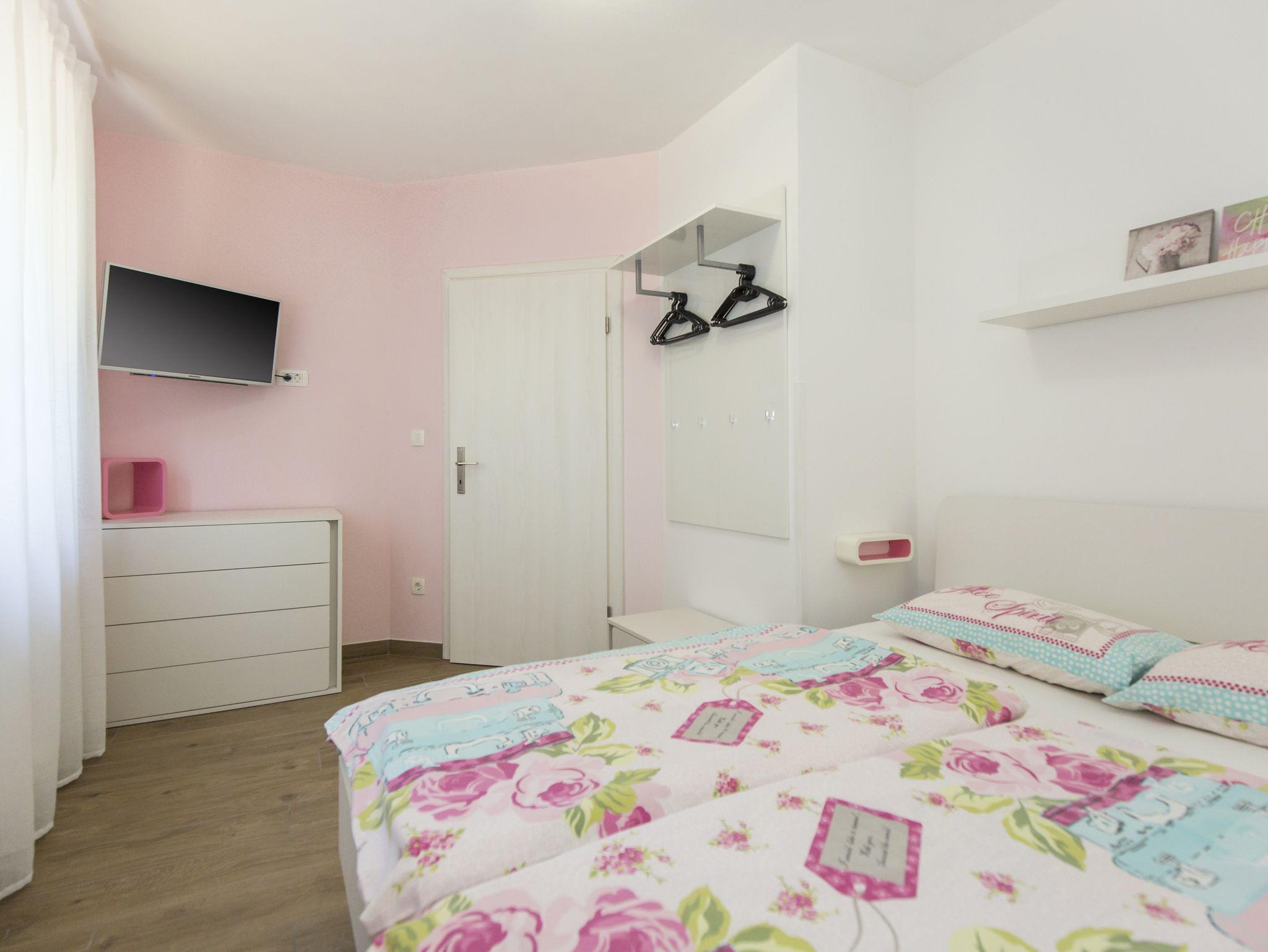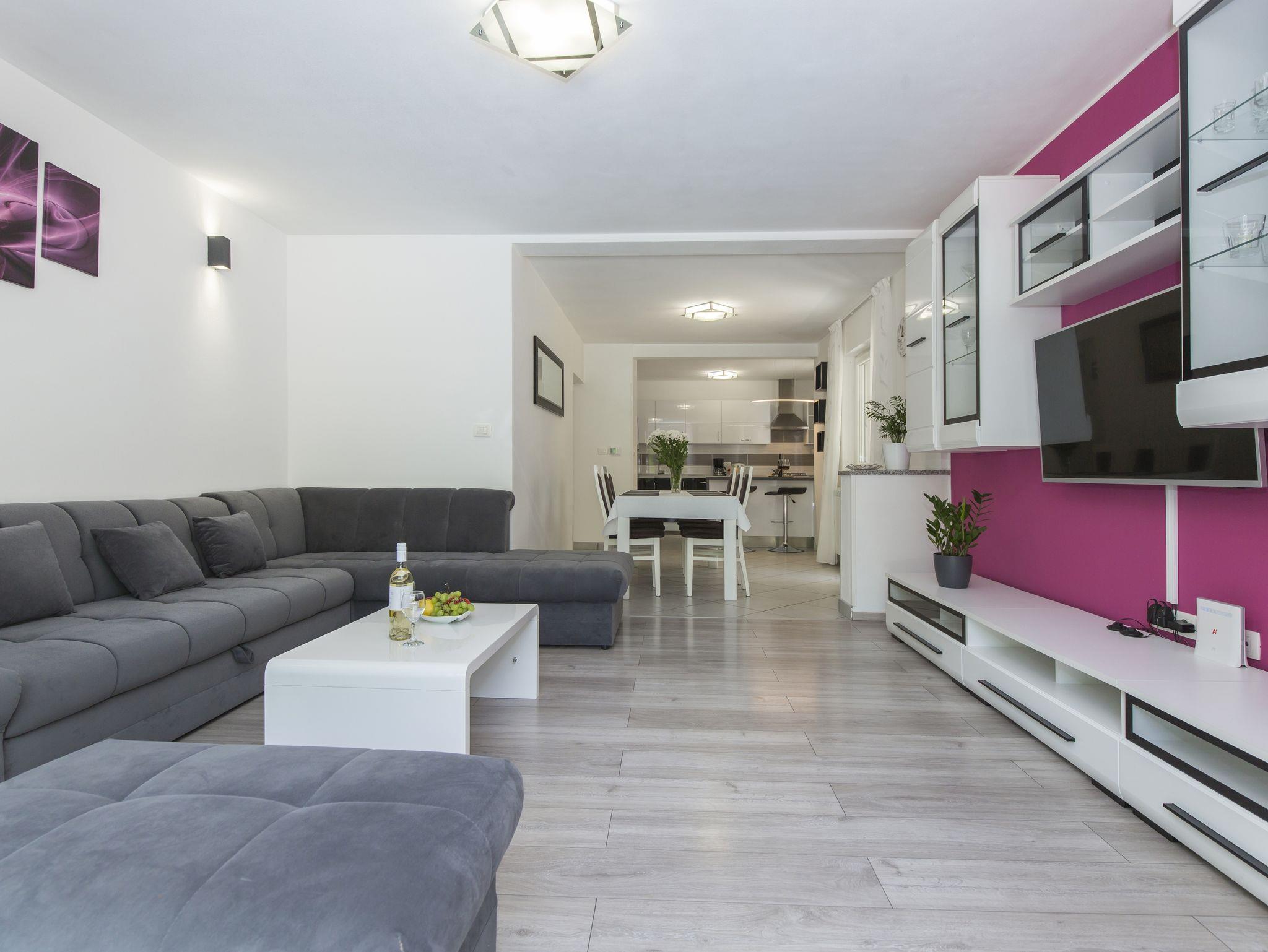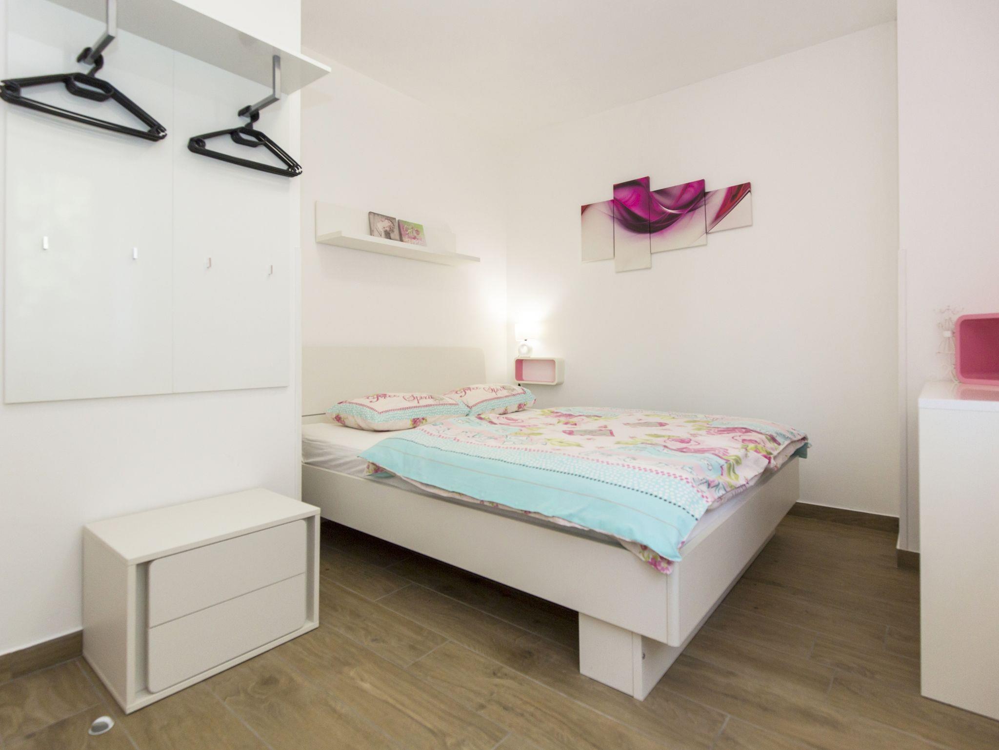 Haus bietet Platz für 6 Gäste. Die Betten sind in Schlafzimmern, die es 3 gibt, innerhalb einer Gesamtfläche von 101m2, angeordnet. Die Gäste haben eine eigene Terrasse zur Verfügung, auf der sie in warmen Sommernächten genießen können. Für vollen Genuss und Entspannung gibt es einen privaten Grill für Gäste dieser Unterkunft. Während ihres Aufenthalts können sich Gäste im privaten Schwimmbad entspannen. IM PREIS INBEGRIFFEN: Kurtaxe, Endreinigung, Klimatisierung, Pool, Parkplatz, Internet, Kinderbett, Bügeleisen, Bügelbrett, Föhn. Die Verfügbarkeit zusätzlicher Dienstleistungen in Ihrem reservierten Termin und die Preise derselben (falls nicht aufgeführt) müssen im Voraus überprüft werden. Zusätzliche Dienstleistungen die in der Zahlungsaufforderung nicht aufgeführt sind werden direkt beim Vermieter bezahlt, angenommen der Gast nutzt auch diese. Ermäßigung auf den Grundpreis: Gratistag 14=13 (bei einem Aufenthalt von 14 Tagen oder mehr erhalten Sie einen Gratistag für den Aufenthalt bis 31.12.26).