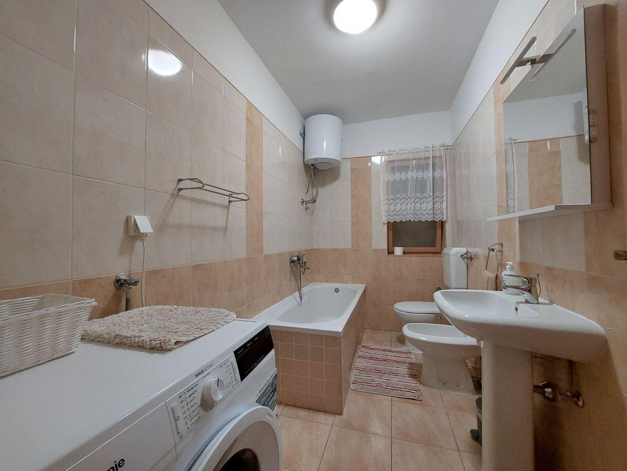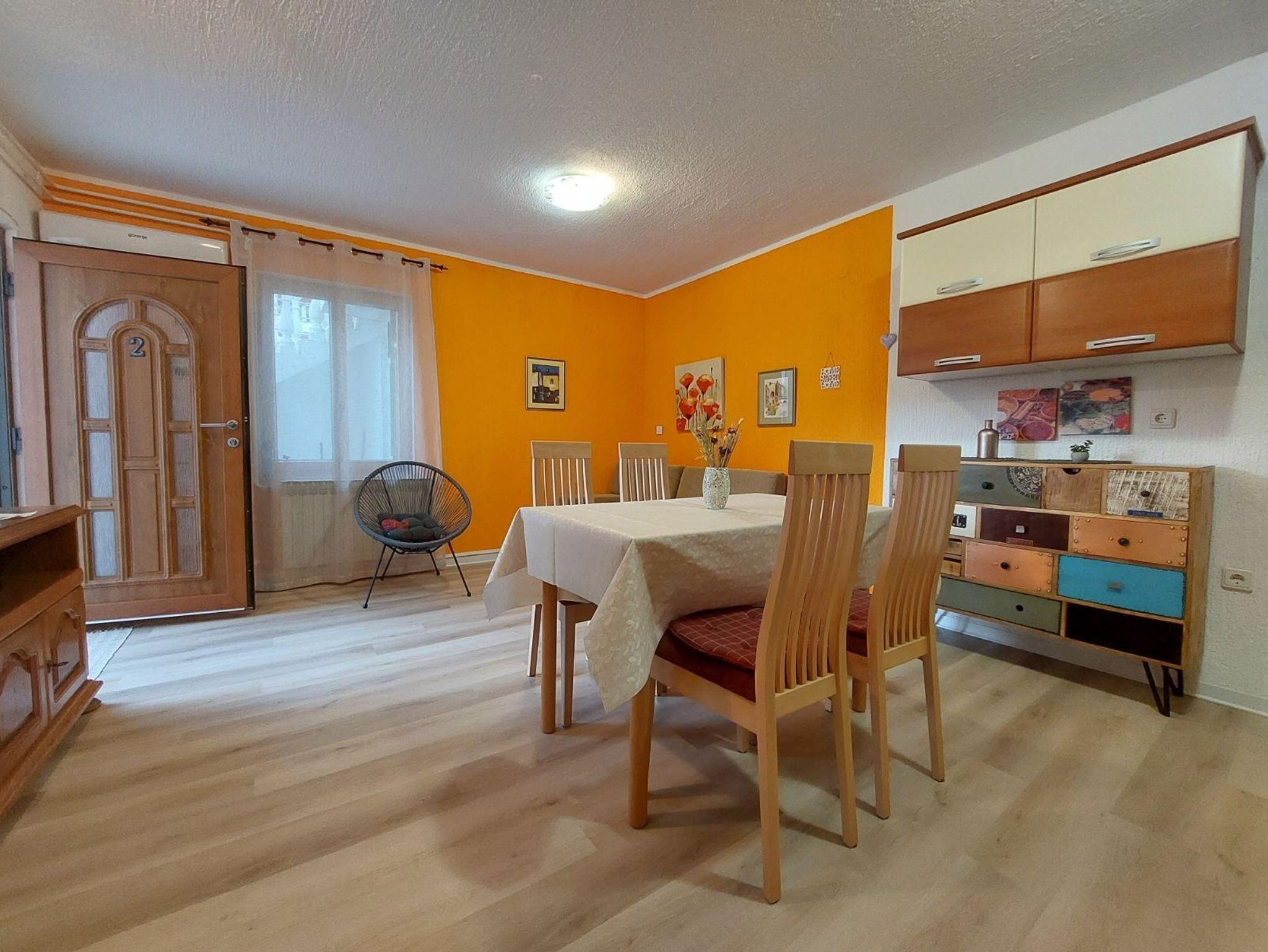 Ferienwohnung bietet Platz für 2 Gäste. Die Betten sind in Schlafzimmern, die es 1 gibt, innerhalb einer Gesamtfläche von 42m2, angeordnet. Die Gäste haben eine eigene Terrasse zur Verfügung, auf der sie in warmen Sommernächten genießen können. Das Apartment bietet Meerblick. Es ist erlaubt, Speisen auf dem Gemeinschafts-Grill vorzubereiten. IM PREIS INBEGRIFFEN: Kurtaxe, Endreinigung, Klimatisierung, Parkplatz, Internet, Föhn, tragbarer Grill. VERBINDLICHE ZUSÄTZLICHE KOSTEN: Aufzahlung für Kurzaufenthalte (prozentualer Zuschlag pro Nächtigungsanzahl: 30% - 1, 20% - 2, 10% - 3). Die Verfügbarkeit zusätzlicher Dienstleistungen in Ihrem reservierten Termin und die Preise derselben (falls nicht aufgeführt) müssen im Voraus überprüft werden. Zusätzliche Dienstleistungen die in der Zahlungsaufforderung nicht aufgeführt sind werden direkt beim Vermieter bezahlt, angenommen der Gast nutzt auch diese. Ermäßigung auf den Grundpreis: Gratistag 14=13 (bei einem Aufenthalt von 14 Tagen oder mehr erhalten Sie einen Gratistag für den Aufenthalt bis 31.12.26).
