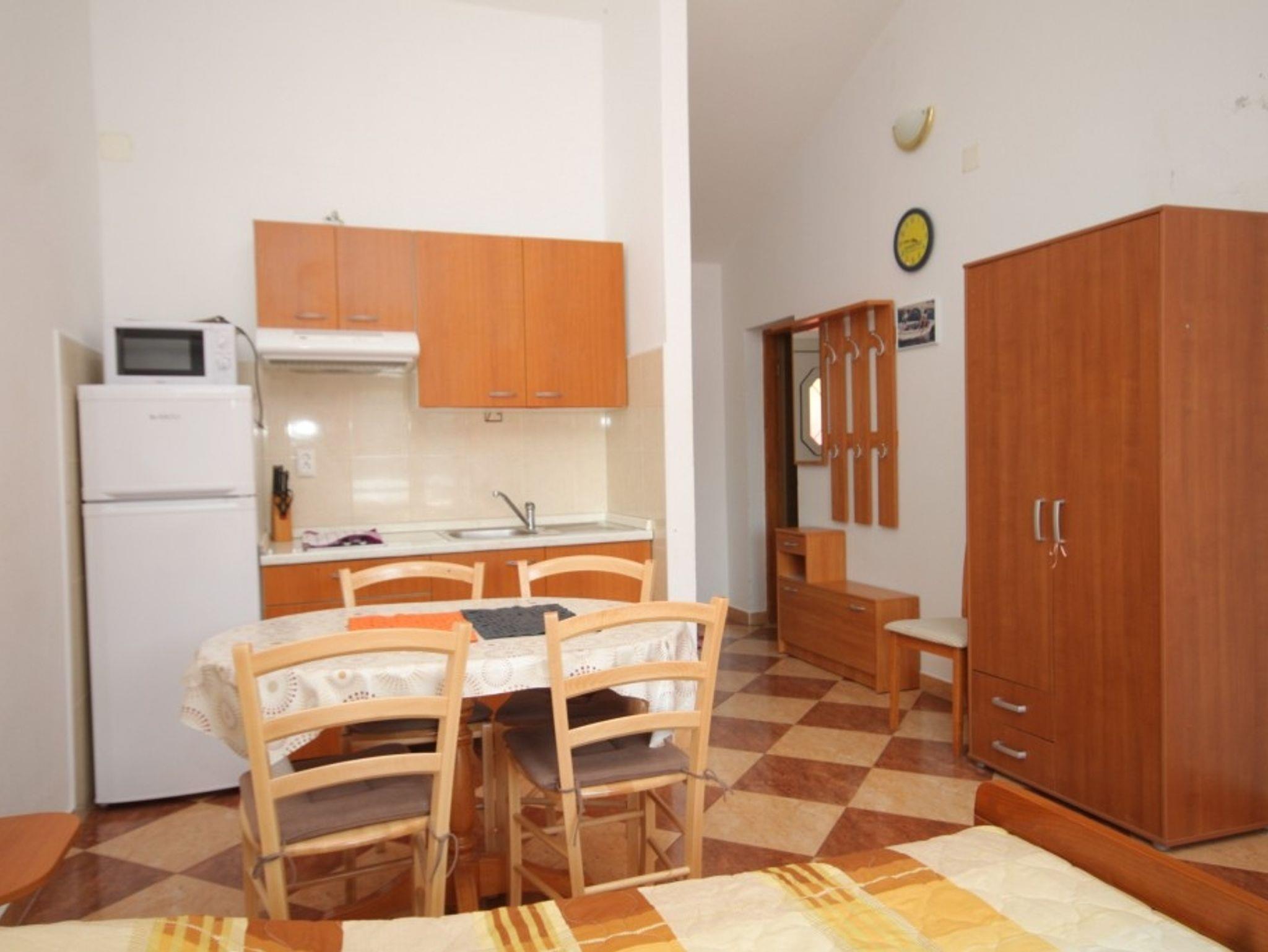 Studio bietet Platz für 2 Gäste. Die Betten sind in Wohnzimmer, innerhalb einer Gesamtfläche von 26m2, angeordnet. Die Gäste haben eine eigene Terrasse zur Verfügung, auf der sie in warmen Sommernächten genießen können. Das Studio-Apartment bietet Meerblick. Es ist erlaubt, Speisen auf dem Gemeinschafts-Grill vorzubereiten. IM PREIS INBEGRIFFEN: Kurtaxe, Endreinigung, Klimatisierung, Parkplatz, Internet, Bootsanlegeplatz, Zusatzbett, Bügeleisen, Bügelbrett, Föhn, Liegestühle. UNVERBINDLICHE ZUSÄTZLICHE KOSTEN: Wäschewaschen (10,00 € Waschen). Die Verfügbarkeit zusätzlicher Dienstleistungen in Ihrem reservierten Termin und die Preise derselben (falls nicht aufgeführt) müssen im Voraus überprüft werden. Zusätzliche Dienstleistungen die in der Zahlungsaufforderung nicht aufgeführt sind werden direkt beim Vermieter bezahlt, angenommen der Gast nutzt auch diese.