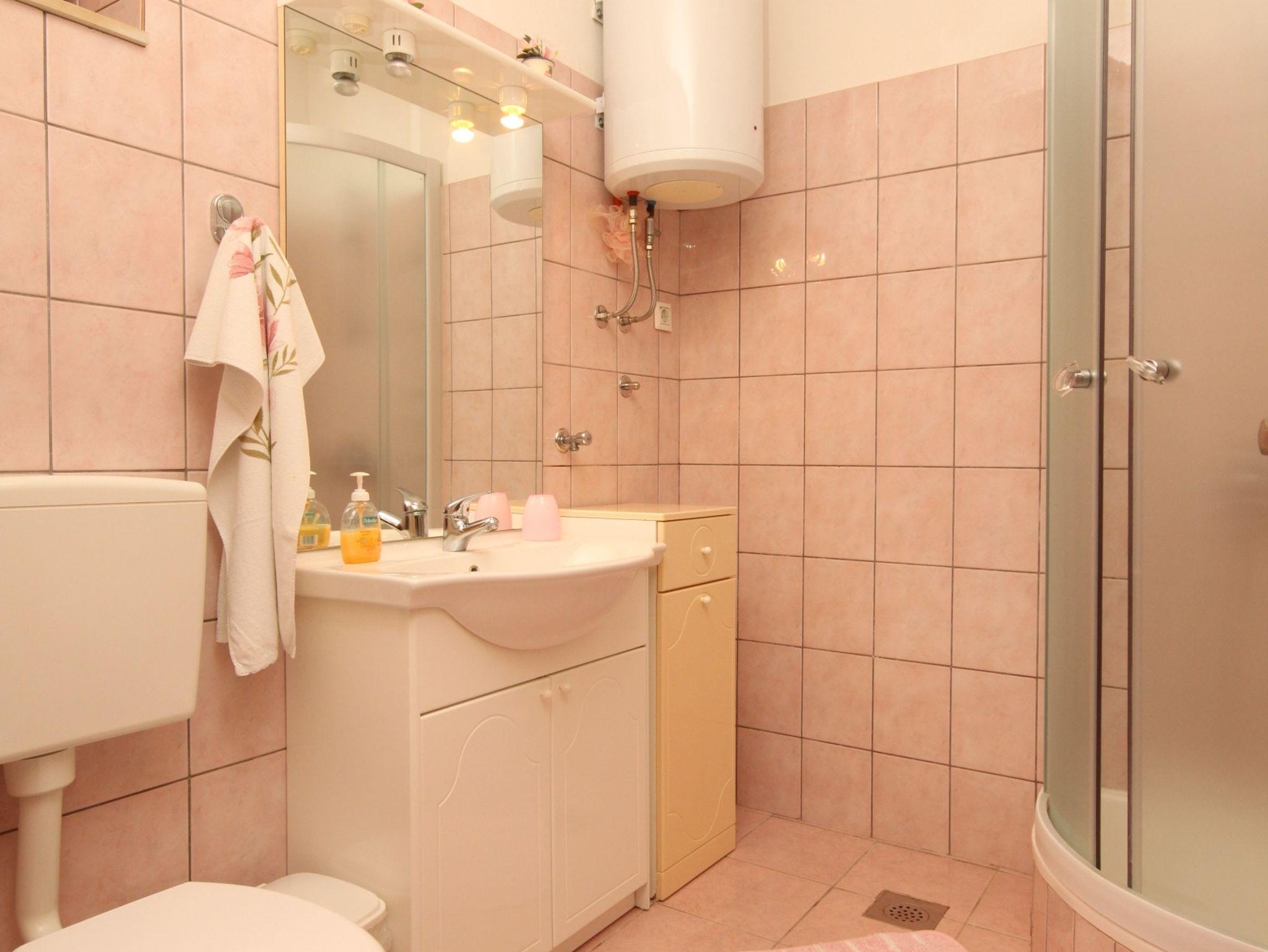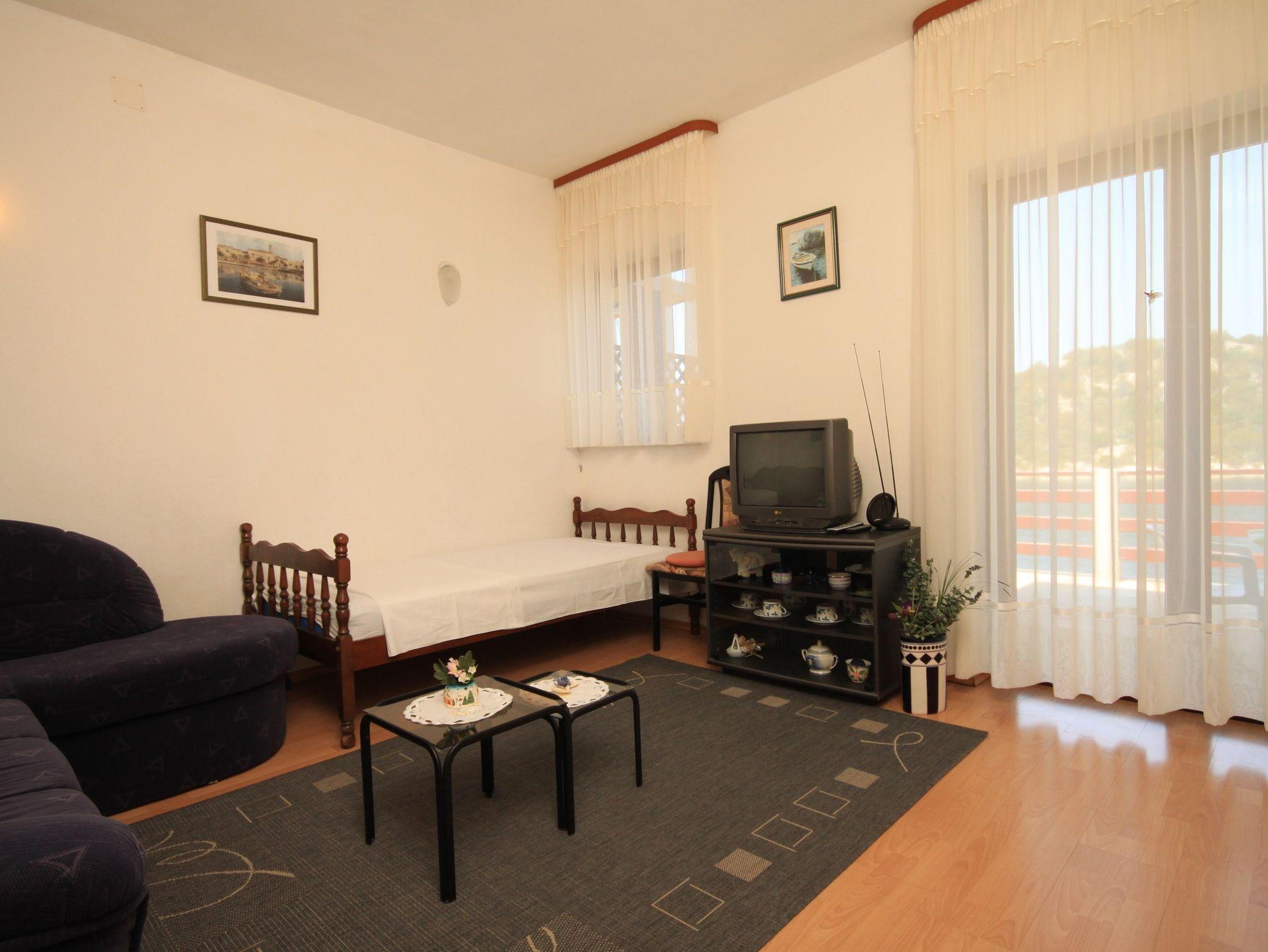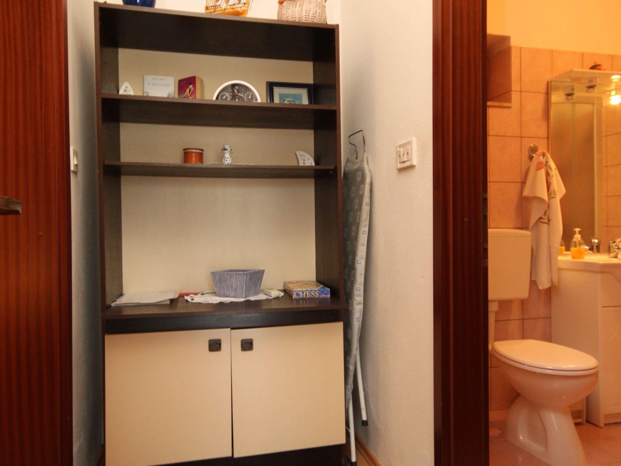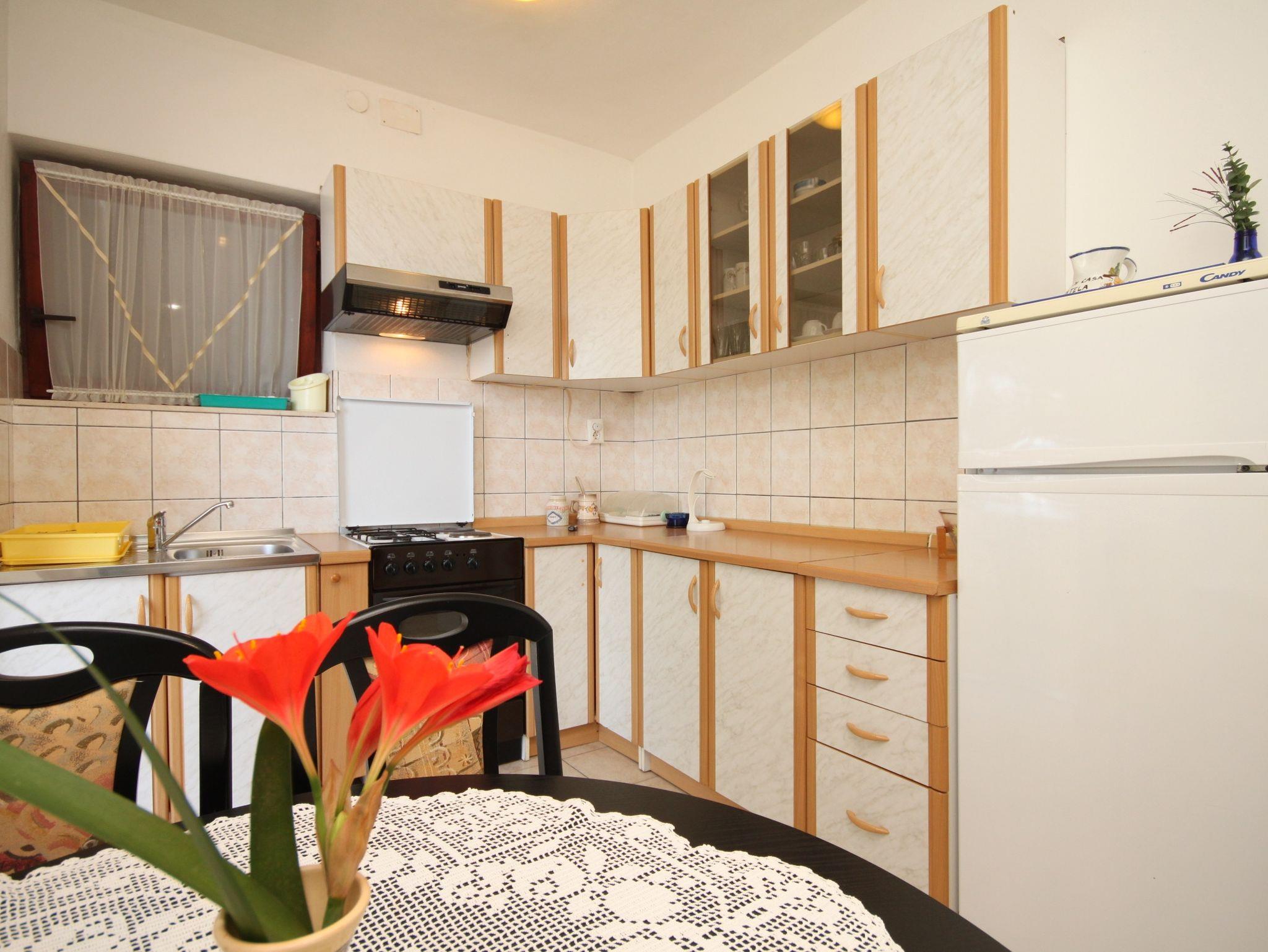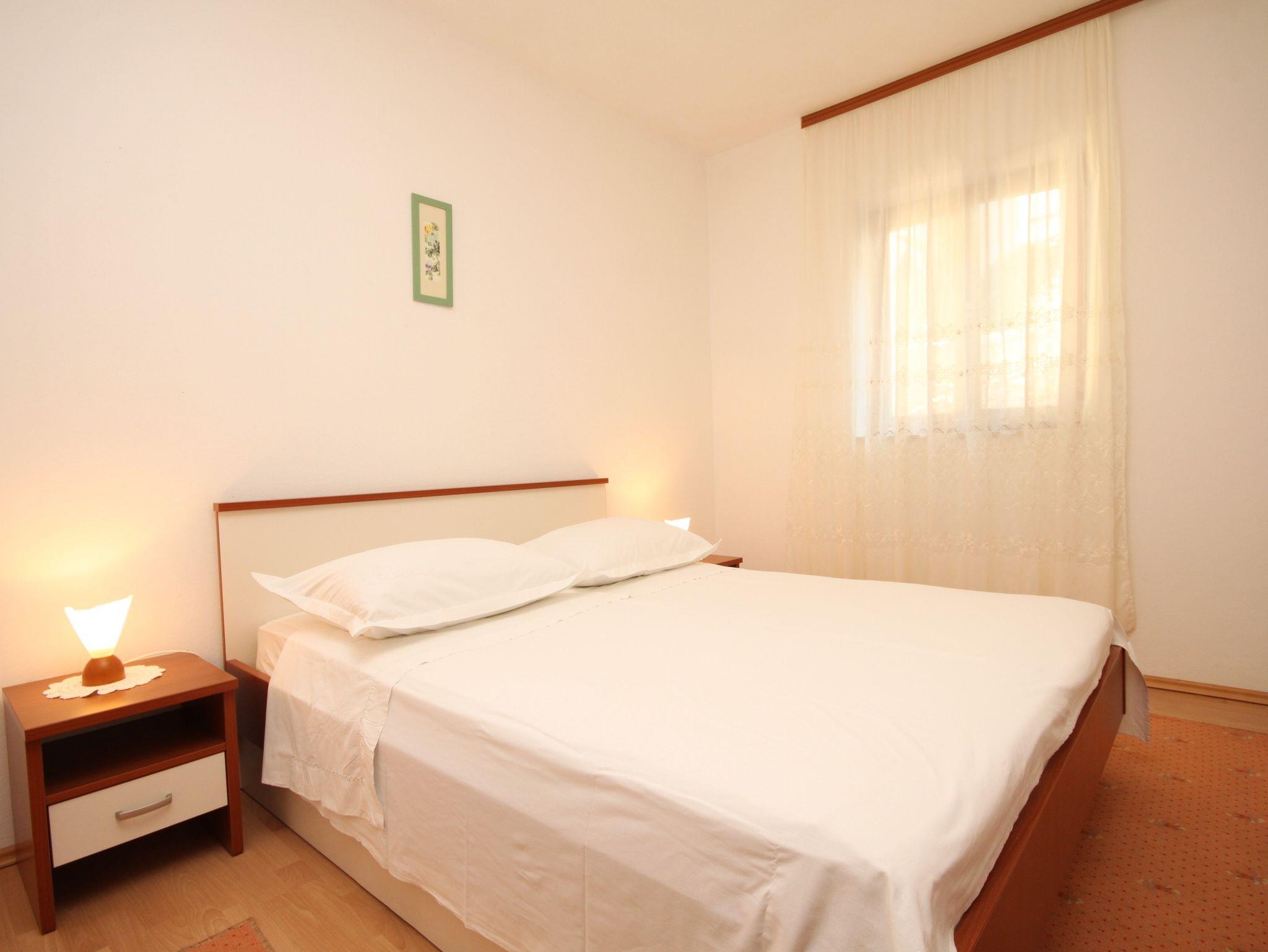 Ferienwohnung bietet Platz für 4 Gäste. Die Betten sind in Schlafzimmern, die es 1 gibt, und in Wohnzimmer, innerhalb einer Gesamtfläche von 43m2, angeordnet. Die Gäste haben eine eigene Terrasse zur Verfügung, auf der sie in warmen Sommernächten genießen können. Das Apartment bietet Meerblick. Es ist erlaubt, Speisen auf dem Gemeinschafts-Grill vorzubereiten. IM PREIS INBEGRIFFEN: Kurtaxe, Endreinigung, Klimatisierung, Parkplatz, Internet, Kinderbett, Bügeleisen, Bügelbrett, Föhn, Sonnenschirm, Liegestühle. VERBINDLICHE ZUSÄTZLICHE KOSTEN: Aufzahlung für Kurzaufenthalte (prozentualer Zuschlag pro Nächtigungsanzahl: 30% - 1, 20% - 2, 10% - 3). Die Verfügbarkeit zusätzlicher Dienstleistungen in Ihrem reservierten Termin und die Preise derselben (falls nicht aufgeführt) müssen im Voraus überprüft werden. Zusätzliche Dienstleistungen die in der Zahlungsaufforderung nicht aufgeführt sind werden direkt beim Vermieter bezahlt, angenommen der Gast nutzt auch diese.