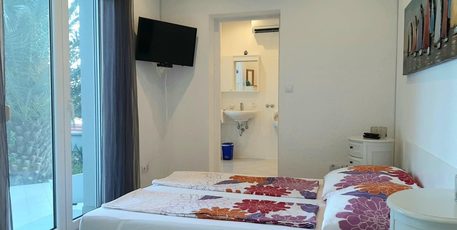 Buchen Sie die Wohnung mit 3 Schlafzimmern erhalten Sie durch eine Verbindungstür Zugang zum gesamten Bereich. so dass Sie 3 Schlafzimmer mit 2 Bädern erhalten. Bei dieser Variante nutzen Sie die Terrasse und den Pool allein.