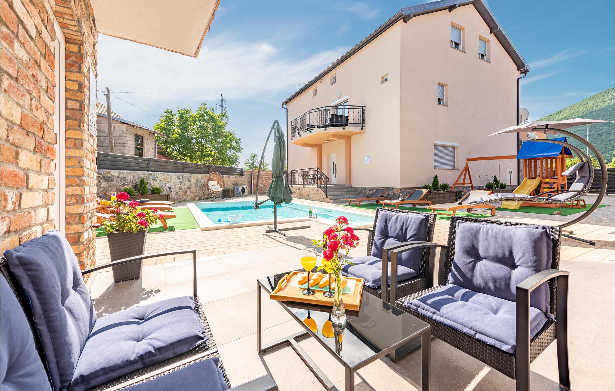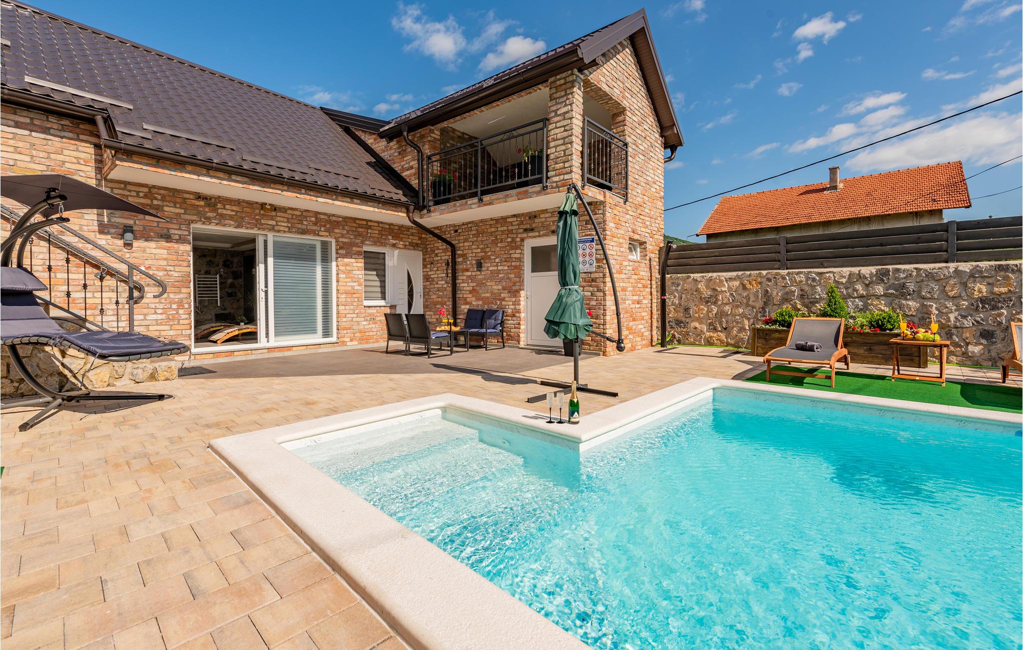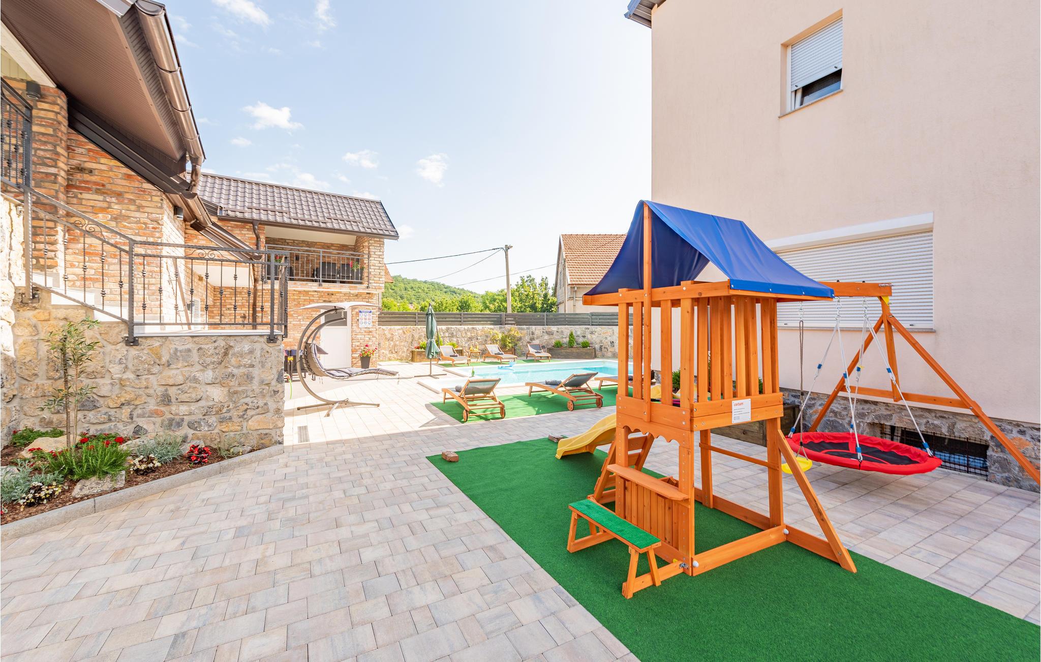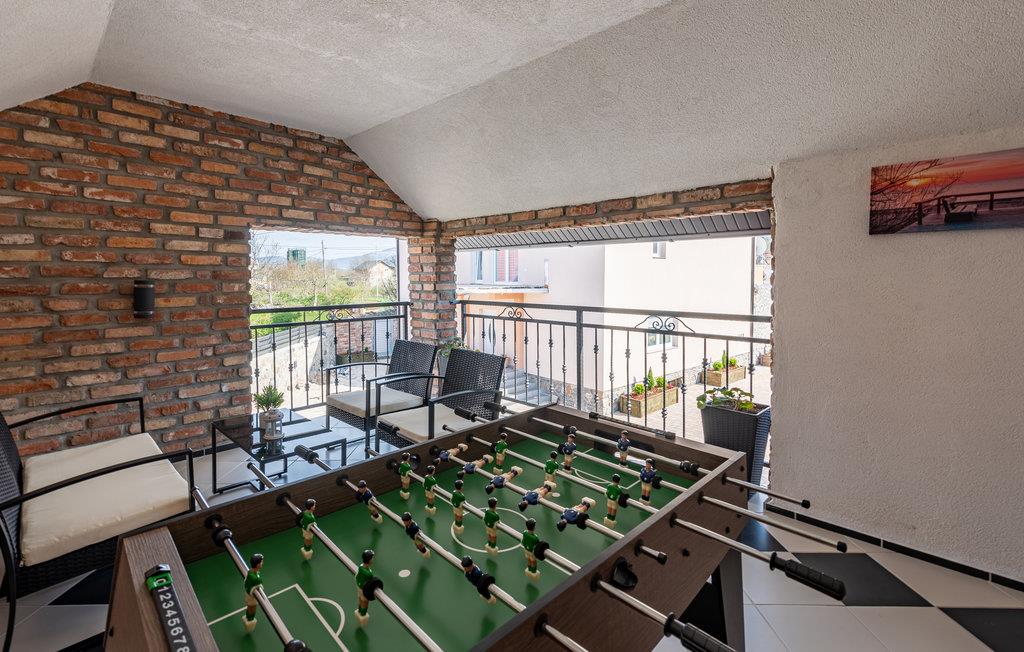 Glæd jer til en dejlig ferie sammen med familien i dette smukke feriehus i Gracac. Den komfortable og indbydende indkvartering tilbyder jer og familien en dejlig ramme til at slappe af sammen. Brug de hyggelige lokaler, herunder køkkenet eller det indbydende poolhus, til at lave mad, lege og slappe af. Nyd både udsigten over landskabet og spisning under åben himmel på jeres overdækkede terrasse. En fælles pool tilbyder jer en behagelig afkøling på varme dage og lægger op til at slappe af på solterrassen i solen. På kølige dage kan I slappe af i wellness-rummet. Brug saunaen eller jacuzzien og spil senere et spil bordfodbold med fornyet energi.