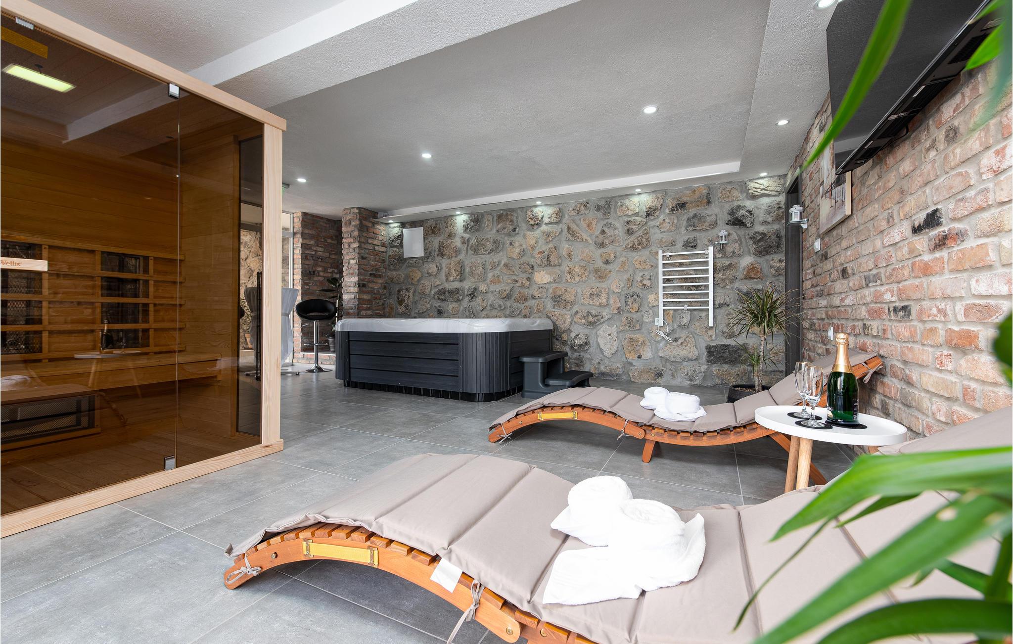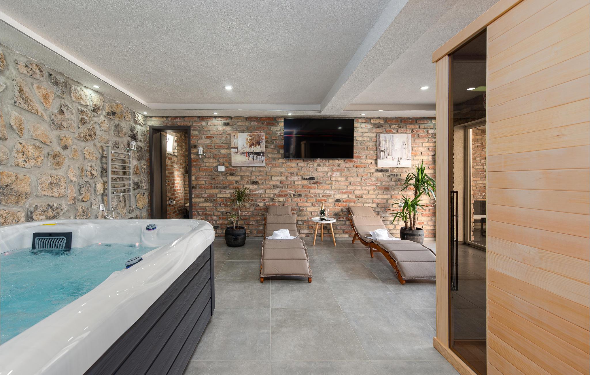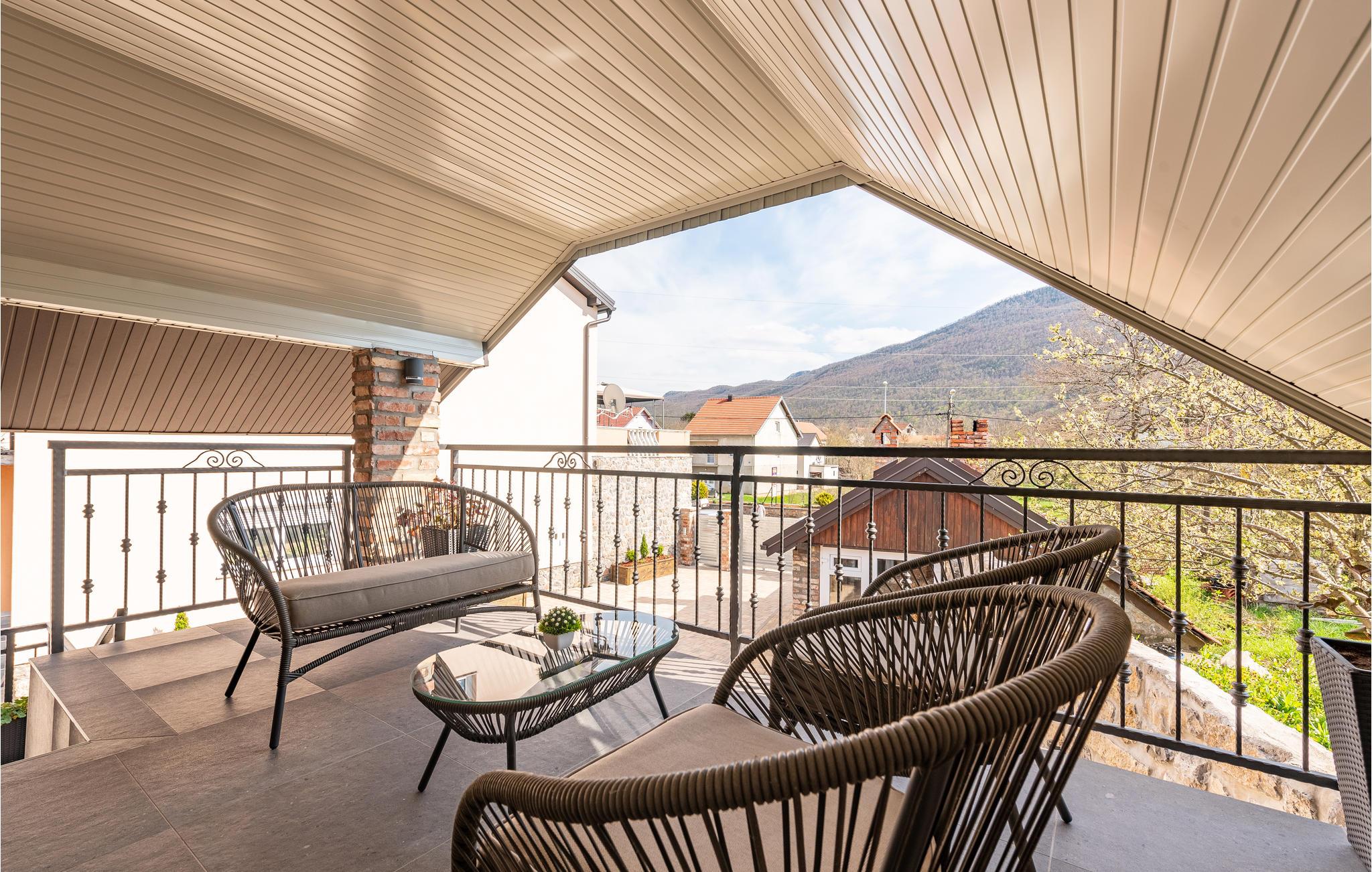 Glæd jer til en dejlig ferie sammen med familien i dette smukke feriehus i Gracac. Den komfortable og indbydende indkvartering tilbyder jer og familien en dejlig ramme til at slappe af sammen. Brug de hyggelige lokaler, herunder køkkenet eller det indbydende poolhus, til at lave mad, lege og slappe af. Nyd både udsigten over landskabet og spisning under åben himmel på jeres overdækkede terrasse. En fælles pool tilbyder jer en behagelig afkøling på varme dage og lægger op til at slappe af på solterrassen i solen. På kølige dage kan I slappe af i wellness-rummet. Brug saunaen eller jacuzzien og spil senere et spil bordfodbold med fornyet energi.