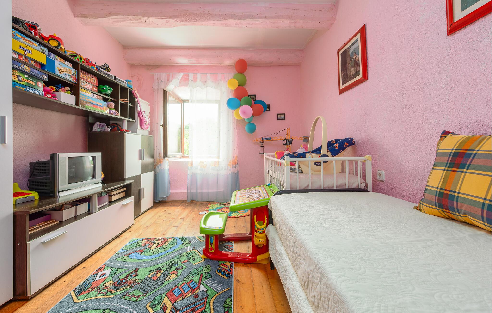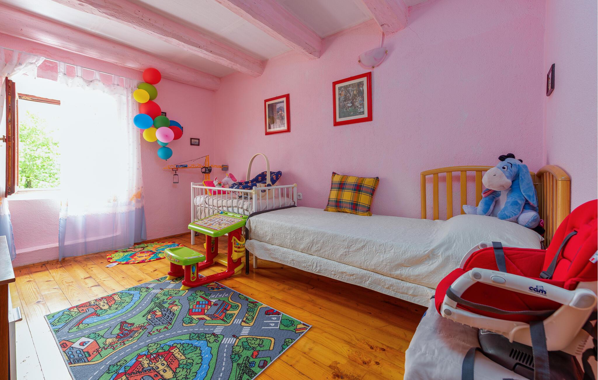 Tag familien under armen og rejs til det vestlige Kroatien, hvor I finder en herlig base i dette autentiske stenhus. Her får I mange kvadratmeter over to etager og en indretning, der fremtræder pænt og charmerende med enkel komfort. Huset er særdeles familievenligt og byder på mange gode legeredskaber, som børnene kan boltre sig med.