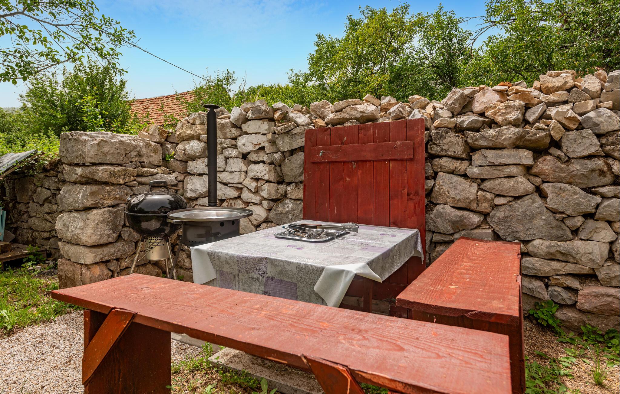 Omgivelserne er virkelig smukke og gør det til det ideelle valg for jer, der gerne vil opleve naturen fra første parket. Nyd den uberørte natur, fuglenes kvidren og den magiske ro, som er gennemgående for området. I kan også tage afstikkere ned til den lille å, hvor I kan køle jer af med en dukkert og måske lande en fisk til middagen med fiskestangen. Få kilometer væk ligger Ricice-søen, hvor I også kan vandre, bade og fiske. Begiv jer på dejlige vandreture i bjergene med de mange huler og smukke kløfter. Tag også på dagsture til Krka National Park eller Adriaterhavet og hop det krystalklare hav.