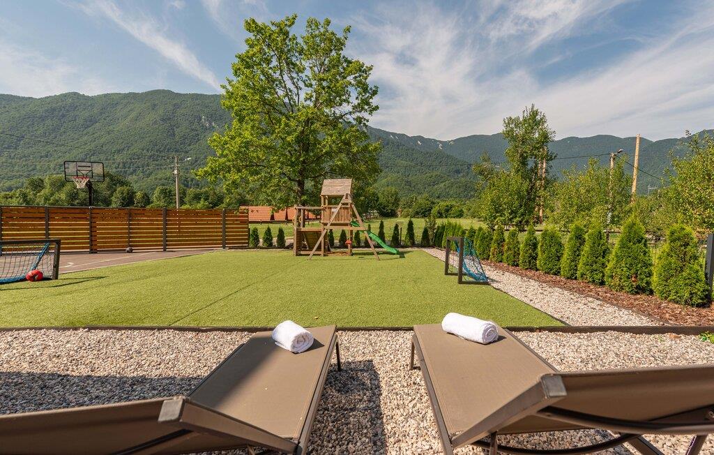 På de varme dage, og de bliver mange, kan I se frem til mange skønne timer i solen. For børnene er der mange gode legeredskaber, herunder deres eget lille legetårn, at boltre sig på. Måske I skal udfordre familien til en basketball-kamp? Ud på aftenen er der intet, der slår en tur i spabadet under stjernerne med et godt glas vin, mens I lægger planer for dagen, der kommer.
