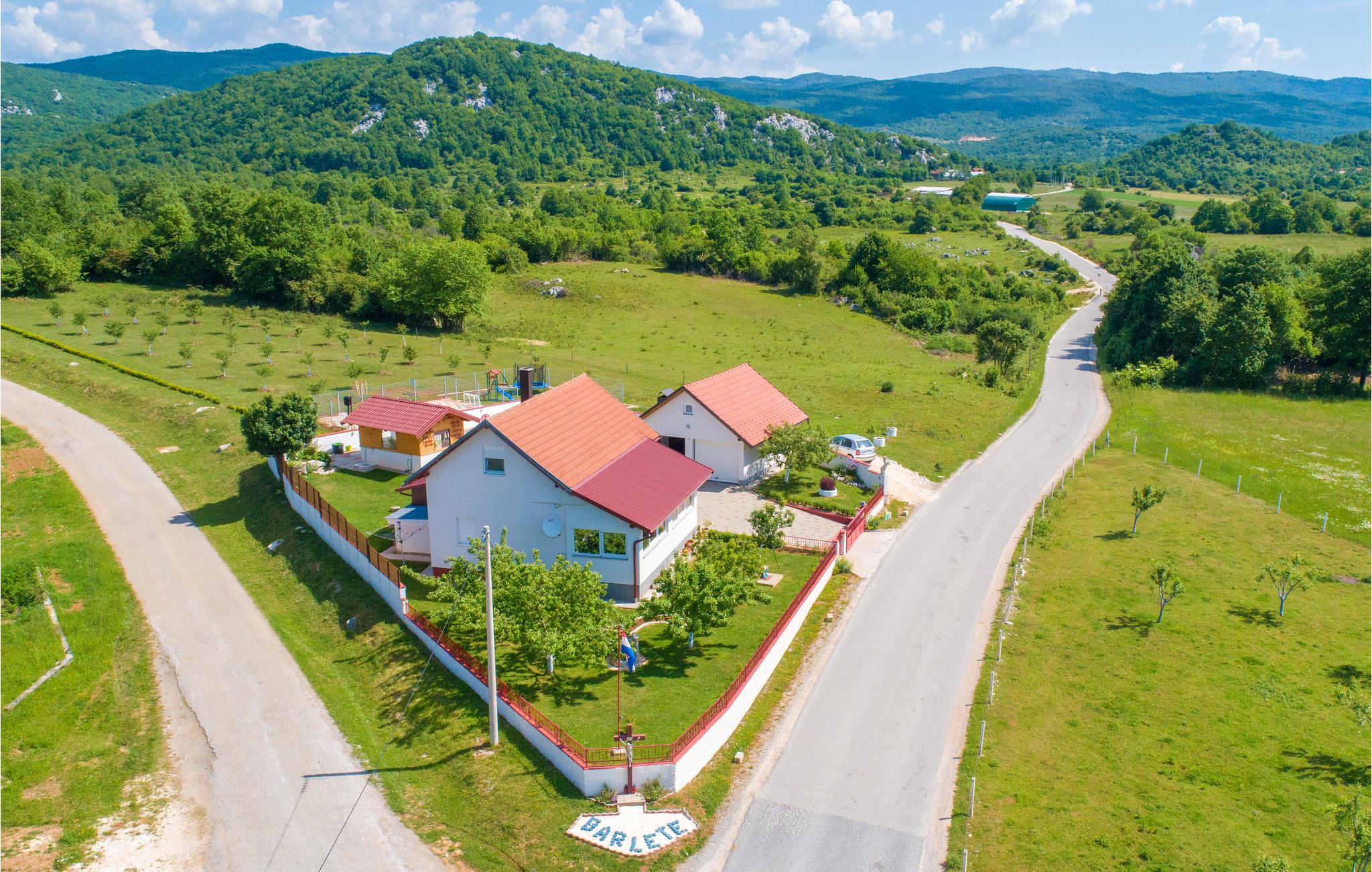 Dette skønne feriehus ligger i grønne omgivelser ikke langt fra Gospic. Huset er fordelt på stueetage og første sal og er forbundet med indre trappe. Foran huset er der en opvarmet swimmingpool, hvor det er skønt at plaske, lege og svømme. På den overdækkede terrasse er der et dejligt udendørs køkken, bord og stole samt en grill. I de smukke naturomgivelser kan I cykle, vandre og fiske i den nærliggende bæk. Det tage en time at køre til naturparken Plitvicesøerne. Feriehuset egner sig både godt til aktive og til naturelskere.