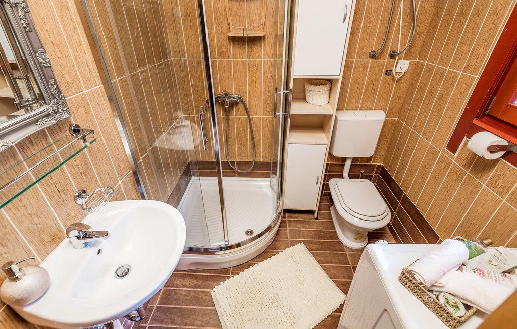 Badeværelse (nr. 1) - WC. Varmt og koldt vand. Bruser