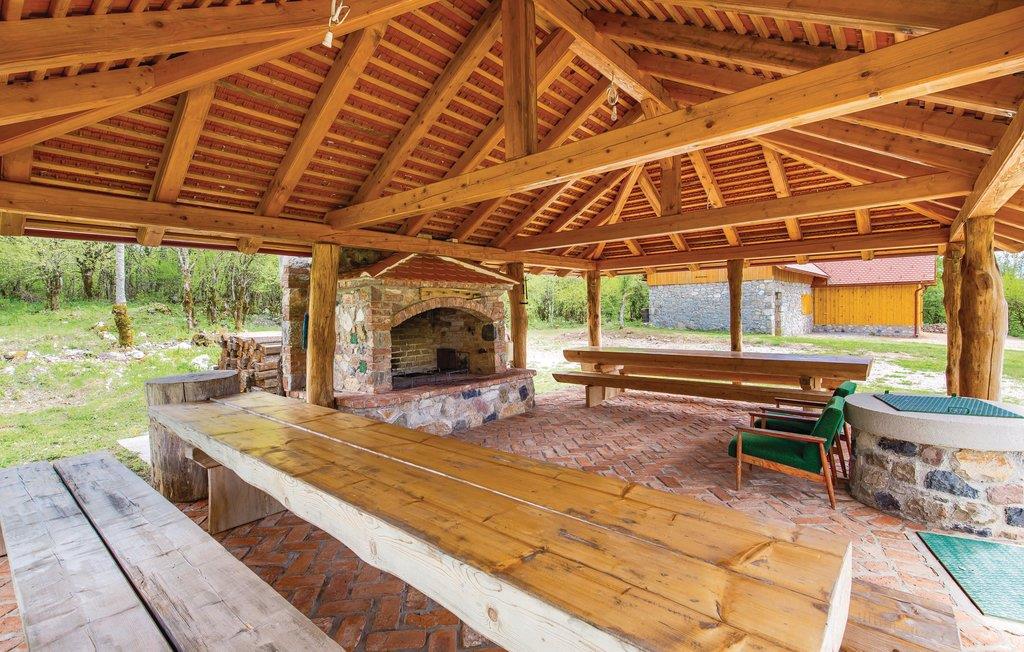 Et enkelt indrettet træhus, perfekt til familier med børn. Huset står på en fælles grund, der er 10.000 m² stor. Her finder I også feriehusene CKB294 og CKB295. De tre boliger egner sig godt for flere familier eller vennegrupper, der gerne vil holde ferie sammen. Atmosfæren og naturen i dette område er enestående og der er mange spændende udflugtsmål. Besøg for eksempel kilden til floden Gacka. I områdets restauranter burde I smage grillet ørred – en rigtig lækkerbisken. Besøg også monumentet Memorijalni centar Nikola Tesla i Smiljan, den verdensberømte fysikers hjemby. Husets tilkørsel er en 400 m lang grusvej. Feriehusene CKB295 og CKB294 deles om en pool med solterrasse, samt forskellige legeredskaber for børn: legehus, sandkasse, vippe og gynge. Desuden deler i otte cykler, et net til badminton og volleyball, en pavillon i haven med grill samt et anneks på to etager hvor I kan spille bordtennis, bordfodbold, projektor og lærred til præsentationer, billard og tekøkken samt badeværelse.