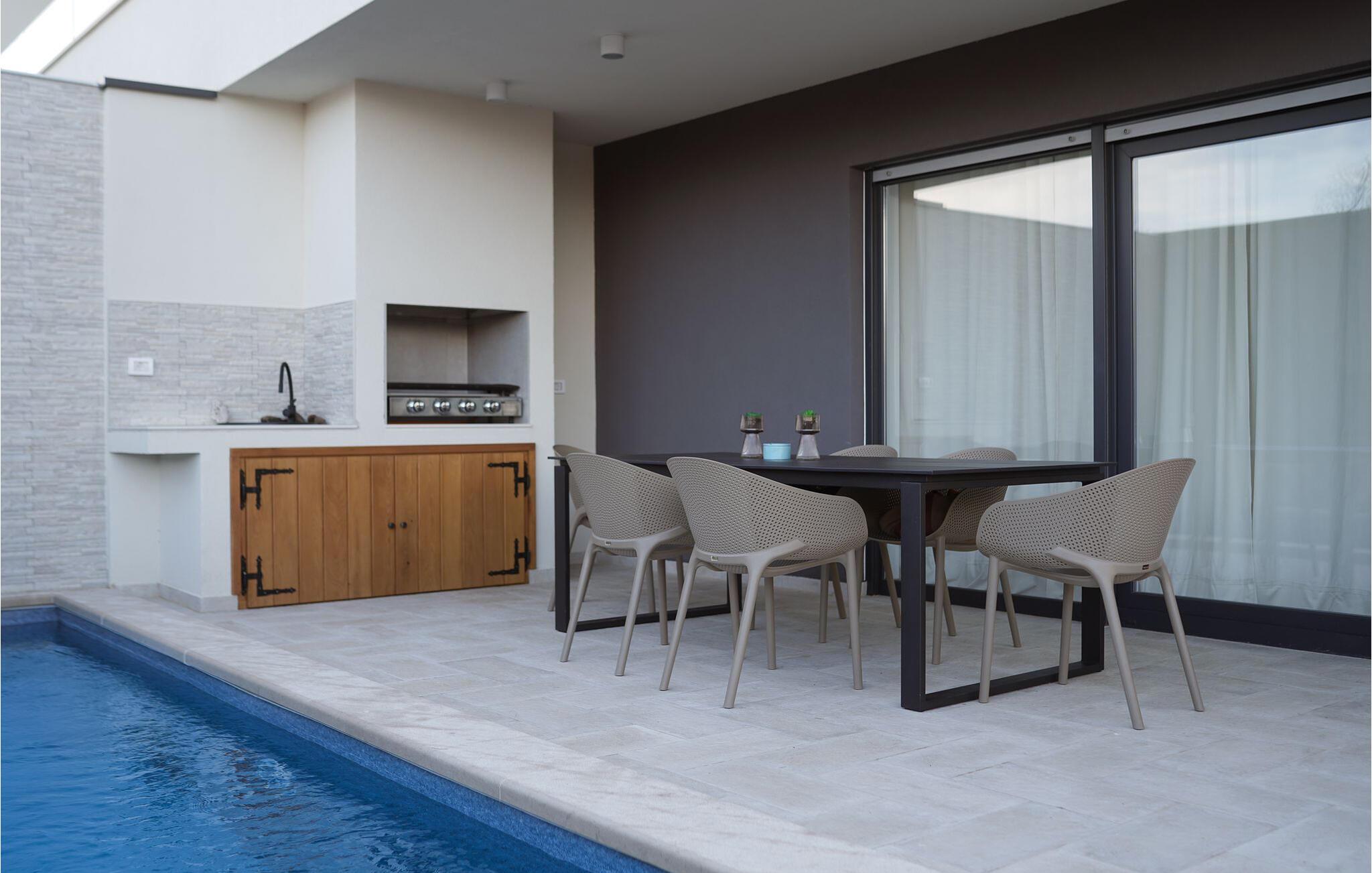 Genoplad jeres batterier, mens I solbader, og gør jer godt tilpas med en god bog på de komfortable liggestole. Snup en frisk dukkert i poolen så tit I har lyst, hold stemningsfulde grillfester i det moderne udekøkken og server frisk grillet fisk i den indbydende udendørs spiseplads.