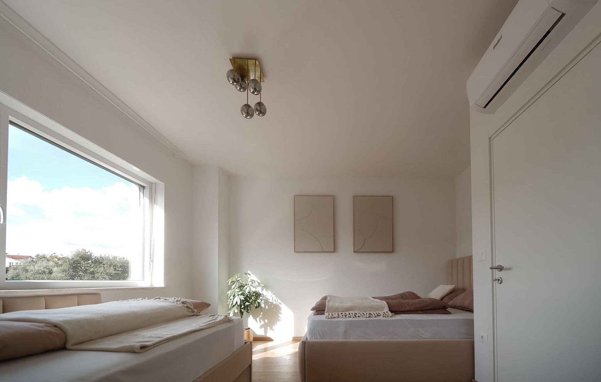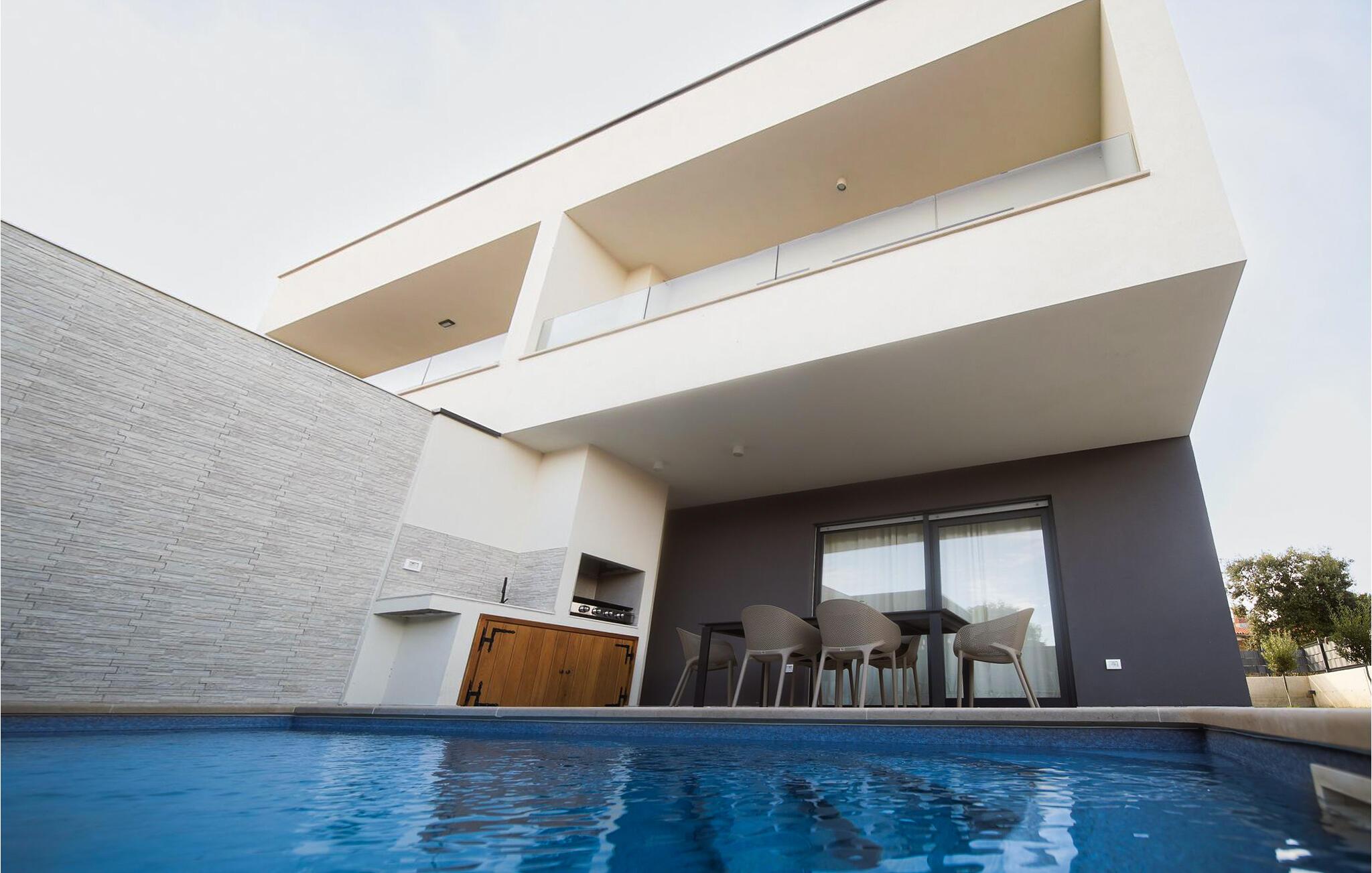 Fordyb jer i middelhavsletheden og nyd en uforglemmelig ferie i dette stilfulde feriehus af høj kvalitet. Lad jer fortrylle af det moderne design af de lyse rum, tilbered lækre retter i det moderne køkken og nyd dem ved det elegante spisebord. Tilbring hyggelige aftener på den komfortable sofa i stuen og slap af med en film eller et glas kroatisk vin.