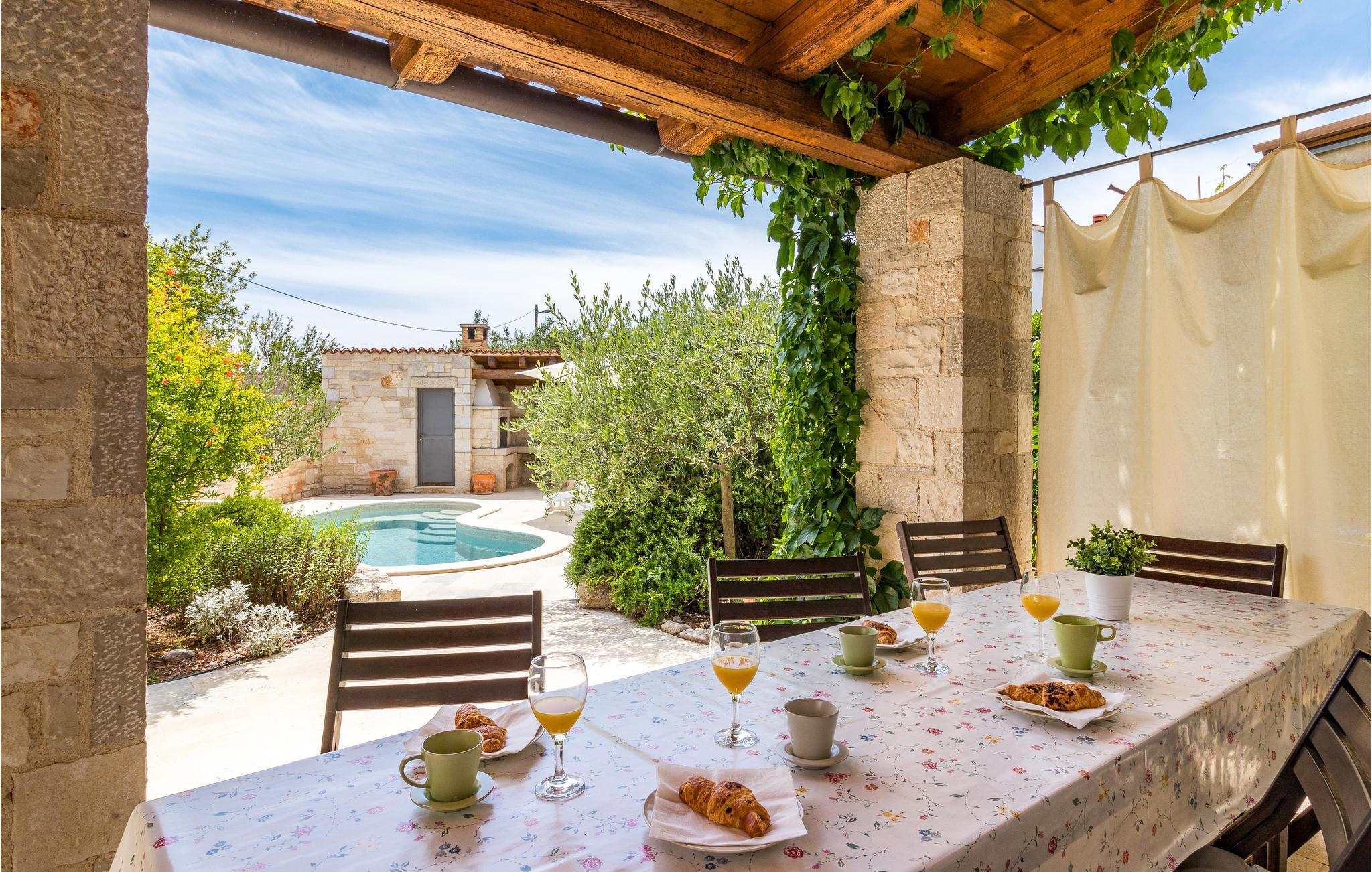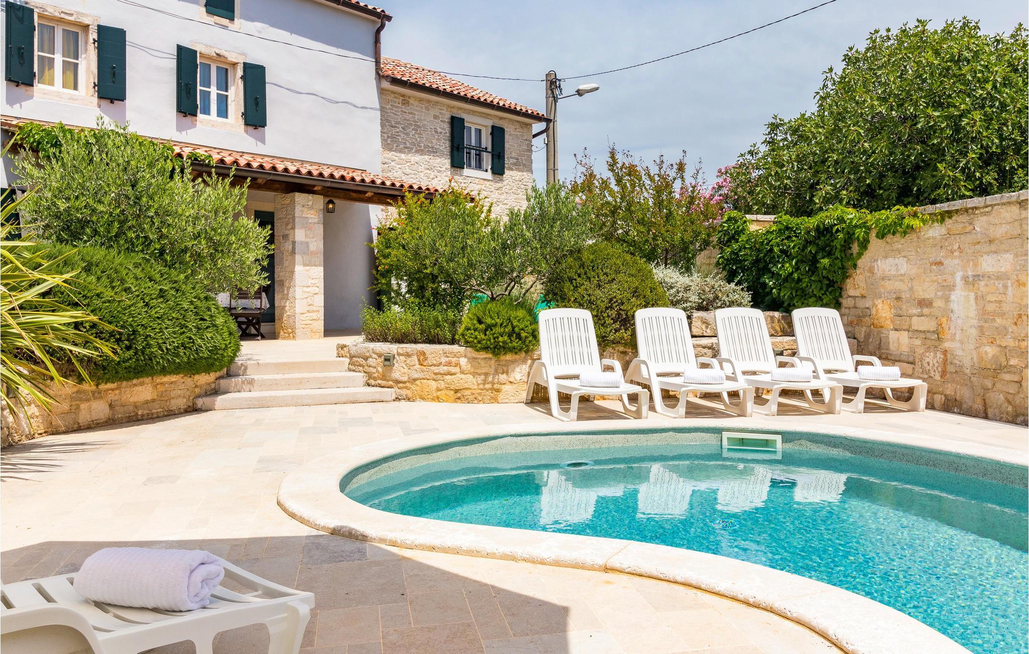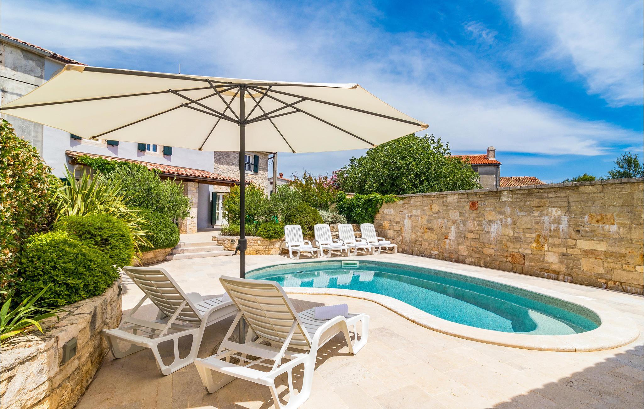 Dette skønne feriehus ligger i Liznjan, en lille by der ikke ligger langt fra den større by Pula. I stueplan er der opholdsområde med køkken og badeværelse, mens de tre soveværelser og et badeværelse ligger på første sal. Det fjerde soveværelser ligger i tagetagen, med hyggelige skrå vægge, hvor det laveste punkt i siden 120 cm højt. I dette feriedomicil er der mange legemuligheder for de yngste gæster. På den indhegnede grund er der en udendørs pool til rådighed der indbyder til vandsjov og svømmeture i de varme sommerdage. Tag på oplevelse i byen Medulin og besøg den smukke Naturpark Kap Kamenjak i Prematura. Fra Liznjan kan I tage en taxi-båd og besøge den lille ø Levan. Når I holder ferie her, venter der hele familien mange former for underholdning og desuden er her frit valg mellem utallige dejlige strande.