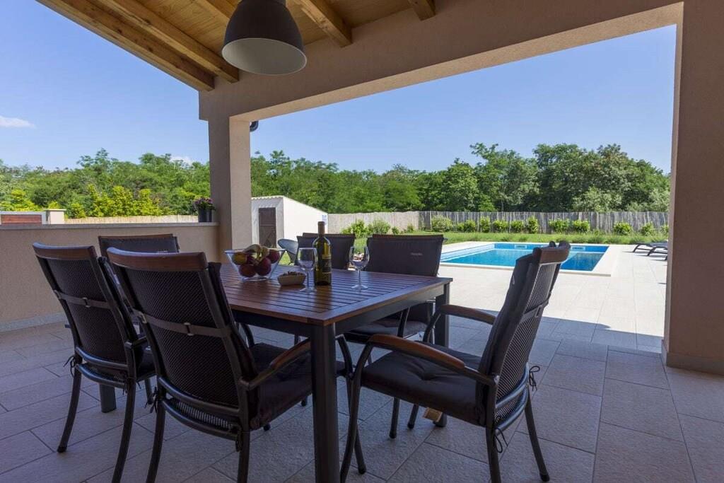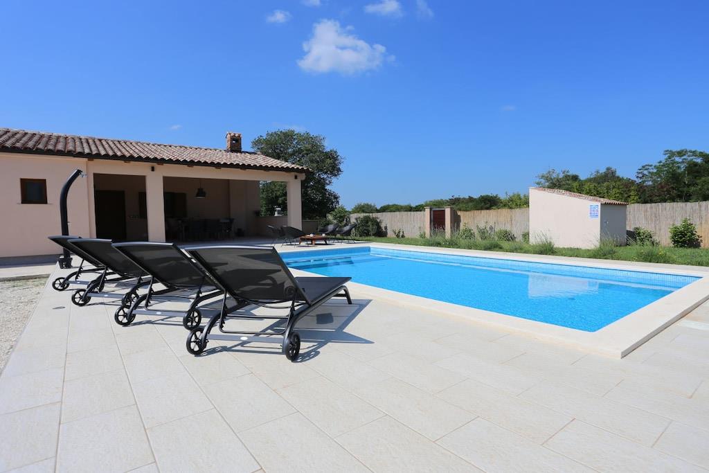 Beliggende i landsbyen Loborika nær byerne Pula og Medulin, tilbyder dette hus komfortabel privat indkvartering i en rolig oase på landet sammen med en udendørs pool. Du kan også bruge den udendørs bruser, samt legetøj til børn. Egenskaber Fritliggende hus bestående af køkken, stor stue, to badeværelser og to badeværelser. I stuen er der en stor sofa, der kan laves om til en seng til to personer. En overdækket terrasse med udsigt over den store 8x4 meter store pool er et fantastisk sted at slappe af. Grunden er på 1000 kvadratmeter og er indhegnet udefra. Karakteristiske træk Roligt sted uden naboer. Ideelt integreret i naturen. Anti-myggestativer på vinduerne. Syngende fugle om morgenen. Nærhed Græs og oliven