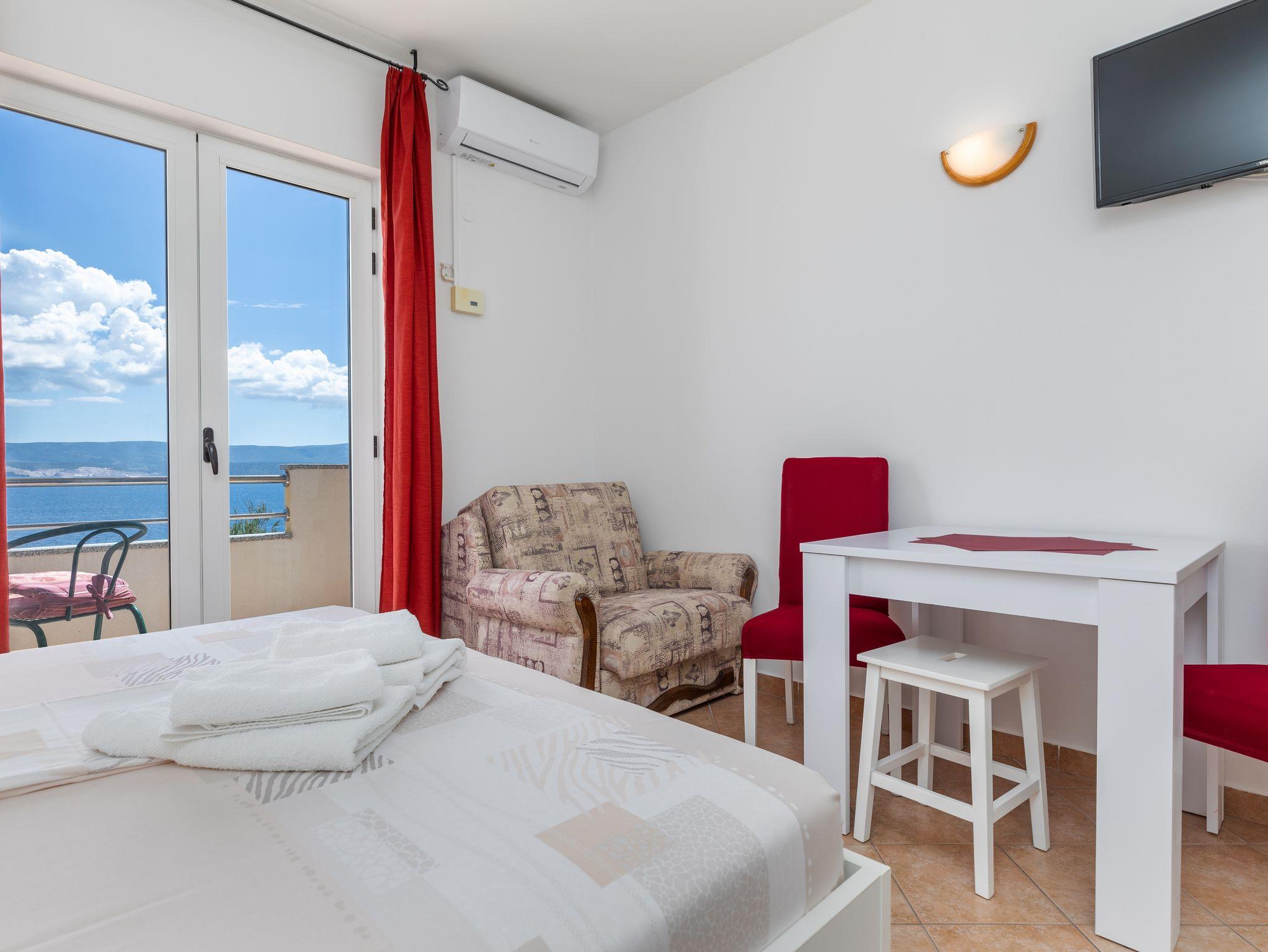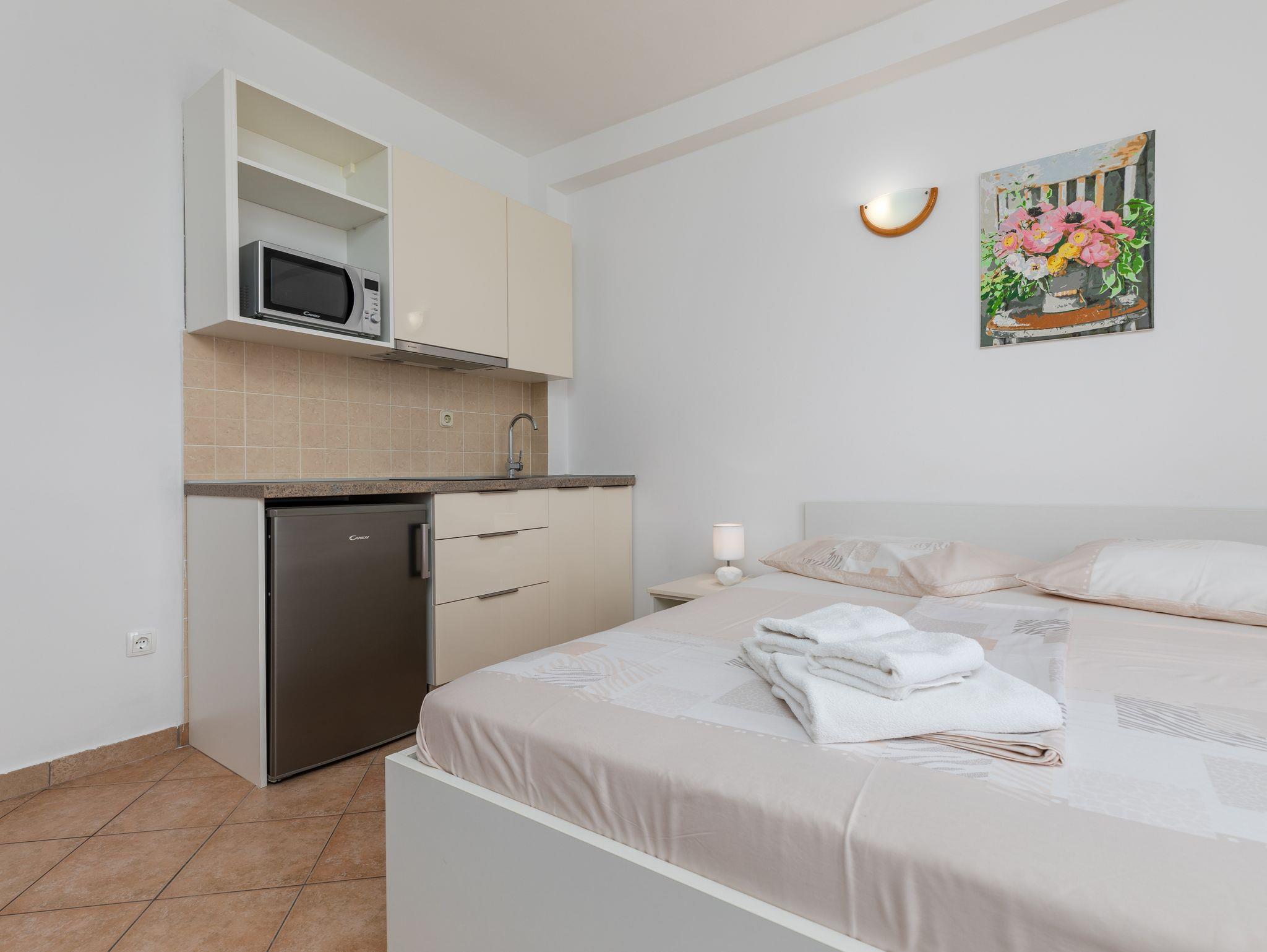 Studio bietet Platz für 2 Gäste. Die Betten sind in Schlafzimmern, die es 1 gibt, innerhalb einer Gesamtfläche von 24m2, angeordnet. Die Gäste haben einen eigenen Balkon zur Verfügung, auf der sie in warmen Sommernächten genießen können. Das Studio-Apartment bietet Meerblick. Es ist erlaubt, Speisen auf dem Gemeinschafts-Grill vorzubereiten. In der Unterkunftseinheit besteht die Möglichkeit des Mitbringens von Haustieren gegen Aufpreis. IM PREIS INBEGRIFFEN: Kurtaxe, Endreinigung, Klimatisierung, Parkplatz, Internet, Wäschewaschen, Bootsanlegeplatz, Kinderbett, Bügeleisen, Bügelbrett, tragbarer Grill. UNVERBINDLICHE ZUSÄTZLICHE KOSTEN: Haustiere (15,00 € pro Nacht). Die Verfügbarkeit zusätzlicher Dienstleistungen in Ihrem reservierten Termin und die Preise derselben (falls nicht aufgeführt) müssen im Voraus überprüft werden. Zusätzliche Dienstleistungen die in der Zahlungsaufforderung nicht aufgeführt sind werden direkt beim Vermieter bezahlt, angenommen der Gast nutzt auch diese. Ermäßigung auf den Grundpreis: Gratistag 21=19 (bei einem Aufenthalt von 21 Tagen oder mehr erhalten Sie 2 Gratistage für den Aufenthalt bis 31.12.26).