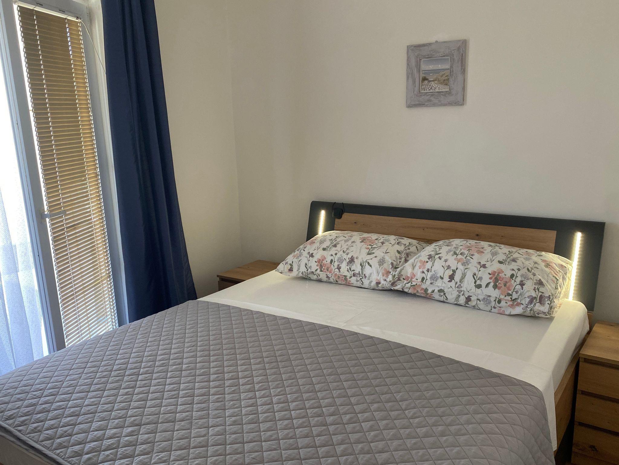 Ferienwohnung bietet Platz für 6 Gäste. Die Betten sind in Schlafzimmern, die es 3 gibt, innerhalb einer Gesamtfläche von 61m2, angeordnet. Die Gäste haben eine eigene Terrasse zur Verfügung, auf der sie in warmen Sommernächten genießen können. Es ist erlaubt, Speisen auf dem Gemeinschafts-Grill vorzubereiten. IM PREIS INBEGRIFFEN: Kurtaxe, Endreinigung, Klimatisierung, Parkplatz, Internet, Kinderbett, Föhn. VERBINDLICHE ZUSÄTZLICHE KOSTEN: Aufzahlung für Kurzaufenthalte (prozentualer Zuschlag pro Nächtigungsanzahl: 30% - 1, 20% - 2, 10% - 3). Die Verfügbarkeit zusätzlicher Dienstleistungen in Ihrem reservierten Termin und die Preise derselben (falls nicht aufgeführt) müssen im Voraus überprüft werden. Zusätzliche Dienstleistungen die in der Zahlungsaufforderung nicht aufgeführt sind werden direkt beim Vermieter bezahlt, angenommen der Gast nutzt auch diese.