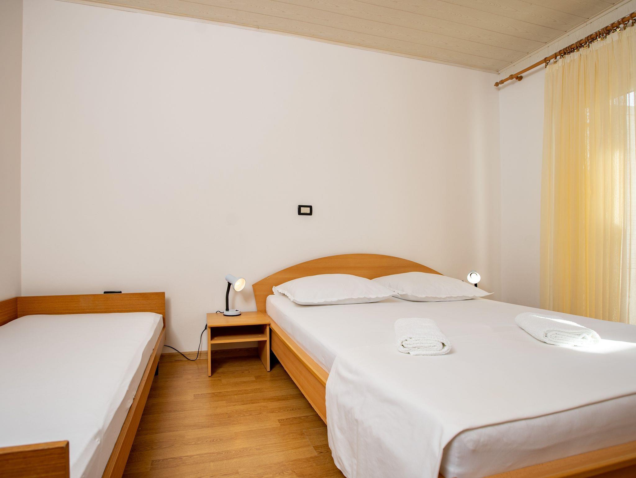 Ferienwohnung bietet Platz für 4 Gäste. Die Betten sind in Schlafzimmern, die es 2 gibt, innerhalb einer Gesamtfläche von 51m2, angeordnet. Die Gäste haben einen eigenen Balkon zur Verfügung, auf der sie in warmen Sommernächten genießen können. Es ist erlaubt, Speisen auf dem Gemeinschafts-Grill vorzubereiten. IM PREIS INBEGRIFFEN: Kurtaxe, Endreinigung, Klimatisierung, Parkplatz, Internet. VERBINDLICHE ZUSÄTZLICHE KOSTEN: Aufzahlung für Kurzaufenthalte (prozentualer Zuschlag pro Nächtigungsanzahl: 30% - 1, 20% - 2, 10% - 3). UNVERBINDLICHE ZUSÄTZLICHE KOSTEN: Zusatzbett (10,00 € pro Nacht). Die Verfügbarkeit zusätzlicher Dienstleistungen in Ihrem reservierten Termin und die Preise derselben (falls nicht aufgeführt) müssen im Voraus überprüft werden. Zusätzliche Dienstleistungen die in der Zahlungsaufforderung nicht aufgeführt sind werden direkt beim Vermieter bezahlt, angenommen der Gast nutzt auch diese. Ermäßigung auf den Grundpreis: Gratistag 14=13 (bei einem Aufenthalt von 14 Tagen oder mehr erhalten Sie einen Gratistag für den Aufenthalt bis 31.12.26).