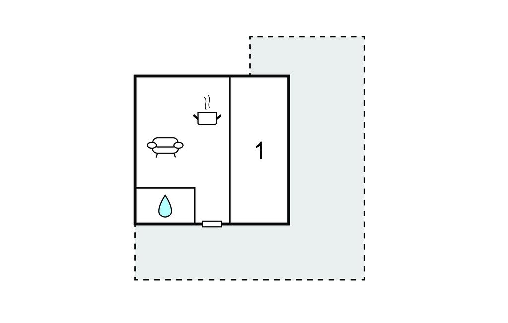 Opholdsstue/køkken - 1 Soveplads. (Sofa, madras eller lignende).