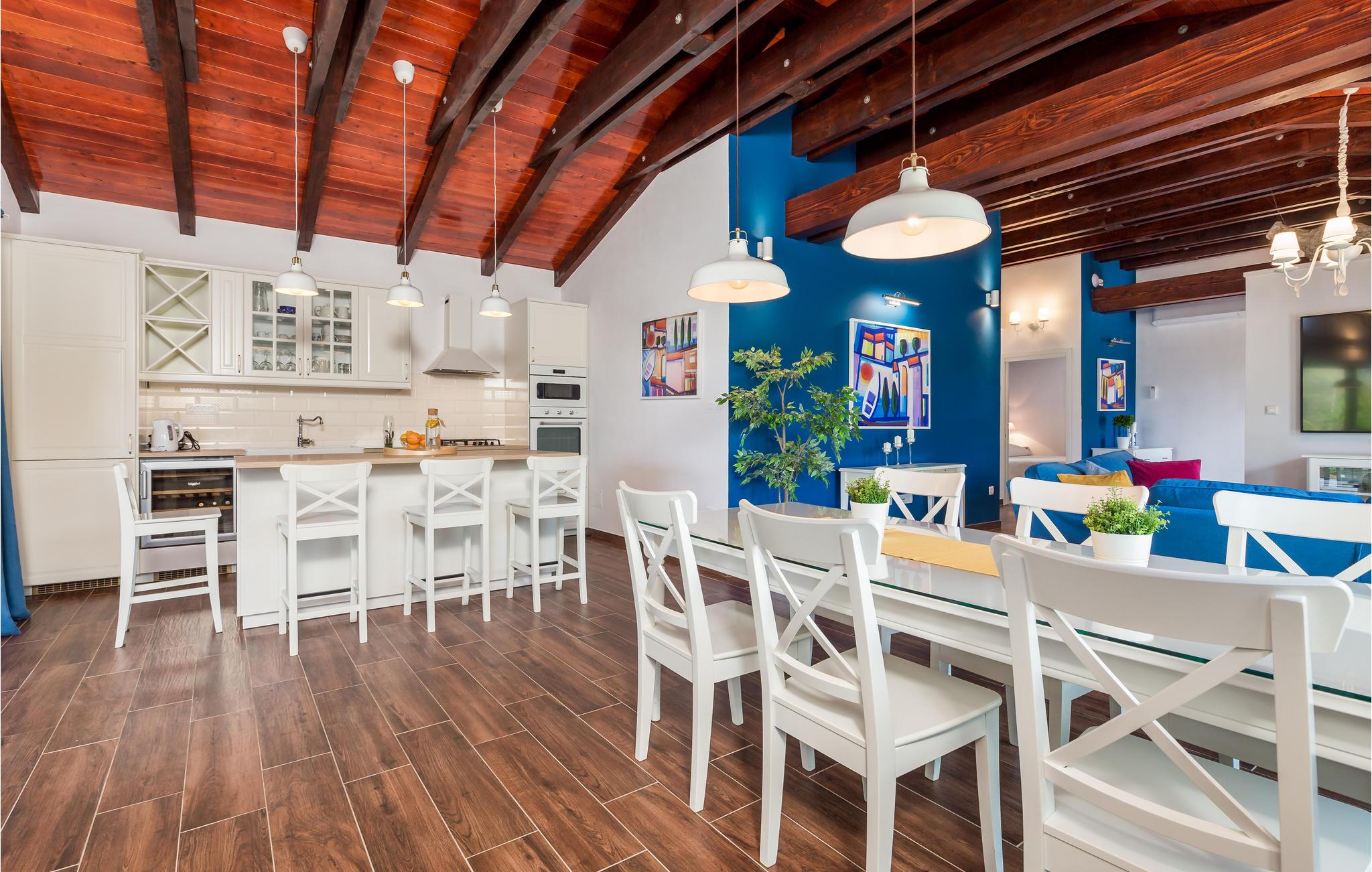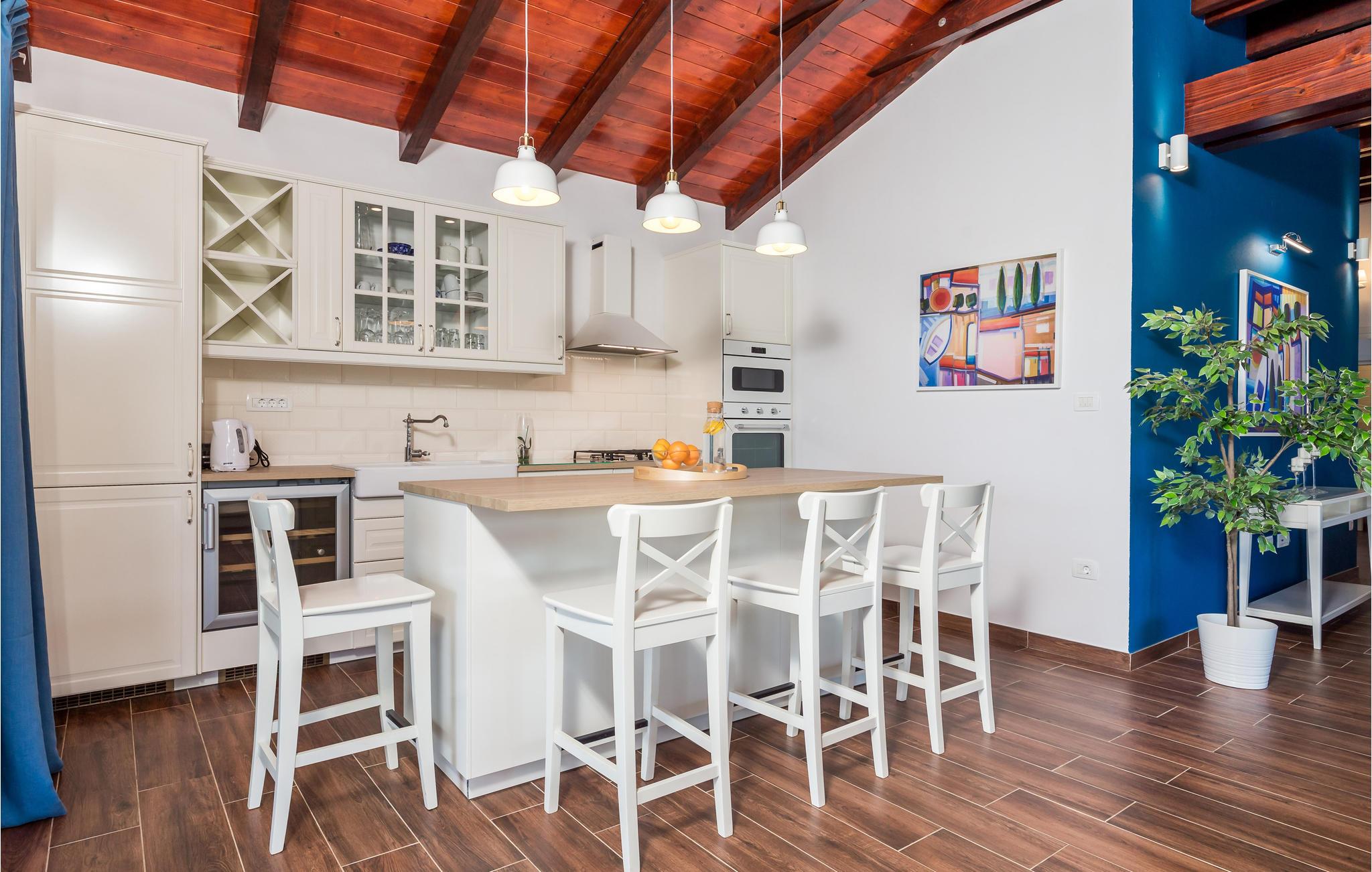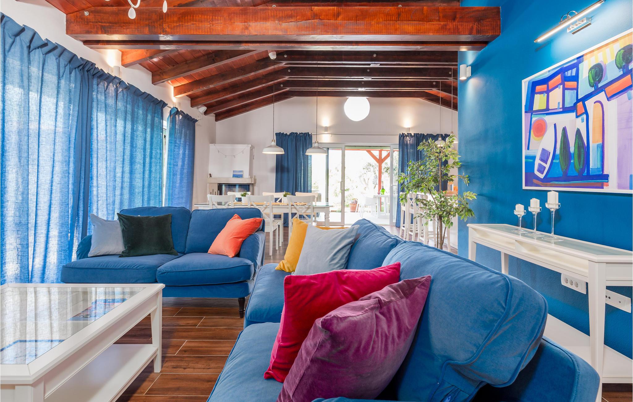 Du bor i et charmerende feriehus nær havet, hvorfra du kun adskilles af en lokal vej. Huset er smukt og moderne indrettet med en masse kærlighed og vil garantere dig en afslappende ferie. Det består af et køkken med spiseplads, stue, tre soveværelser, tre badeværelser og et ekstra toilet.