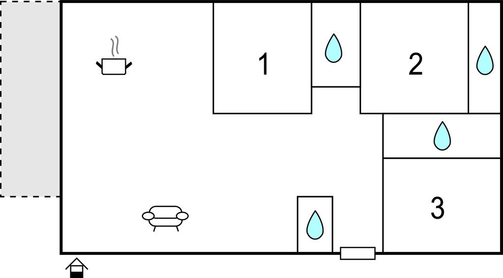 Opholdsstue/køkken 60m2 - 1 Soveplads. (Sofa, madras eller lignende).
