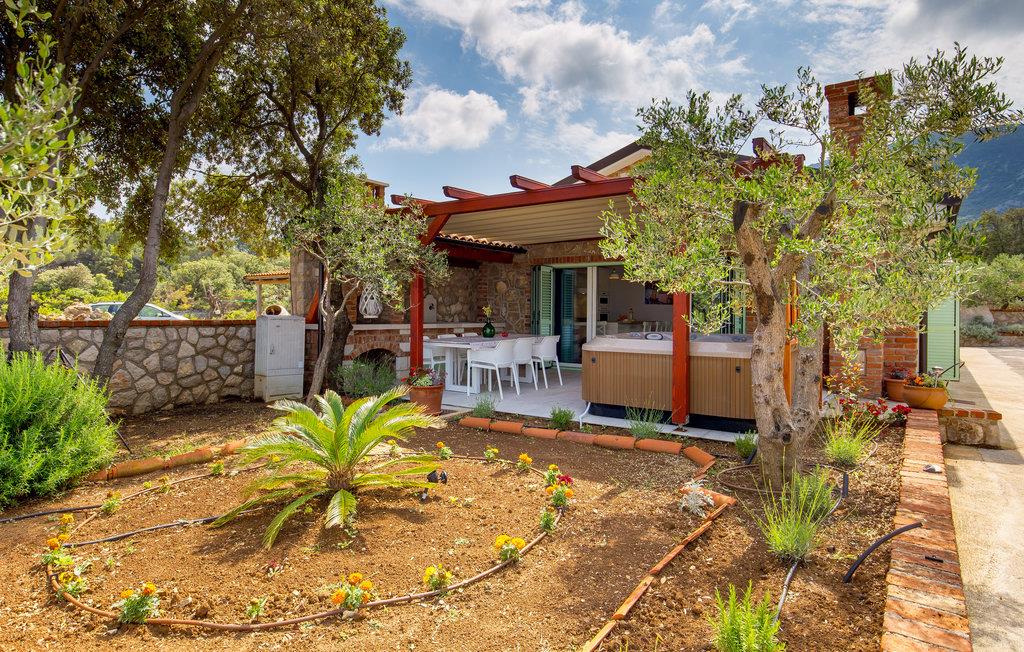 I den velplejede have er der et sommerkøkken og en udendørs terrasse, hvor du kan slappe af om dagen eller om aftenen, mens du forbereder dine yndlingsspecialiteter på grillen.