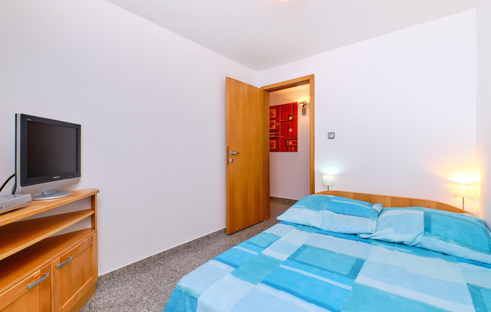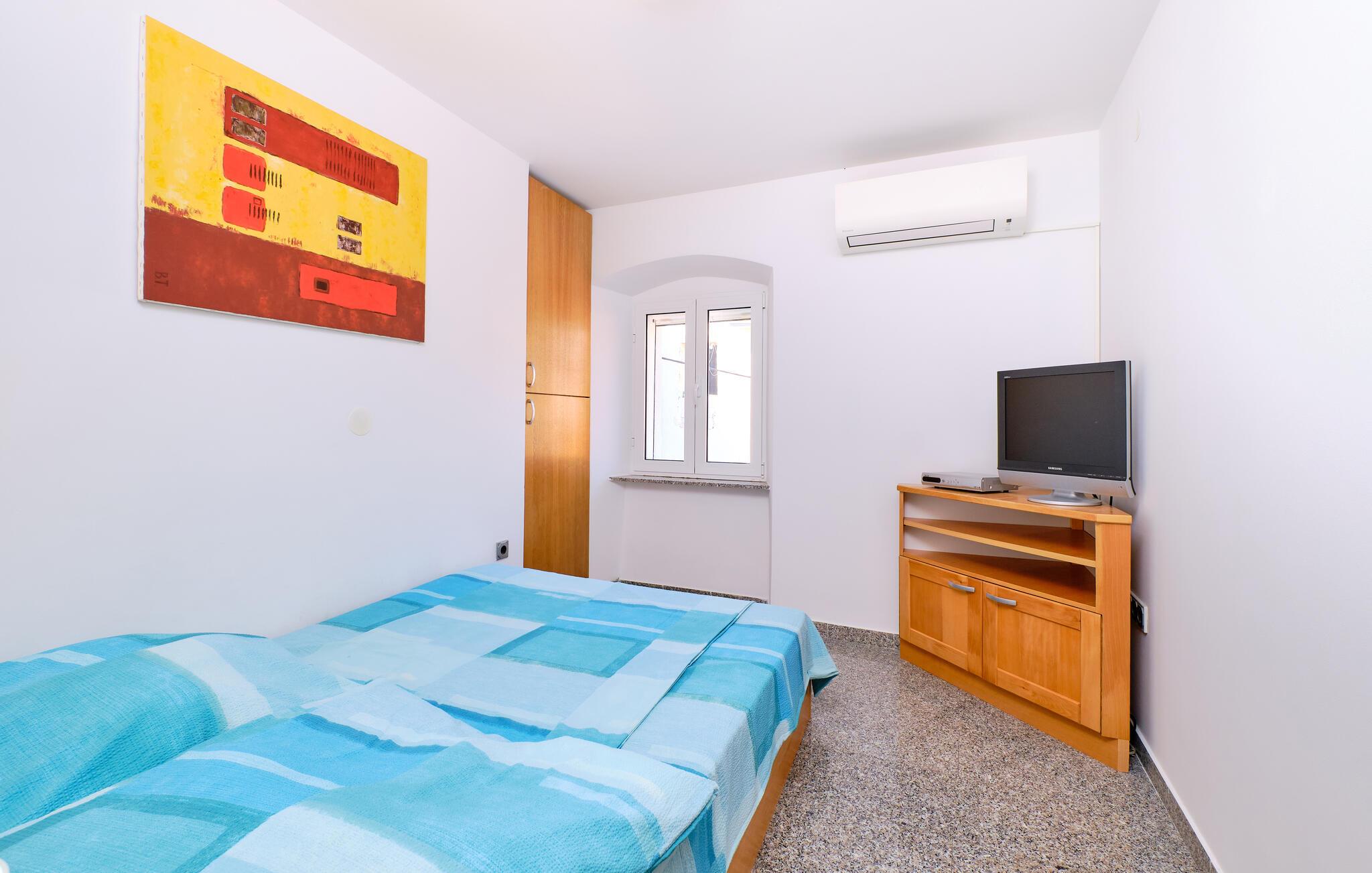Tag familien under armen og rejs til Kroatien, hvor I i dette fine toetagershus får de ideelle rammer for årets ø-ferie på Losinj. Indretningen fremtræder flot og rustikt med livlige farveskalaer og pæn kunst på væggene, der giver det indre et hjemligt udtryk og gør det nemt at slappe af med det samme, I stiller kufferterne. Huset er veludstyret med alle de faciliteter, I behøver for at kræse om livretterne i køkkenet, nyde måltiderne ved spisebordet og dække op til hyggelige filmaftener efter dagens muntre leg.