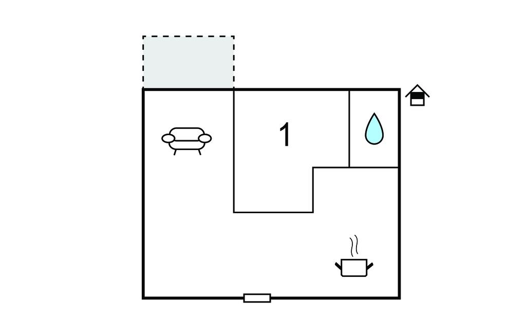 Opholdsstue/køkken 20m2 - 1 Soveplads. (Sofa, madras eller lignende).
