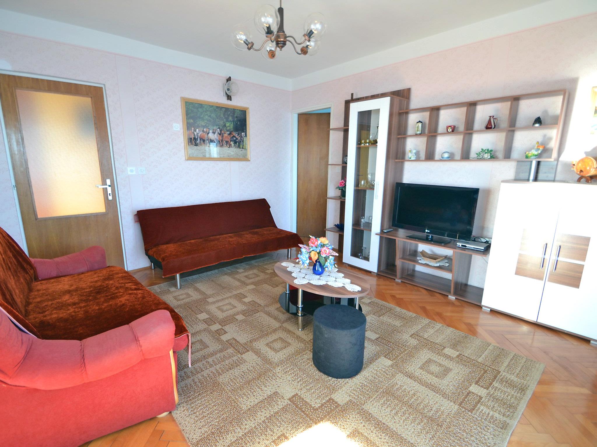 4-room apartment 90 m2 on 1st floor, south-east facing position. Living/dining room with satellite TV (flat screen). Exit to the balcony. 1 room with 2 beds (80 cm, length 200 cm). 2 rooms, each room with 1 double bed (2 x 80 cm, length 190 cm). Open kitchen (4 hot plates, oven, dishwasher, freezer). Bath/bidet/WC. Electric heating (extra). Balcony 10 m2. Balcony furniture. Marvellous panoramic view of the sea and the countryside. Facilities: washing machine. Internet (WiFi, free). Please note: private entrance, fire extinguisher.