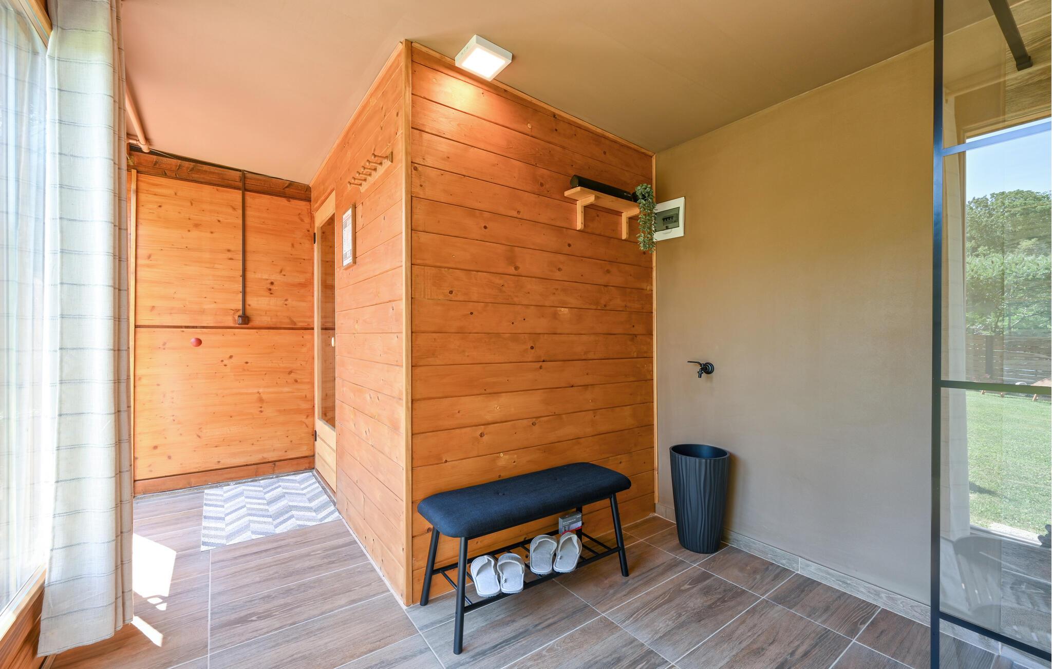 Hold en uforglemmelig ferie i dette idylliske feriehus nær Ludbreg, det såkaldte verdenscentrum. Denne charmerende ejendom kan rumme en familie og har en hyggelig overdækket terrasse og et separat spaområde. Her kan I slappe helt af og nyde freden, roen og omgivelserne. Feriehusets spaområde på den overdækkede udendørs terrasse er et højdepunkt for alle, der søger afslapning. Lad jeres sanser blive forkælet og kom helt ned i tempo.