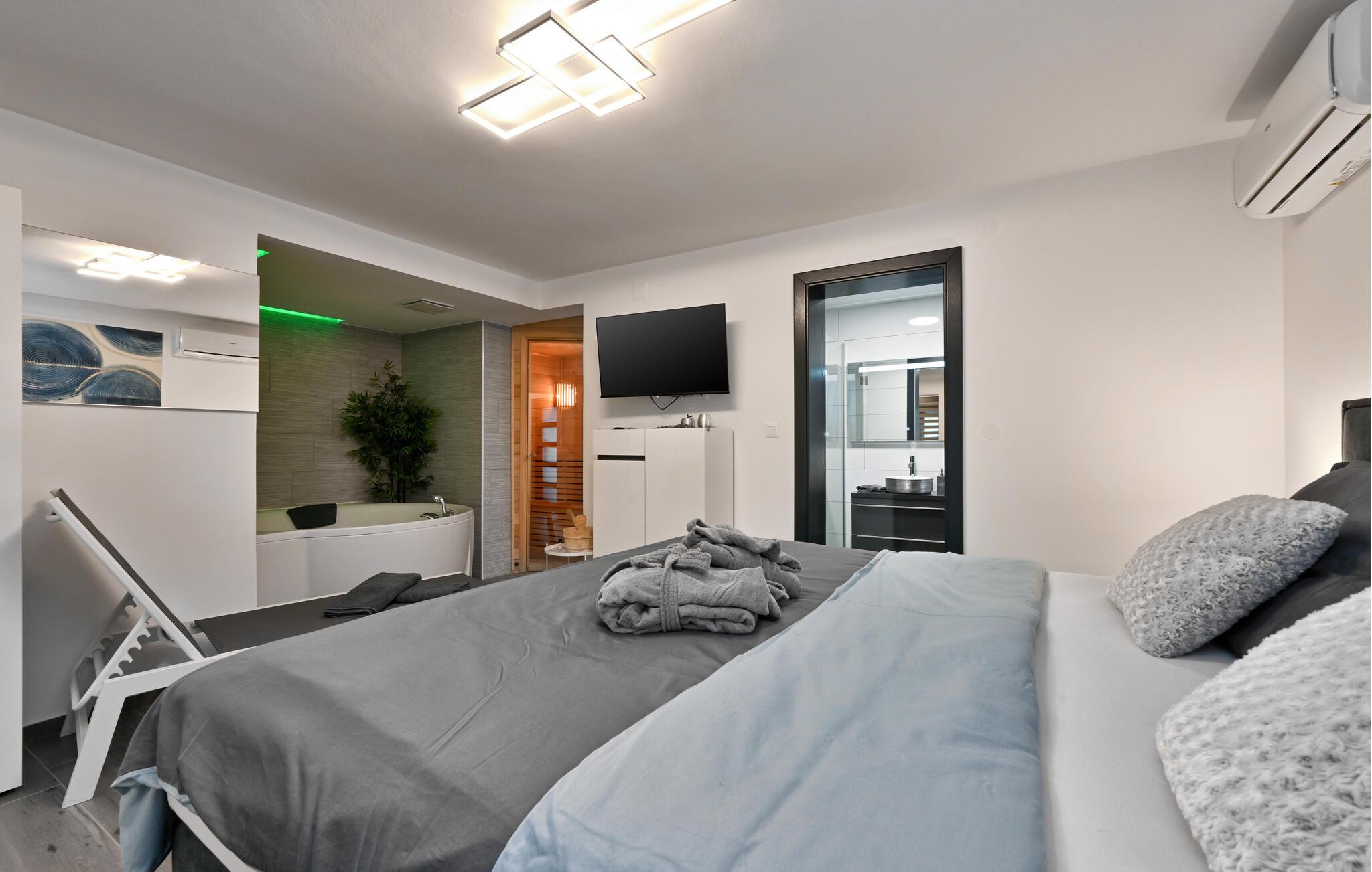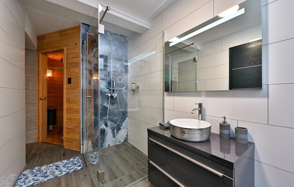 Føl jer hjemme i dette moderne, elegant indrettede feriehus, der kan rumme op til 12 gæster. Glæd jer til at lave mad sammen i det fuldt udstyrede køkken og nyd selskabelige aftener i det hyggelige kælderrum, som er indrettet til at hygge og samvær. Forkæl jer selv med afslapning i saunaen eller se Netflix fra boblebadet.