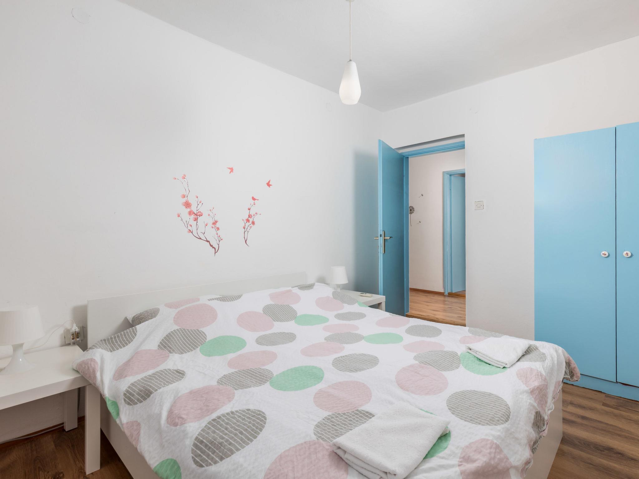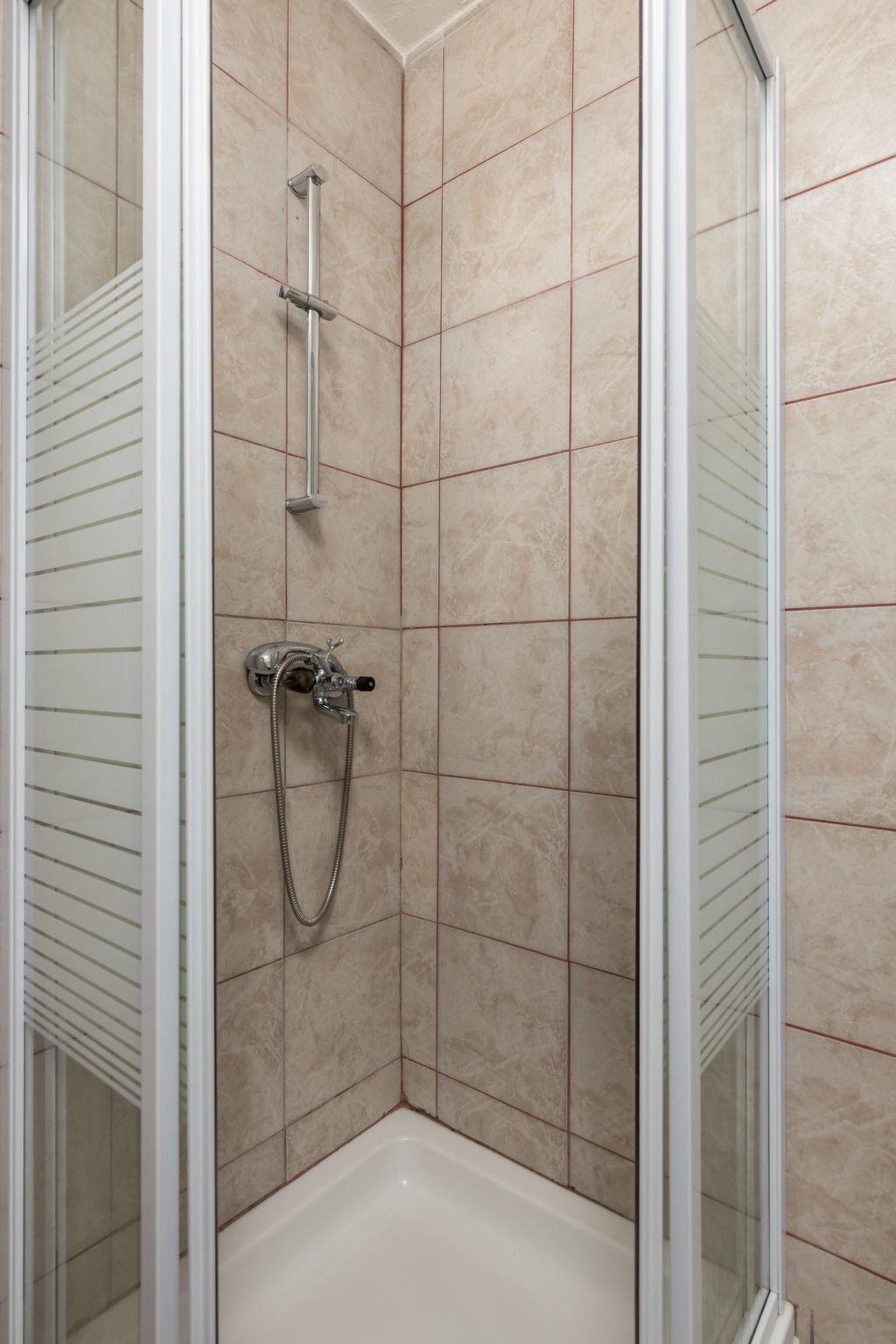 8-room house 200 m2 on 2 levels. Comfortable furnishings: living/dining room 50 m2 with digital TV and air conditioning. Exit to the terrace, to the swimming pool. 2 rooms, each room with 1 double bed (160 cm, length 200 cm), shower/WC and air conditioning. Open kitchen (oven, dishwasher, Gas stove, 4 gas rings, microwave, freezer, electric coffee machine). Shower/WC. Upper floor: (exterior staircase) dining room. Exit to the balcony. 4 rooms, each room with 1 double bed (160 cm, length 200 cm), air conditioning. Small, open kitchen). 2 showers/WC. No heating option. Balcony 5 m2, south-west facing position, large terrace 30 m2, roofed. Terrace furniture, balcony furniture, barbecue (portable), deck chairs (12). Marvellous view of the sea. Facilities: washing machine. Internet (WiFi, free). Please note: maximum 1 pet/ dog allowed. TV only HR. Fire extinguisher.