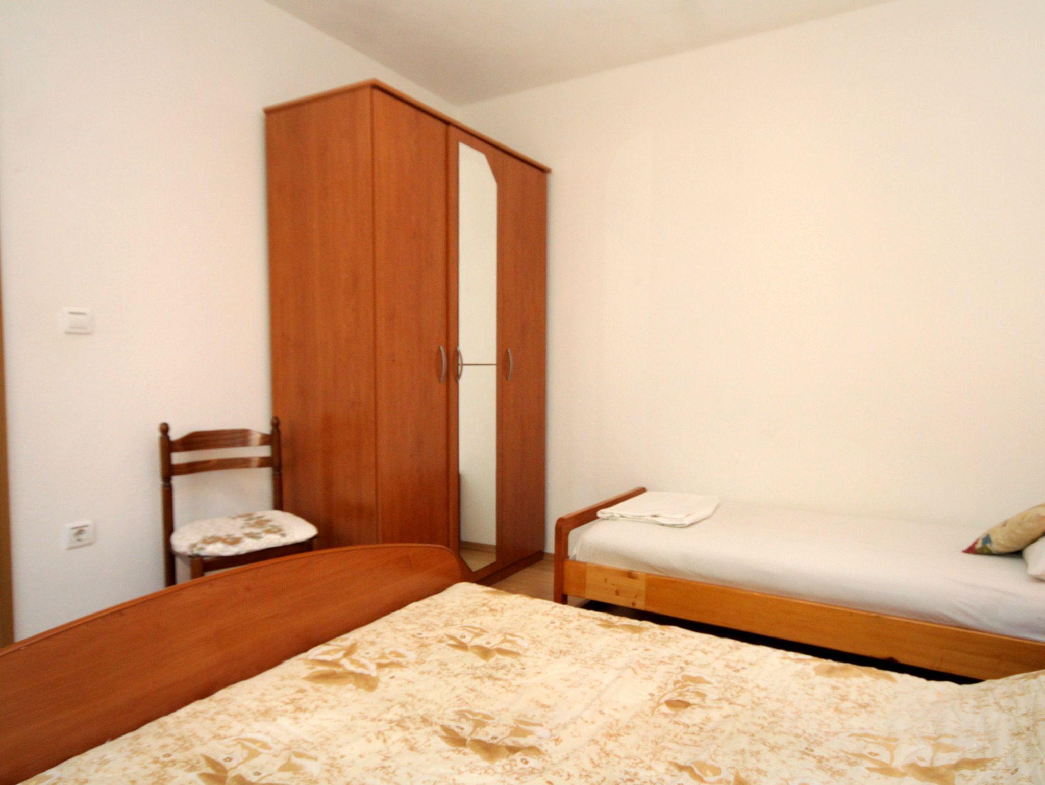 Ferienwohnung bietet Platz für 5 Gäste. Die Betten sind in Schlafzimmern, die es 2 gibt, innerhalb einer Gesamtfläche von 73m2, angeordnet. Die Gäste haben eine eigene Terrasse zur Verfügung, auf der sie in warmen Sommernächten genießen können. Das Apartment bietet Meerblick. Es ist erlaubt, Speisen auf dem Gemeinschafts-Grill vorzubereiten. IM PREIS INBEGRIFFEN: Kurtaxe, Endreinigung, Klimatisierung, Parkplatz, Internet, Wäschewaschen, Kinderbett, Zusatzbett, Bügeleisen, Bügelbrett, Föhn. VERBINDLICHE ZUSÄTZLICHE KOSTEN: Aufzahlung für Kurzaufenthalte (prozentualer Zuschlag pro Nächtigungsanzahl: 30% - 1, 20% - 2, 10% - 3). Die Verfügbarkeit zusätzlicher Dienstleistungen in Ihrem reservierten Termin und die Preise derselben (falls nicht aufgeführt) müssen im Voraus überprüft werden. Zusätzliche Dienstleistungen die in der Zahlungsaufforderung nicht aufgeführt sind werden direkt beim Vermieter bezahlt, angenommen der Gast nutzt auch diese. Ermäßigung auf den Grundpreis: Gratistag 14=13 (bei einem Aufenthalt von 14 Tagen oder mehr erhalten Sie einen Gratistag für den Aufenthalt bis 31.12.26).