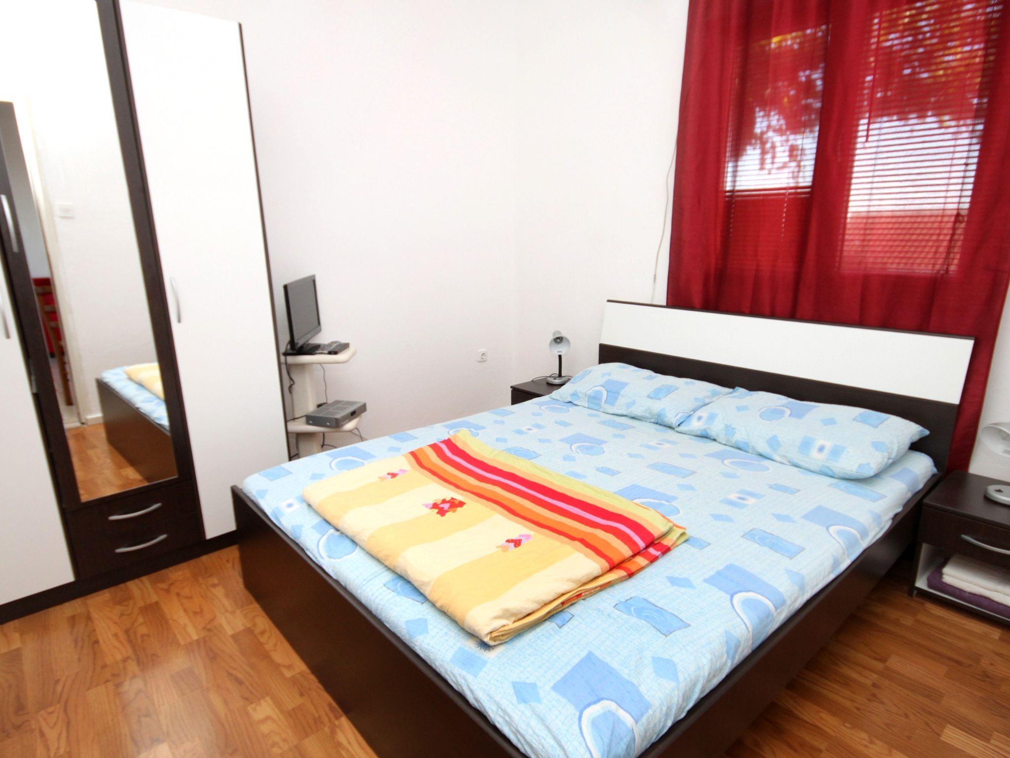 Ferienwohnung bietet Platz für 5 Gäste. Die Betten sind in Schlafzimmern, die es 2 gibt, und in Esszimmer, innerhalb einer Gesamtfläche von 32m2, angeordnet. Die Gäste haben eine eigene Terrasse zur Verfügung, auf der sie in warmen Sommernächten genießen können. Das Apartment bietet Meerblick. Es ist erlaubt, Speisen auf dem Gemeinschafts-Grill vorzubereiten. In der Unterkunftseinheit besteht die Möglichkeit des Mitbringens von Haustieren, und die Dienstleistung ist im Preis der Unterkunft enthalten. IM PREIS INBEGRIFFEN: Kurtaxe, Endreinigung, Klimatisierung, Parkplatz, Internet, Haustiere, Bügeleisen, Bügelbrett, Föhn. VERBINDLICHE ZUSÄTZLICHE KOSTEN: Aufzahlung für Kurzaufenthalte (prozentualer Zuschlag pro Nächtigungsanzahl: 30% - 1, 20% - 2, 10% - 3). Die Verfügbarkeit zusätzlicher Dienstleistungen in Ihrem reservierten Termin und die Preise derselben (falls nicht aufgeführt) müssen im Voraus überprüft werden. Zusätzliche Dienstleistungen die in der Zahlungsaufforderung nicht aufgeführt sind werden direkt beim Vermieter bezahlt, angenommen der Gast nutzt auch diese.