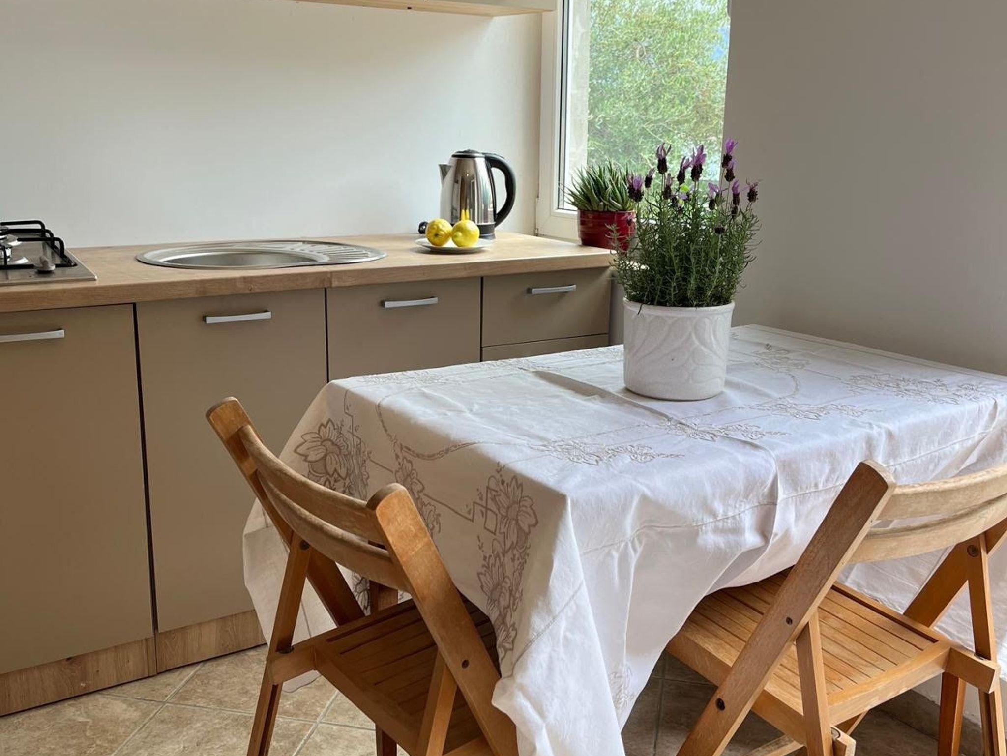 Studio bietet Platz für 2 Gäste. Die Betten sind in Schlafzimmern, die es 1 gibt, innerhalb einer Gesamtfläche von 15m2, angeordnet. Die Gäste haben eine eigene Terrasse zur Verfügung, auf der sie in warmen Sommernächten genießen können. Das Studio-Apartment bietet Meerblick. IM PREIS INBEGRIFFEN: Kurtaxe, Endreinigung, Klimatisierung, Internet, Bügeleisen, Bügelbrett, Föhn. VERBINDLICHE ZUSÄTZLICHE KOSTEN: Aufzahlung für Kurzaufenthalte (prozentualer Zuschlag pro Nächtigungsanzahl: 30% - 1, 20% - 2, 10% - 3). UNVERBINDLICHE ZUSÄTZLICHE KOSTEN: Wäschewaschen (10,00 € Waschen). Die Verfügbarkeit zusätzlicher Dienstleistungen in Ihrem reservierten Termin und die Preise derselben (falls nicht aufgeführt) müssen im Voraus überprüft werden. Zusätzliche Dienstleistungen die in der Zahlungsaufforderung nicht aufgeführt sind werden direkt beim Vermieter bezahlt, angenommen der Gast nutzt auch diese.