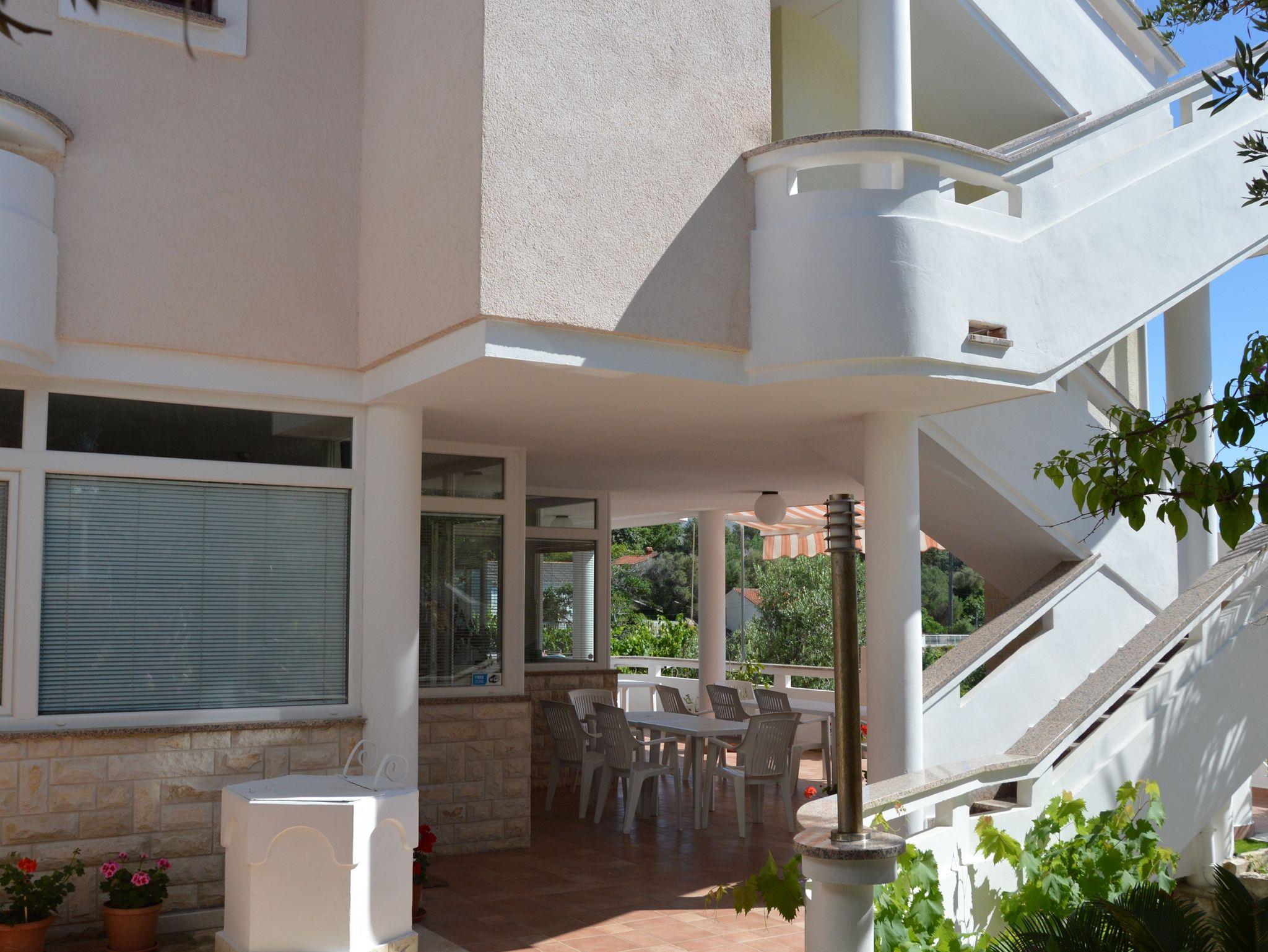 Ferienwohnung bietet Platz für 4 Gäste. Die Betten sind in Schlafzimmern, die es 1 gibt, und in Esszimmer, innerhalb einer Gesamtfläche von 31m2, angeordnet. Die Gäste haben eine eigene Terrasse zur Verfügung, auf der sie in warmen Sommernächten genießen können. Das Apartment bietet Meerblick. Es ist erlaubt, Speisen auf dem Gemeinschafts-Grill vorzubereiten. In der Unterkunftseinheit besteht die Möglichkeit des Mitbringens von Haustieren gegen Aufpreis. IM PREIS INBEGRIFFEN: Kurtaxe, Endreinigung, Parkplatz, Garage, Internet, Wäschewaschen, Bügeleisen, Bügelbrett, Föhn, Sonnenschirm. VERBINDLICHE ZUSÄTZLICHE KOSTEN: Aufzahlung für Kurzaufenthalte (prozentualer Zuschlag pro Nächtigungsanzahl: 30% - 1, 20% - 2, 10% - 3). UNVERBINDLICHE ZUSÄTZLICHE KOSTEN: Klimatisierung (5,00 € pro Nacht), Bootsanlegeplatz (20,00 € pro Nacht), Haustiere (10,00 € pro Nacht). Die Verfügbarkeit zusätzlicher Dienstleistungen in Ihrem reservierten Termin und die Preise derselben (falls nicht aufgeführt) müssen im Voraus überprüft werden. Zusätzliche Dienstleistungen die in der Zahlungsaufforderung nicht aufgeführt sind werden direkt beim Vermieter bezahlt, angenommen der Gast nutzt auch diese. Ermäßigung auf den Grundpreis: Gratistag 14=13 (bei einem Aufenthalt von 14 Tagen oder mehr erhalten Sie einen Gratistag für den Aufenthalt bis 31.12.26).
