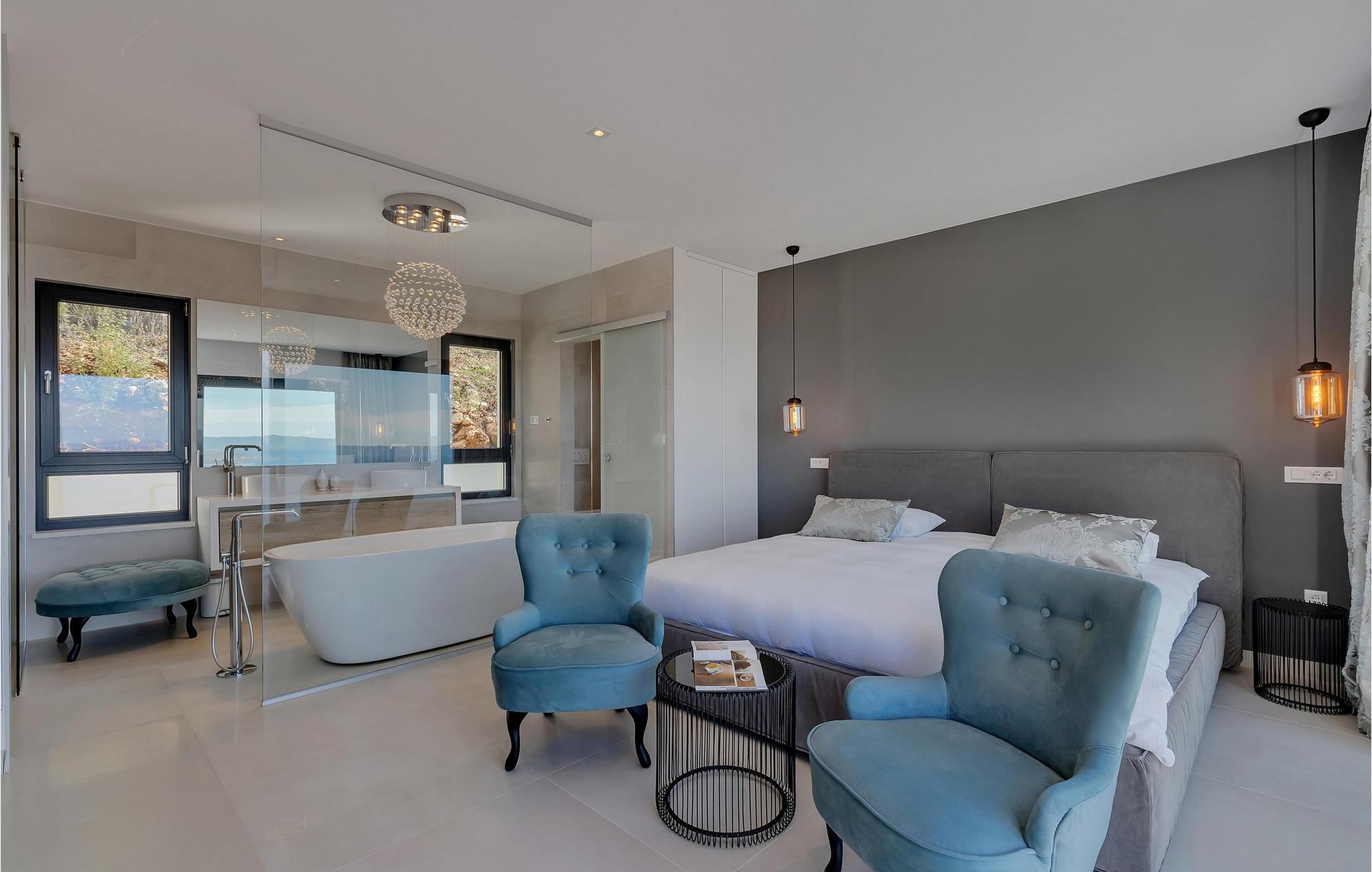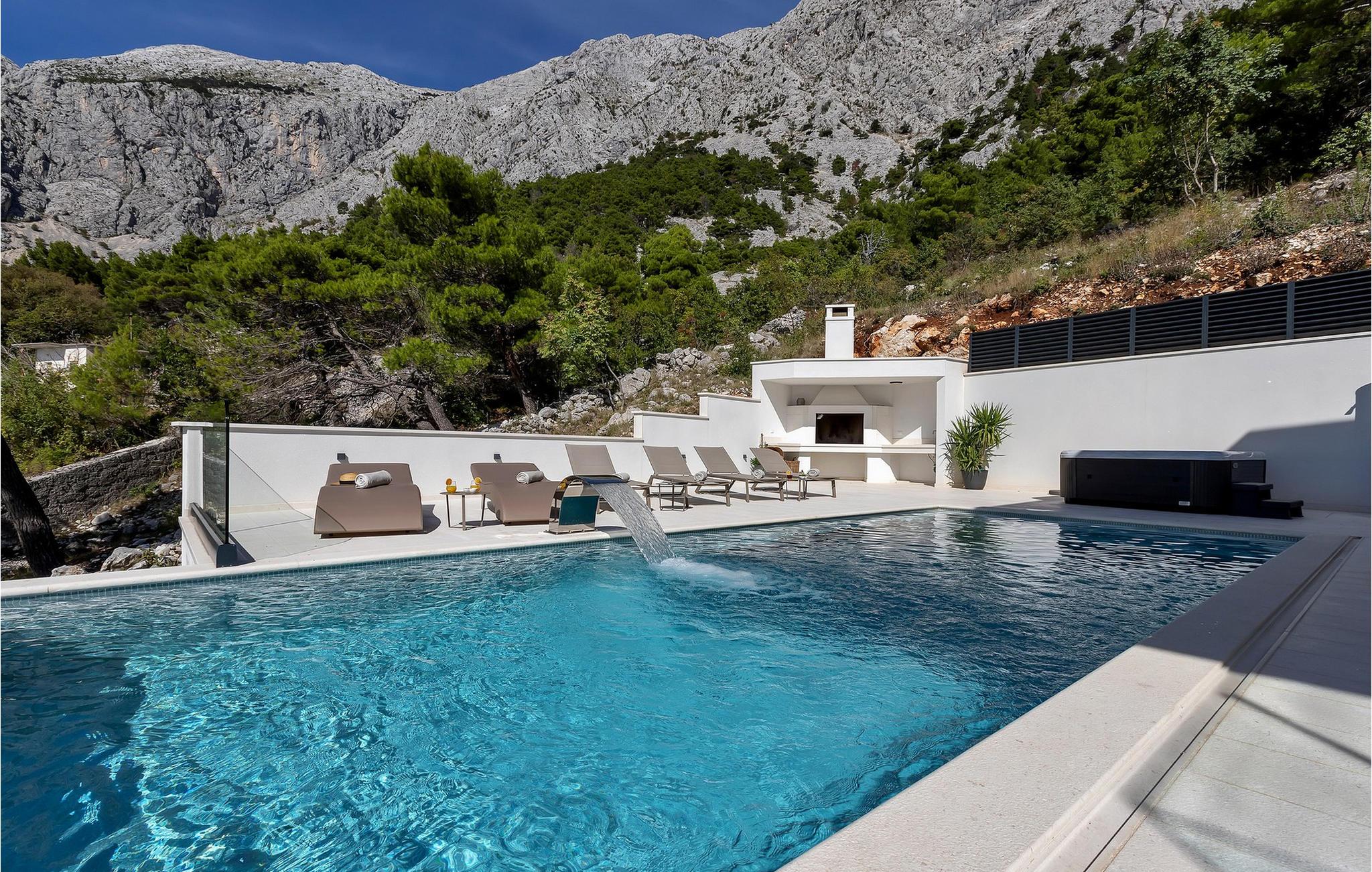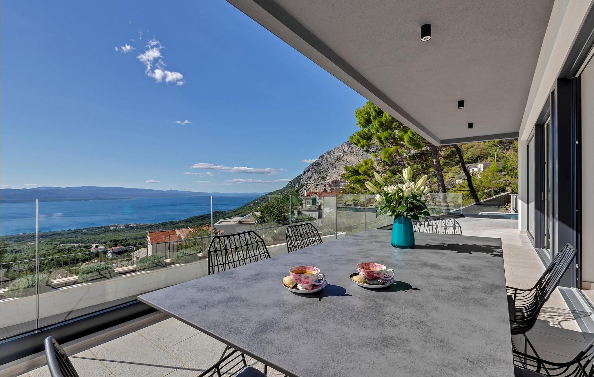 Tilbring en førsteklasses ferie i dette luksuriøse feriehus med pool og panoramaudsigt. Villa Sheila er smukt beliggende mellem klipper og træer i den lille landsby Bast. Huset er noget særligt med sin harmoniske kombination af modernitet og komfort. Lyse værelser, komfortable sofaer og stilfulde indretningsløsninger skaber en beroligende elegant atmosfære. Nyd en fantastisk havudsigt fra alle værelser. Det, der gør denne smukke villa speciel, er det store antal separate opholdsområder til afslapning eller socialisering med familie og venner. snup en frisk dukkert i den elegante pool eller nyd det endeløse blå hav, mens I slapper af på en af de behagelige liggestole. Om aftenen forvandles terrassen til et magisk sted: Skænk jer et glas vin, og se solen bade himlen i gyldne og lilla nuancer. Afslut dagen med at slappe af i hyggeligt selskab under stjernehimlen med et fælles måltid og historiefortælling. Et landskab fuld af mangfoldighed og skønhed åbner sig omkring Villa Sheila. Udforsk Biokovo Naturpark med dens duftende fyrreskove, naturskønne vandrestier og betagende udsigtspunkter højt over kysten. Slap af på den vidtstrakte Oseka-strand eller lad jer fortrylle af de uforglemmelige strande i Brela med deres krystalklare vand. I Makarska venter en livlig gammel bydel jer med charmerende gyder og middelhavsmarkeder samt stemningsfulde restauranter ved havet.