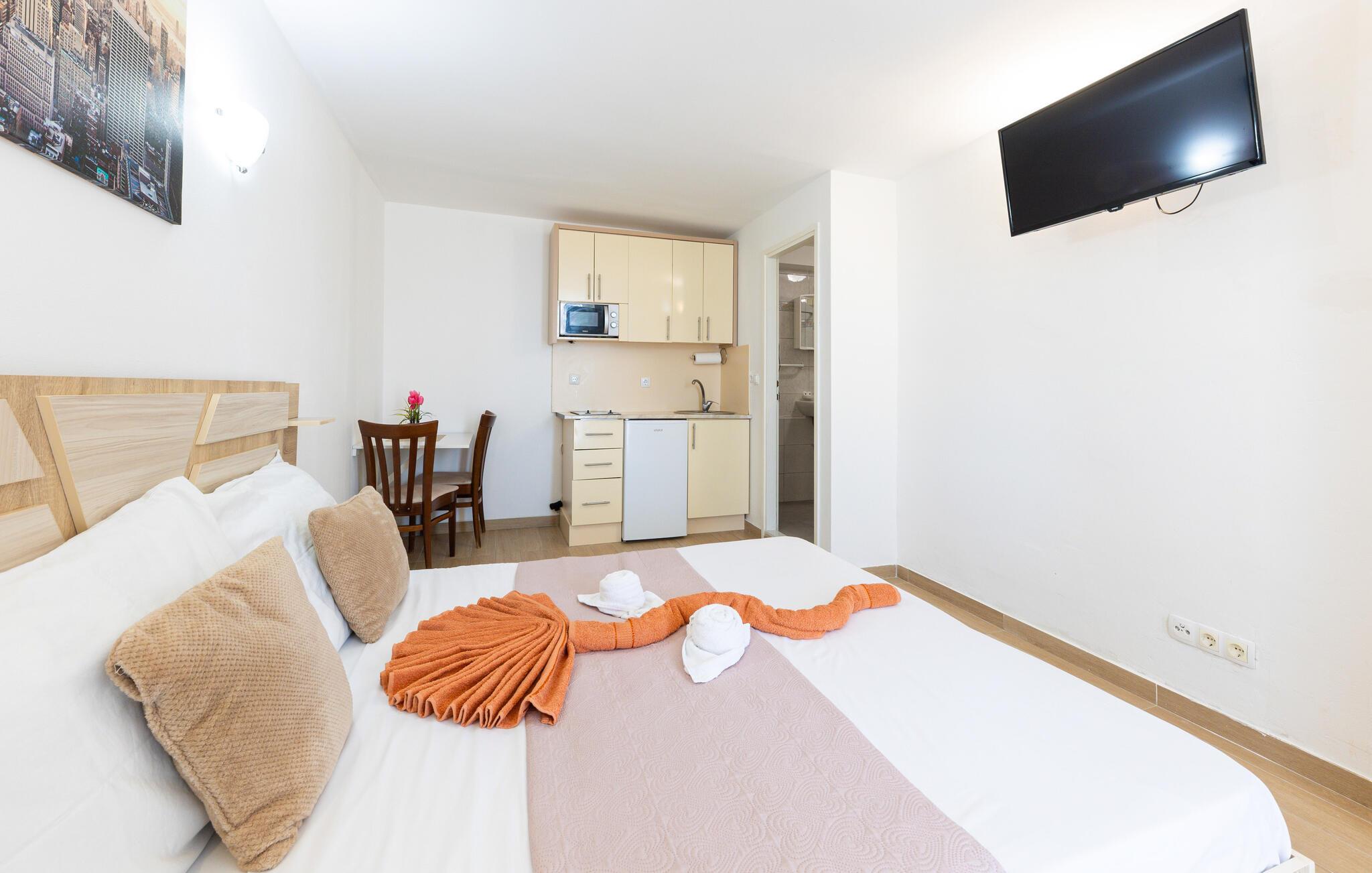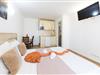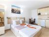 Der er kun få skridt fra denne luftige ferielejlighed til en smuk stenstrand, hvor I og jeres partner kan lægge hverdagen bag jer. Tryl jeres måltider frem i det praktiske tekøkken og planlæg jeres aktiviteter ved det indbydende spisebord. Efter mange solskinstimer kan I forkæle jer selv med en afslappende siesta og afslutte dagen med en god bog eller et brætspil.