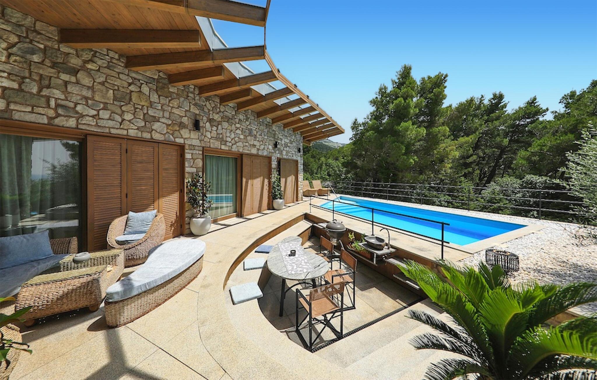 Dette charmerende hus byder på en god beliggenhed og en fantastisk udsigt over Adriaterhavskysten og den imponerende natur. Indenfor venter jer en kærligt indrettet oase med moderne faciliteter. De lyse, indbydende rum og indretningen, der emmer af høj kvalitet, sørger for en komfortabel ferietid.