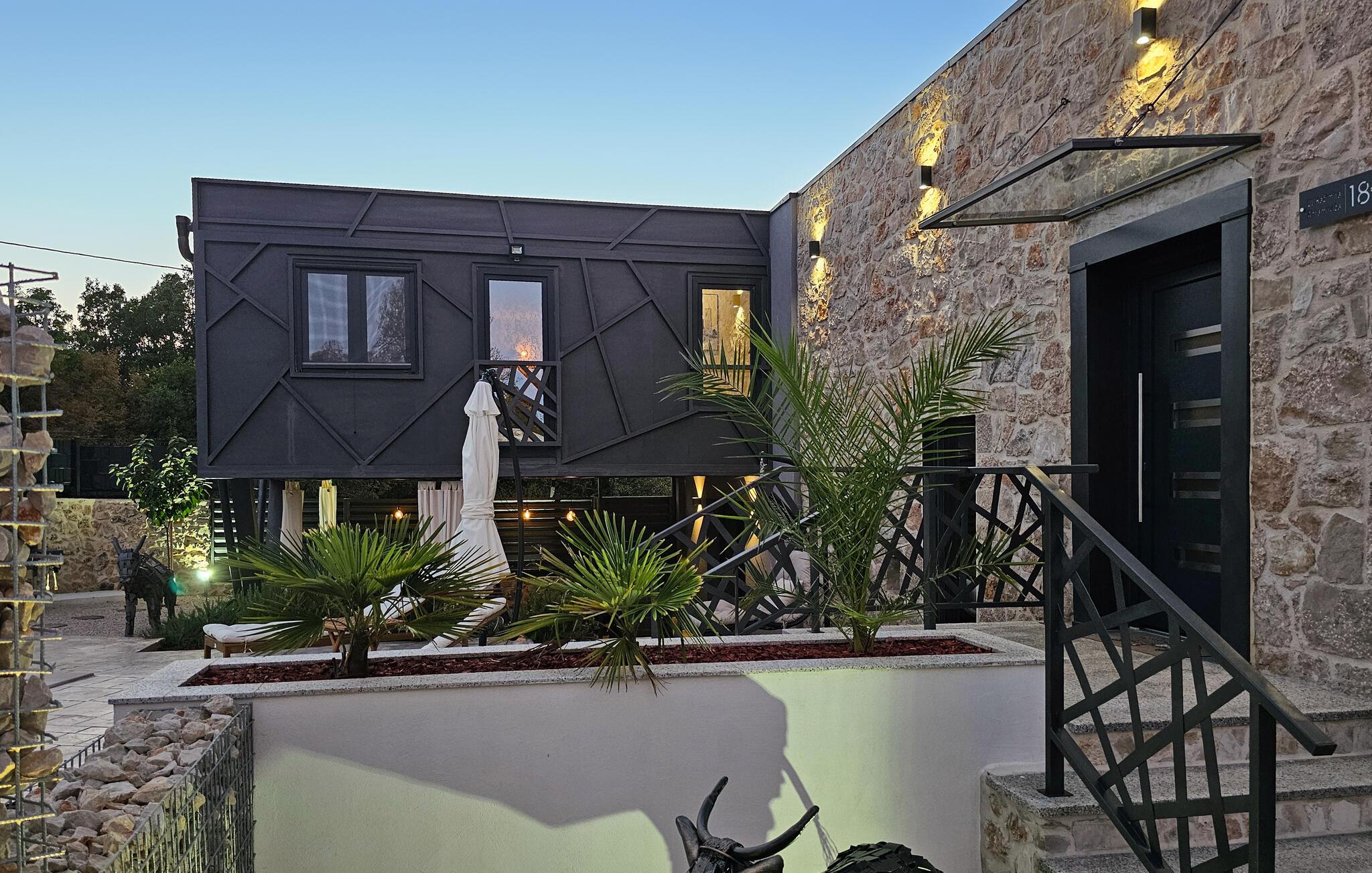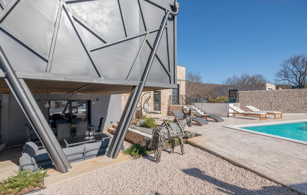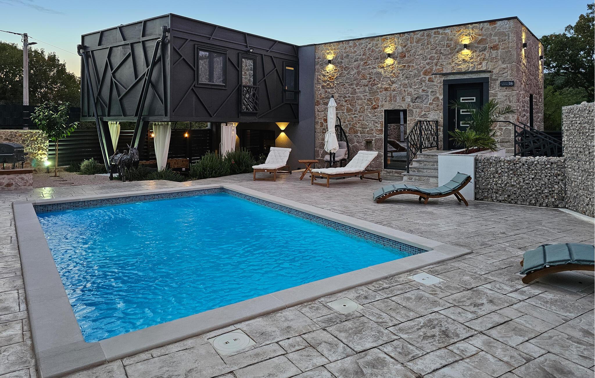 Denne lækre luksusvilla ligger i det indre Dalmatiens smukke grønne landskab, og her mødes det rustikke med det moderne på en utrolig vellykket facon. Indretningen prydes af fritlagte murværk og højt til loftet, der sammen med de moderne faciliteter og behagelige farveskalaer gør det nemt at slappe af her.