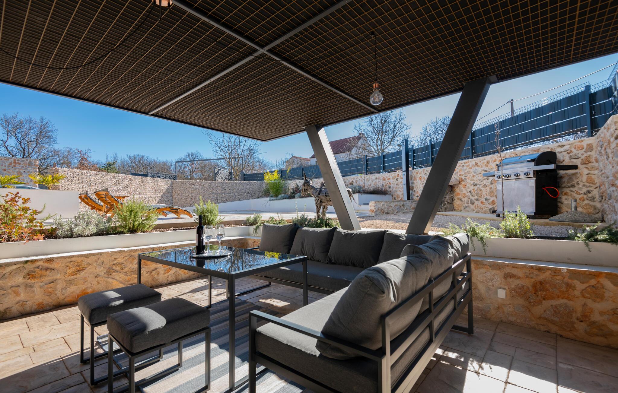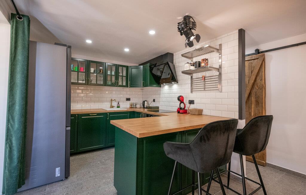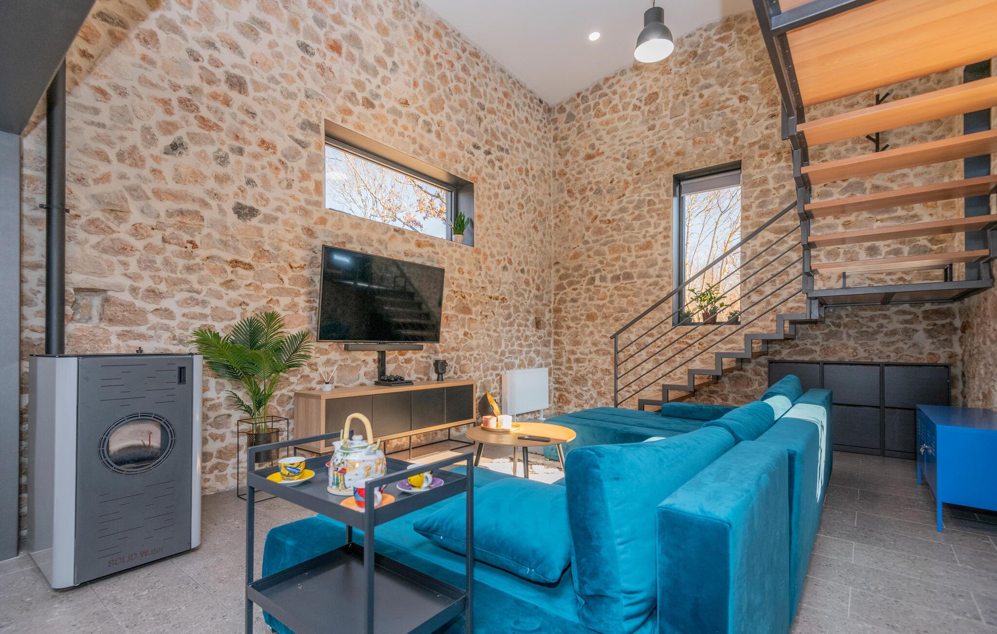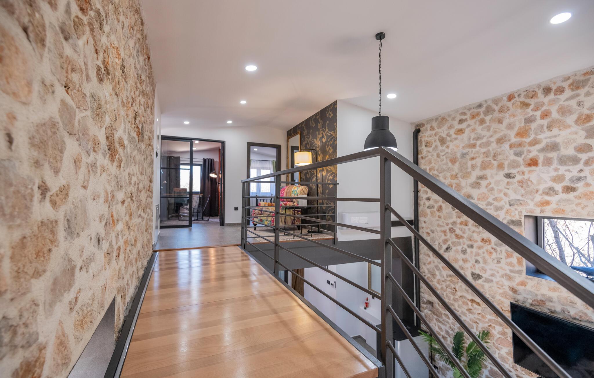 Denne lækre luksusvilla ligger i det indre Dalmatiens smukke grønne landskab, og her mødes det rustikke med det moderne på en utrolig vellykket facon. Indretningen prydes af fritlagte murværk og højt til loftet, der sammen med de moderne faciliteter og behagelige farveskalaer gør det nemt at slappe af her.