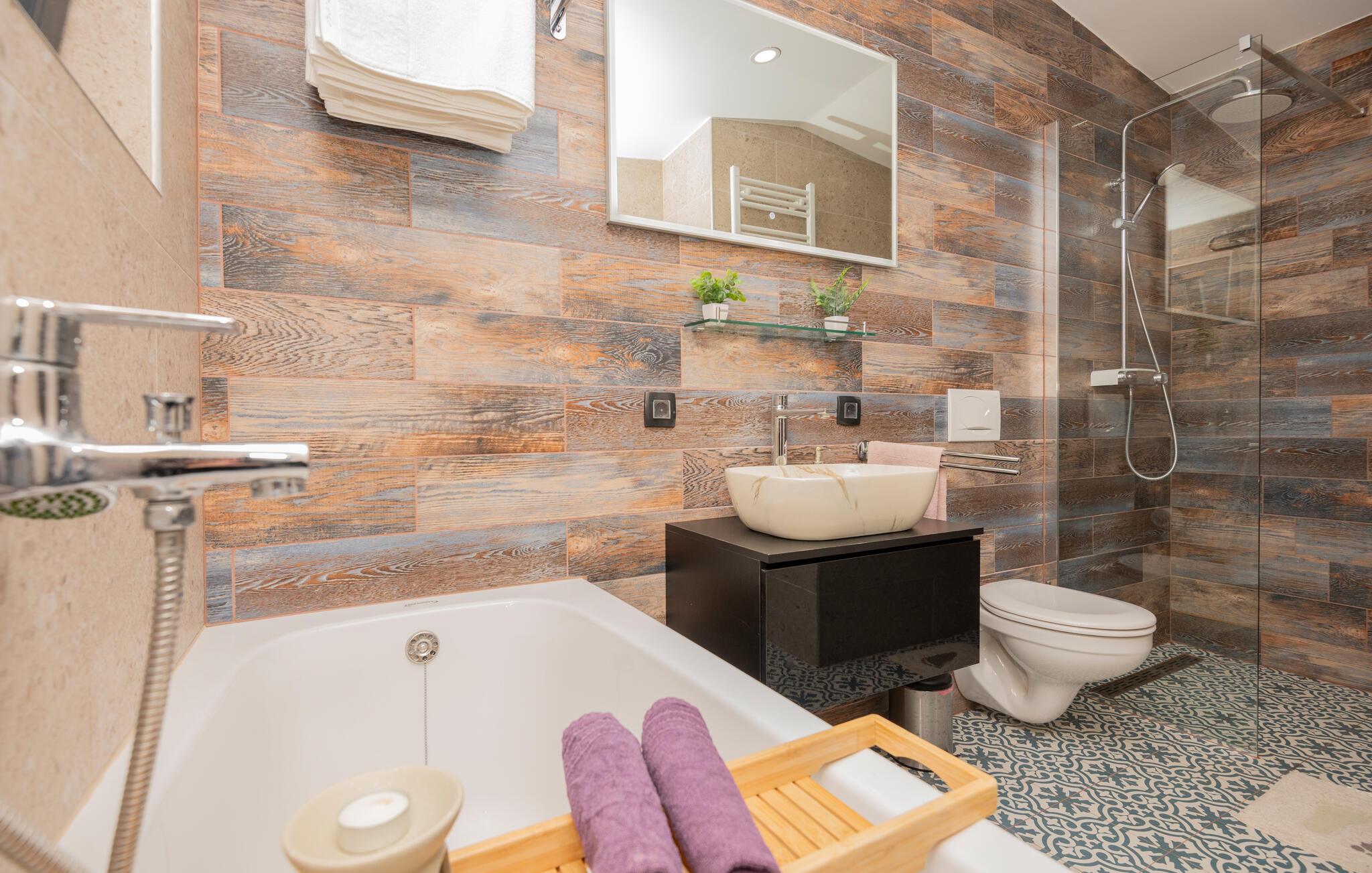 I bor tæt på havnebyen Makarska, hvor I finder flere gode strande, så tag flere afstikkere for et friskt dyp og dejlige gåture langs den smukke promenade, hvor I kan gøre holdt i varmen og købe en is eller lækker drink og bare nyde at være på ferie.
