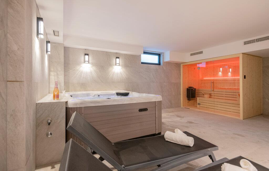 Velkommen til denne vidunderlige villa, der ligger i fantastiske omgivelser på Brelas bakke. Her får I masser af plads over flere etager med mange komfortable soveværelser med eget private badeværelse og egen altan, så I kan nyde det helt rette mix af privatliv og sociale stunder med dem, I holder af. Indretningen emmer af kvalitet og komfort over hele linjen med materialer af højeste kvalitet og moderne faciliteter, der gør jeres ferie helt og aldeles ubekymret fra det øjeblik, I stiller kufferterne. Efter en herlig feriedag kan I forkæle jer selv med lidt ekstra wellness i spabadet og saunaen i kælderen, mens I lægger planer for de kommende dage.