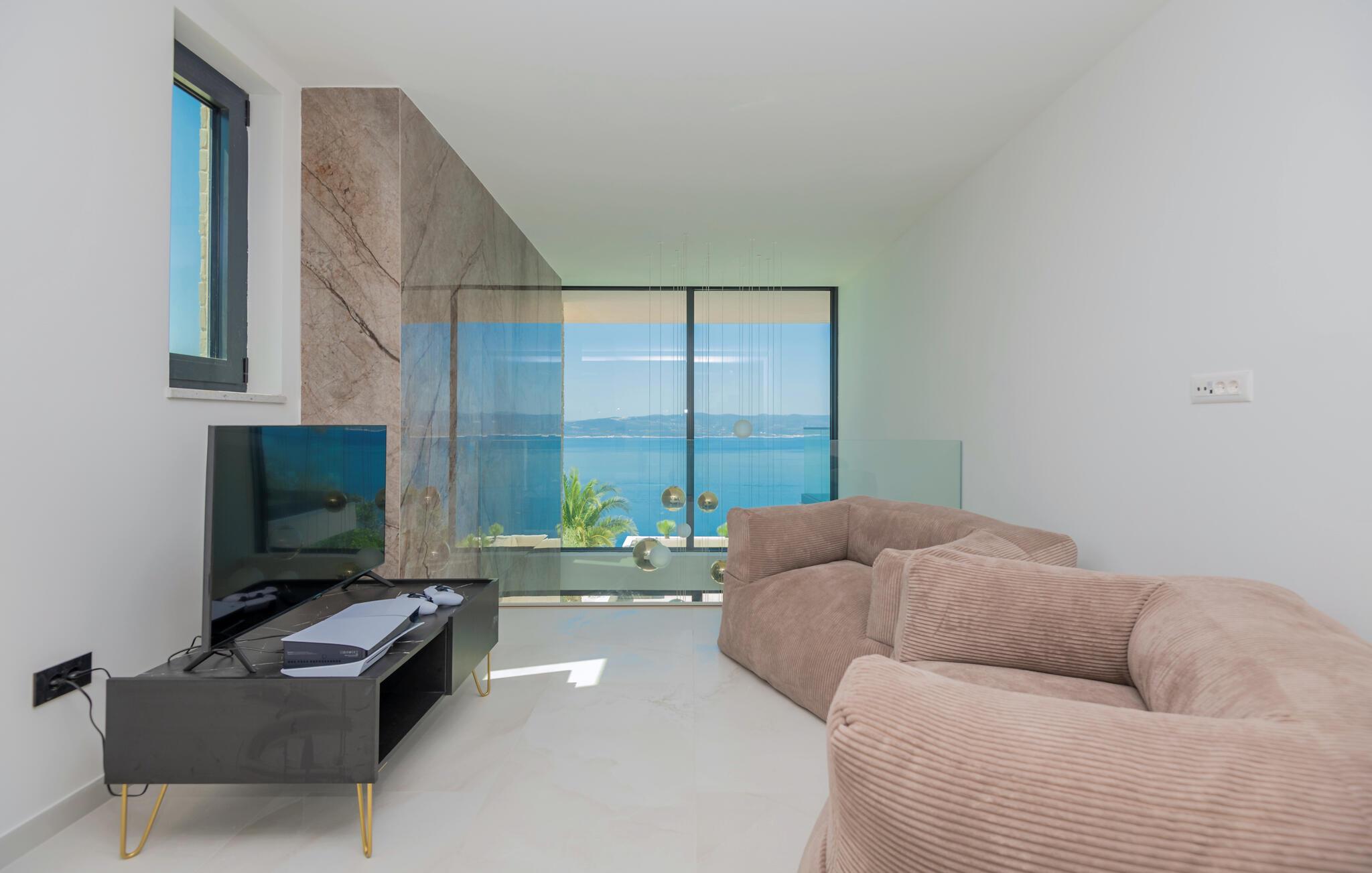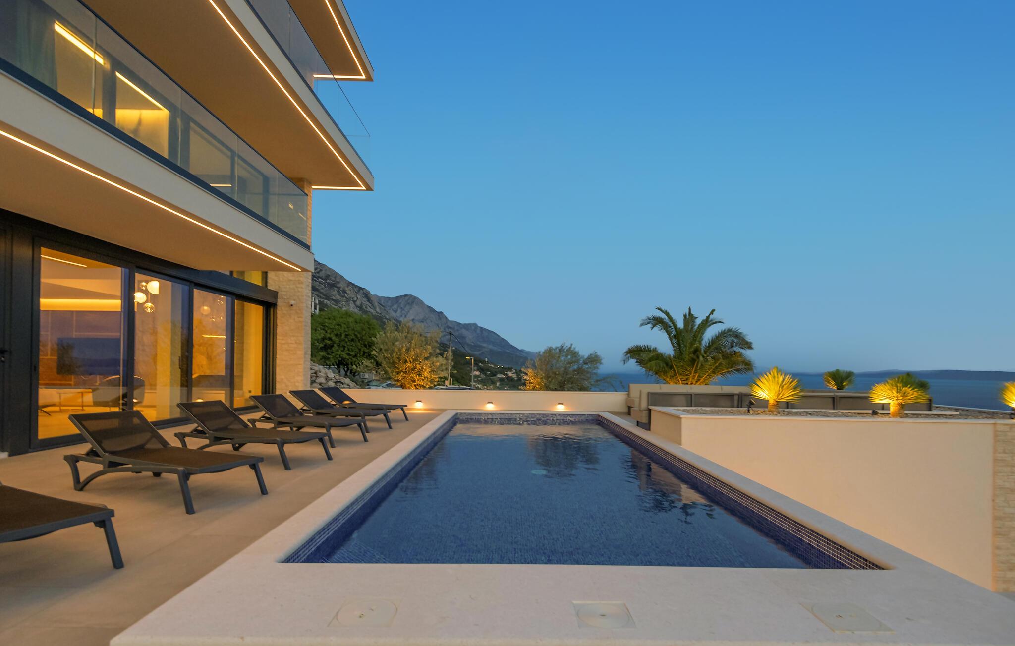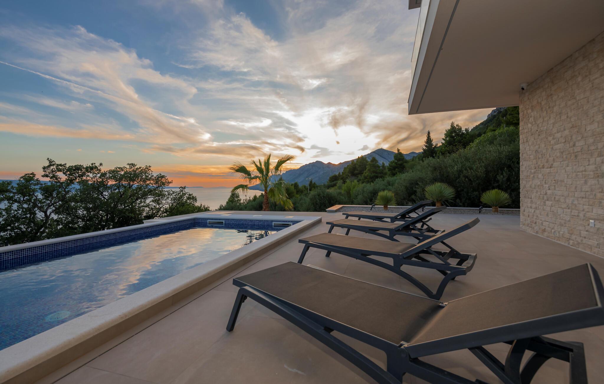 Se frem til en ferie med masser af luksus i denne drømmevilla med panoramaudsigt over havet og bjergene.
