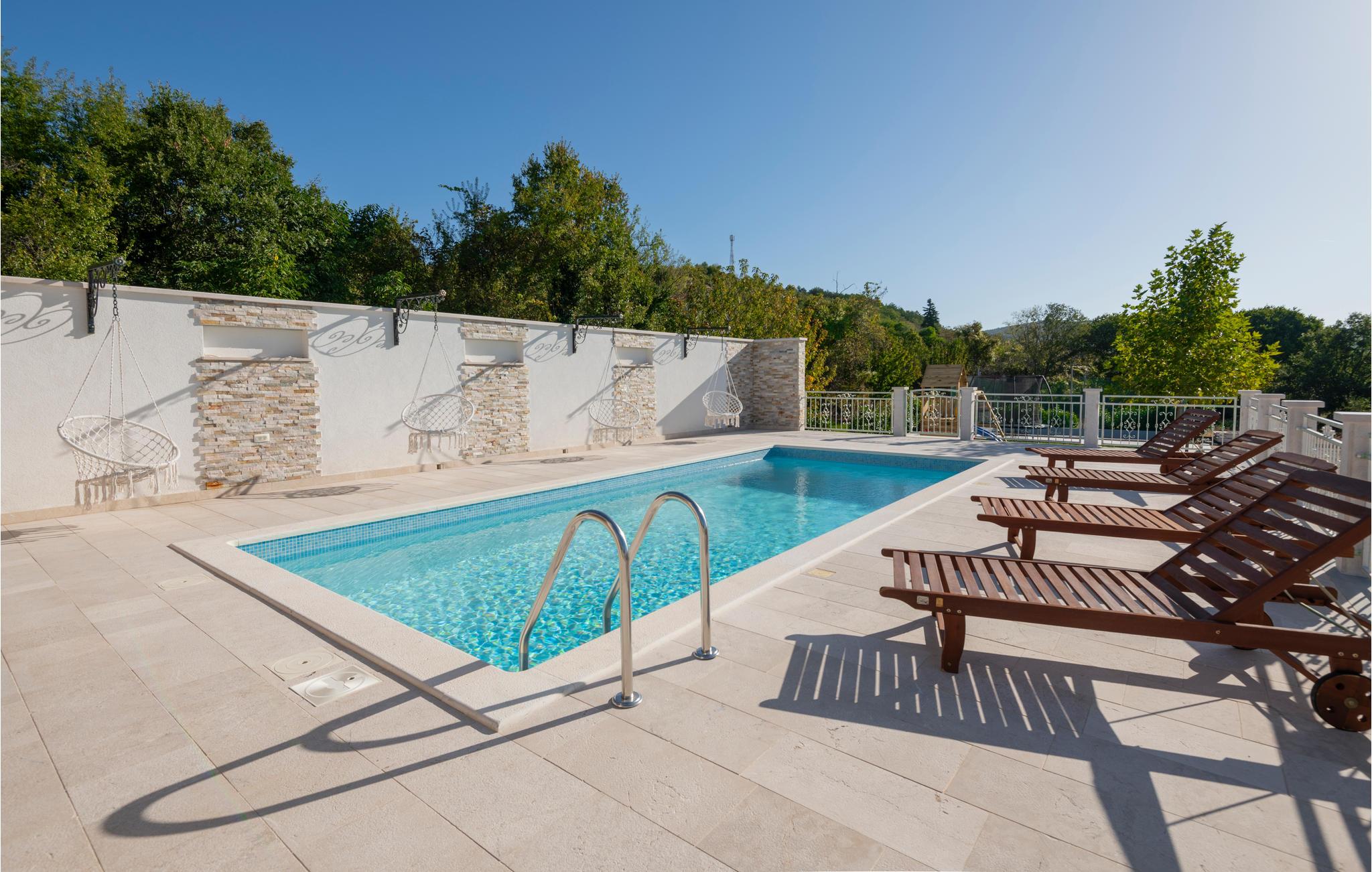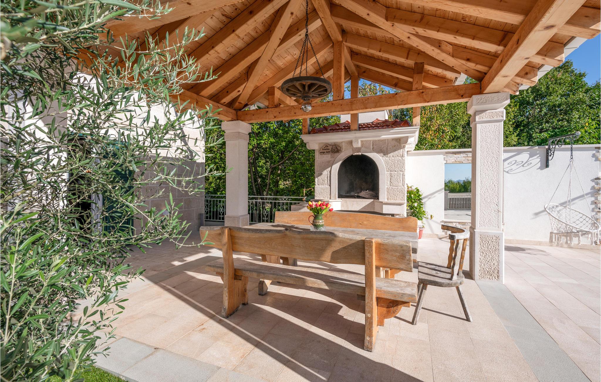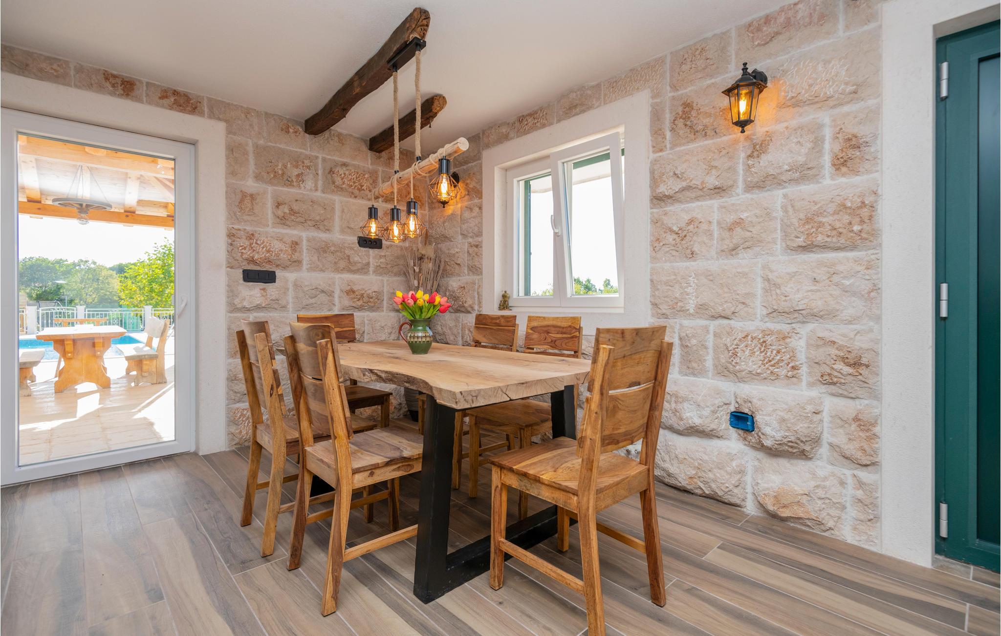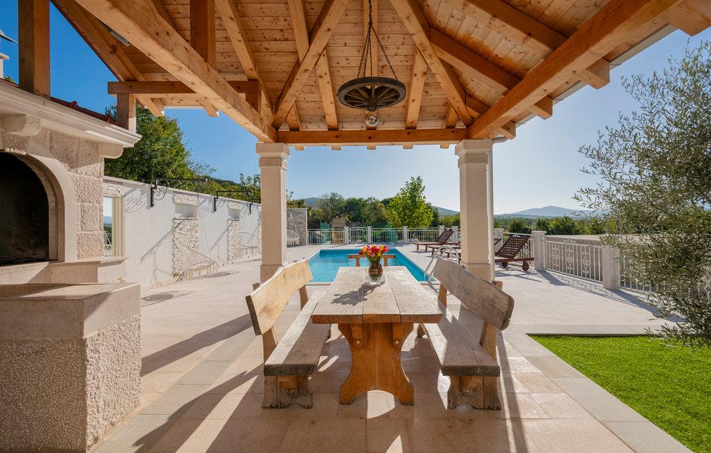 Tilbring en vidunderlig ferie i denne oase af fred. Synlige stenvægge og træbjælker med de stilfulde møbler udstråler en atmosfære, der er uden sidestykke. Nyd de smukke værelser og deres komfort og tilbring mange timer udendørs. Unge og gamle vil have det sjovt her og kan bade sammen i poolen eller løbe rundt på den private legeplads. Om aftenen kan I mødes på den overdækkede terrasse til en grill og lade de varme sommeraftener forsvinde.